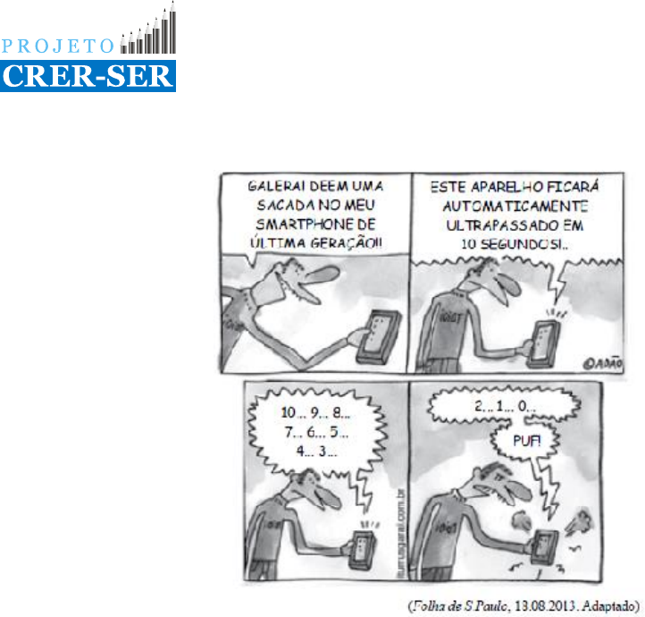Resolução - Prova Colégio Juarez Wanderley- 2013 1 01. Leia os quadrinhos. Os quadrinhos mostram que (A) os novos aparelhos pouco agradam os consumidores. (B) a tecnologia tem sido deixada de lado pelos jovens. (C) os recursos tecnológicos estão em constante evolução. (D) as mudanças tecnológicas são pouco evidentes. Alternativa C Os quadrinhos mostram de uma forma humorística a rápida obsolescência dos produtos, em especial eletrônicos, promovida pela indústria, o que pode ser entendido também como uma "evolução tecnológica". 02. São Paulo tem mais de 7 milhões de automóveis. Quem mora nas zonas leste e sul da cidade perde, em média, três horas por dia no trânsito. _________ outro lado, a cidade tem uma vasta rede de rios e represas, boa parte _________ o asfalto. Com o objetivo de aproveitar essa malha hidroviária para o transporte de mercadorias e pessoas foi que o arquiteto e urbanista Alexandre Delijaicov, que leciona na USP e é funcionário da prefeitura paulistana, defendeu em seu doutorado, em 2005, um projeto para criar 170 quilômetros de hidrovias urbanas. (Galileu, julho de 2013. Adaptado) As lacunas do texto devem ser preenchidas, correta e respectivamente, com as seguintes preposições: (A) A ... perante (B) De ... ante (C) Em ... sobre (D) Por ... sob Alternativa D Resolução - Prova Colégio Juarez Wanderley- 2013 2 Para que haja sentido a primeira lacuna deve preenchida com a locução conjuntiva por outro lado. Na segunda lacuna é claro que os rios ficam embaixo do asfalto, portanto deve usar a preposição sob. Leia o texto para responder às questões de números 03 a 05. Aníbal, o terror às portas de Roma Ser transformado numa espécie de bicho-papão depois da morte é, curiosamente, uma das marcas registradas dos grandes guerreiros ao longo da história. Aconteceu com Aníbal Barca (247 a.C. – 182 a.C.), o general cartaginês* que desafiou Roma, e chegou muito perto de esmagá-la, durante a Segunda Guerra Púnica**. Séculos depois, quando crianças romanas andavam especialmente birrentas, seus pais tentavam fazê-las fechar o bico berrando Hannibal ad portas, algo como “o Aníbal está te esperando aqui no portão de casa”. Na vida real, o filho do general Hamílcar Barca de fato se comportou como o pior pesadelo dos romanos. Ousado, rápido e imaginativo, ele costumava dar um nó tático na maioria dos generais de Roma, na época adeptos de métodos um tanto toscos de estratégia militar. Acabou derrotado em seu próprio quintal, depois de virar a Itália do avesso, mas escapou dos romanos e morreu livre. (Superinteressante, junho de 2013) * cartaginês: nascido em Cartago, Tunísia, norte da África. ** Guerra Púnica: conflito entre Roma e Cartago. 03. De acordo com as informações do texto, Aníbal foi um (A) general cartaginês que acabou preso pelos generais romanos, os quais acabaram se tornando o seu pior pesadelo. (B) grande guerreiro que fez desordens na Itália, aproveitando-se do pouco domínio tático dos generais romanos. (C) general inimigo de Roma que, por não dominar estratégias militares, foi preso com o seu pai na Itália. (D) guerreiro cartaginês que, por ser filho do general Hamílcar, acabou sendo preso pelos generais romanos. Alternativa B A leitura do texto mostra que Anílbal Barca, principal protagonista da II Guerra Púnica, quase venceu Roma pela sua arrojada tática de batalha, em contrapartida aos métodos convencionais de guerra dos generais romanos. Até hoje, a célebre batalha de Canas, em que Aníbal mostrou toda sua competência militar é estudada em academias militares. 04. Quando os pais gritavam Hannibal ad portas, a intenção deles era que seus filhos se (A) intimidassem e silenciassem. (B) acalmassem e dormissem. (C) assustassem e brincassem. (D) retirassem e gritassem. Alternativa A Claramente a expressão latina: Hannibal ad portas visava despertar medo nas crianças romanas para que elas pudessem ficar quietas e passar a obedecer aos pais. Resolução - Prova Colégio Juarez Wanderley- 2013 3 05. Na oração – ... quando crianças romanas andavam especialmente birrentas... –, o predicado é (A) verbal, pois se prioriza a ideia de locomoção das crianças, equivalendo a: quando crianças romanas caminhavam especialmente birrentas.... (B) nominal, pois se prioriza a ideia do comportamento das crianças, equivalendo a: quando crianças romanas estavam especialmente birrentas. (C) verbal, pois se prioriza a ideia de mau comportamento das crianças, equivalendo a: quando crianças romanas gritavam especialmente birrentas. (D) nominal, pois se prioriza a ideia de movimentação das crianças, equivalendo a: quando crianças romanas pulavam especialmente birrentas. Alternativa B O verbo andar indica transitoriedade de estado e é, portanto, verbo de ligação, caracterizando o predicado como sendo nominal. Leia o poema do poeta português Guerra Junqueiro para responder às questões de números 06 a 09. O pobrezinho (chorando) Só tu, estrela, me conheces Em minha dor, minha aflição! Só tu, estrela, me conheces Só tu ouviste as minhas preces... Bendito, estrela, o teu clarão! 06. A leitura permite afirmar que, no poema, (A) o sofrimento do eu lírico é reforçado pelo clarão, quando se põe a fazer uma prece. (B) a estrela se dirige ao eu lírico para compartilhar uma prece e acabar com seu sofrimento. (C) o eu lírico se dirige a uma estrela, afirmando que ela compreende o seu sofrimento. (D) a aflição que a estrela reconhece no eu lírico aparece quando ela decide fazer uma prece. Alternativa C O poema mostra claramente que o eu lírico se dirige à estrela e afirma que apenas ela o entende. 07. No título do poema, o diminutivo tem sentido (A) pejorativo, zombando do sofrimento do eu lírico. (B) depreciativo, indicando que a criança não tem dinheiro. (C) afetivo, reforçando a ideia de tristeza. (D) irônico, sugerindo que a tristeza é uma mentira. Alternativa C 
