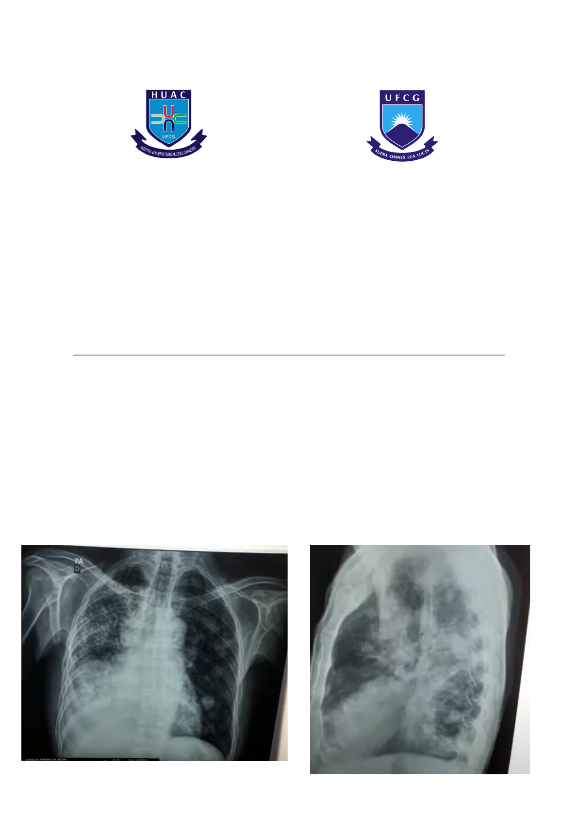 UNIVERSIDADE FEDERAL DE CAMPINA GRANDE UNIDADE ACADÊMICA DE CIÊNCIAS MÉDICAS HOSPITAL UNIVERSITÁRIO ALCIDES CARNEIRO PNEUMOLOGIA QUESTÕES PRIMEIRO ESTÁGIO (Doc atualizado) MONITORES: WILLGNEY PORTO. G., MARIA CLARA V. MORAIS Campina Grande, 2022 1) Paciente 50 anos, masculino, ex-tabagista, com relato de cirurgia para tratamento de um abcesso cerebral em 2015. Há 07 meses surgiu dispneia progressiva com piora havia 2 meses. Relato de febre esporádica e perda de 5kg no último mês. De acordo com a radiografia, assinale V ou F. Ampliação da imagem* ( ) Presença de padrão intersticial ( ) Nódulos pulmonares localizados nos lobos superiores ( ) Massas localizadas no pulmão esquerdo ( ) Presença de padrão alveolar com broncograma aéreo ( ) Alargamento do mediastino por provável adenomegalias ( ) Presença do sinal da silhueta 2) Qual o laudo radiográfico da imagem acima? 3) Cite 5 patologias que apresentam como mecanismo de insuficiência respiratória o distúrbio de baixa V/Q. 4) 24 de junho de 2022, noite de São João em Campina Grande. Janilson, 26 anos de idade, estava no bar do Nilson quando um cara pisou em seu pé sem pedir desculpas. Janilson relata que só se lembra de acordar no chão com falta de ar e observar mesas e garrafas de vidro quebradas em seu entorno. Foi informado que ocorreu uma briga generalizada no bar e ele foi nocauteado. Ao chegar no hospital, o plantonista da noite identificou um trauma pérfuro-contuso na região intercostal do lado esquerdo. Rapidamente solicitou uma radiografia de tórax em PA. Qual alteração presente na imagem? 5) Durante uma festa em família, Júnior, 16 anos, começa a tossir e ter falta de ar após sentir o cheiro forte do perfume de uma convidada. Havia um médico no local e, ao atendê-lo, notou que Júnior apresentava também o olho bem vermelho e uma queixa de prurido ocular (queixas essas já iniciadas há duas semanas, que apareciam sazonalmente). Ao realizar a ausculta, encontrou sibilos difusos. Apesar de consciente, Júnior pronunciava frases incompletas durante todo o exame, sem sinais de fadiga respiratória; RCR, bulhas normofonéticas, FC 130 bpm, FR 30, PA 110 x 70 mmHg. Com base no quadro, responda: A) Qual foi o provável diagnóstico aventado pelo médico? Cite a relação com o quadro oftalmológico prévio. B) Qual a classificação da crise apresentada por Júnior neste momento? Justifique. C) Quais devem ser as linhas gerais de tratamento para este quadro? D) Considerando que Júnior apresentava cerca de dois sintomas diurnos semanais, mas sem limitação de suas atividades, qual seria a classificação mais apropriada para ele? Em quanto tempo deverá ser o retorno para reavaliação do tratamento? E) Como deveria ser o tratamento de manutenção para este paciente? E o tratamento sintomático? 6) Admitido no HUAC com quadro de tosse, febre e dispnéia há 15 dias. Está em seu 7º dia de internação, em uso de Levofloxacina desde o 1º dia que deu entrada. Sem febre há 5 dias. Na noite anterior surgiu dor torácica ventilatório-dependente no HTE. Relato de perda ponderal e astenia há 03 meses. Ex-tabagista (30 maços/ano). De acordo com a história clínica, qual a sua principal conduta? Justifique. 7) O plantão na enfermaria de pneumologia no HUAC estava bem mais tranquilo que o normal, permitindo que você estudasse e descansasse das provas da semana anterior. Porém, como todos nós sabemos, "o plantão só acaba quando termina", e é neste contexto, meia hora antes de terminar seu horário, que Dona Clotilde, asmática de 60 anos, funcionária do HUAC, pede sua ajuda pois faz uso do Alenia (inalador de pó seco) mas sem respostas de melhora. Sabiamente você pede para que ela repita a técnica inalatória em sua frente, e percebe que a senhora não faz a pausa de 10s após inalação. O interno que o acompanhava pergunta se não deveria trocar o dispositivo inalatório. Você concorda? Justifique. 8) Você acaba de pegar o plantão de 24h na enfermaria do HUAC, e o plantonista anterior vai embora antes de passar o caso de João Luiz, paciente que, enquanto descansa no leito, apresenta tosse ineficaz, dor torácica e percebe redução da capacidade de realizar inspirações profundas. Sendo assim, você rapidamente solicita o raio-x. Qual alteração observada? 9) Relacione o exame com sua respectiva finalidade: A) Fundamental para excluir doenças parenquimatosas. B) Útil para identificar doenças obstrutivas ou restritivas. C) Útil para diferenciar causas pulmonares de cardíacas. D) Indicado quando as causas mais comuns de tosse crônica foram excluídas e aspiração de corpo estranho. E) Reflete o estado fisiológico do paciente, avaliando trocas gasosas. ( ) Raio X de Tórax ( ) Broncoscopia ( ) Gasometria ( ) BNP ( ) Espirometria 10) Seu José, 71 anos, está internado na sala de emergência no HUAC. Foi admitido apresentando dispneia (Mmrc 4), bastante ansioso, sudoreico e com as extremidades frias e cianóticas. Ao exame físico foi verificado estertores crepitantes difusos ao longo do terço médio até as bases em ambos os hemitórax. Logo em seguida foi solicitado a radiografia de tórax. Qual padrão radiológico encontrado e qual seria a hipótese diagnóstica? 11) Paciente do sexo masculino, 48 anos, relata dor torácica ventilatório-dependente à esquerda iniciada há 1 mês, sem relação com os esforços, e após alguns dias início de cansaço aos moderados esforços, sem outras queixas. Descreva o laudo radiográfico e possível diagnóstico sindrômico: 12) Paciente 59 anos, feminino, evoluiu com febre, dor torácica e hemograma infeccioso. Qual padrão radiológico e diagnóstico provável? 13) Paciente do sexo feminino, 49 anos, asma desde a infância. Qual o laudo da espirometria? Previsto L. inferior Pré-bd Pós-bd % variação CVF 2,98 2,43 2,72 (91%) 2,78 (93%) 2% VEF1 2,33 1,90 2,01 (86%) 2,27 (97%) 11% VEF1/CVF 79 71 73 81 FEF25-75/CVF 76 46 51 72 PFE 7
