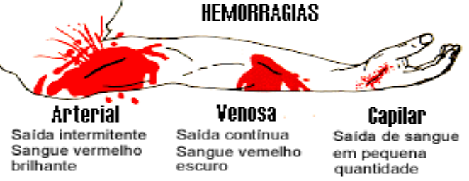 COMO PROCEDER EM CASO DE FRATURAS: As fraturas podem ser definidas como uma ruptura parcial ou total do osso e podem ser classificadas em abertas ou fechadas, de acordo com o lesionamento da pele ou não. Uma fratura fechada é quando não ocorre o rompimento da pele, já a exposta é quando a pele é rompida e o osso exposto: • acalmar a vítima; • não retirar a vítima do local ou realizar o seu transporte. • manter a estrutura afetada imóvel, evitando dessa forma piora da lesão e aumento da dor da vítima. • nunca oferecer líquidos ou alimentos para a vítima. • pedir a alguém que entre em contato com o SAMU (192). • aguardar a chegada do socorro. COMO PROCEDER EM CASO DE HEMORRAGIAS: Hemorragia é um sangramento de forma descontrolada, que pode levar a vítima à morte rapidamente. Sua gravidade depende de sua fonte. • ARTÉRIA: Sangue jorrando, fluxo pulsátil, cor vermelho- viva. • VEIA: Fluxo lento e estável, cor vermelho-escura. • CAPILAR: Fluxo lento e uniforme. •pedir a alguém que entre em contato com o SAMU 192 em caso de hemorragias extensas. • calce luvas ou envolva suas mãos em uma sacola plástica para evitar o contato direto com o sangue. • tentar estancar a hemorragia, utilizando um dos métodos abaixo: • Compressão direta: É feita uma pressão direta sobre a ferida, usando um pano limpo ou curativo. Mantenha até que ocorra a coagulação. A interrupção precoce dessa manobra pode remover o coágulo recém-formado, reiniciando o sangramento, portanto mantenha por no mínimo 10 minutos; • Elevação do membro: Consiste em elevar o membro afetado acima do nível do tórax, normalmente deve usado em combinação com a compressão direta para controlar a hemorragia de uma extremidade. • Compressão indireta (pontos de pressão): É feita usando uma pressão da mão do socorrista para comprimir uma artéria da vítima em um ponto distante do ferimento, lembrando que deve ser feito na artéria responsável por aquele sangramento. Este procedimento é executado frequentemente na artéria braquial e femoral. • Torniquete: Aplicar torniquete somente quando existir amputação traumática do braço ou da perna, ou em casos de sangramento abundante e que não tenha respondido às técnicas anteriores. • nunca oferecer líquidos ou alimentos para a vítima. Atenção: Não utilize quaisquer produtos sobre os ferimentos, tais como pó de café ou açúcar, pois podem ocasionar comprometimentos, provocando uma lesão secundária, além de trazerem micro-organismos, infectando o ferimento