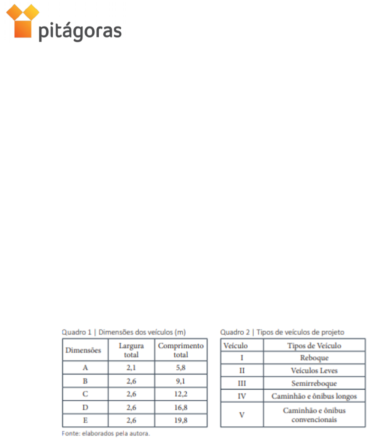 FACULDADE PITAGORAS PROFESSOR: DANIEL MAIA ALUNA: LYCIA FERNANDA MELO MARTINS ENGENHARIA CIVIL – 9º PERÍODO – MATUTINO DISCIPLINA: ESTRADAS Seção 1.3 1. Nosso Código de Trânsito Brasileiro (CTB) determina as dimensões autorizadas para veículos com ou sem carga circularem pelo sistema viário. O DNIT (2006), aplicando as regras do CTB, resumiu as principais dimensões básicas dos veículos de projeto utilizados para dimensionamento de rodovias. Analise os quadros a seguir para comparar os tipos de veículos com as dimensões básicas dos veículos de projetos. a) A – I; B – II; C – III, D– IV; E– V. b) A – II; B – V; C – IV, D– III; E– I. CORRETA c) A – III; B – II; C – I, D– IV; E– V. d) A – V; B – II; C – III, D– I; E– IV. e) A – I; B – II; C – V, D– IV; E– IV. 2. Em um projeto de dimensionamento de rodovias, é necessário analisar diversos parâmetros relacionados aos esforços de carregamento e descarregamento aos quais o pavimento será submetido, devido à circulação dos veículos. Neste contexto, analise se as frases a seguir são verdadeiras (V) ou falsas (F). ( ) O parâmetro de tráfego utilizado no dimensionamento das vias é o número de repetições de eixo padrão (N). ( ) O parâmetro (P) se refere ao período em que a via será solicitada por esforços cíclicos de carregamento e descarregamento em um determinado ponto da superfície de rolamento, provocados pelas rodas dos veículos. ( ) O eixo tomado como padrão rodoviário brasileiro é simples de rodas duplas e transmite um esforço de 18,2 toneladas para o pavimento. ( ) Para obter o parâmetro (N), é necessário estimar o volume total de tráfego, que multiplica o volume médio diário pelo período (P) e por 365 dias. ( ) O fator climático regional considera o regime de chuvas nacional, sendo igual a 0,7 para altura média de chuva até 800 mm, 1,4 para altura média de chuva de 800 a 1.500 mm e 1,8 para mais de 1.500 mm. Assinale a alternativa correta: a) V - V - F - V - F. CORRETA b) F - V - F - V - F. c) V - F - F - V - F. d) V - V - V - V - F. e) V - V - F - F - F. 3. Você está iniciando o projeto de uma estrada com um volume diário médio anual de 180 veículos, com uma taxa de crescimento anual em progressão exponencial de 1,3%, fator climático regional igual 1 e fator de veículo de 1,6. Calcule o N (número de repetições do eixo padrão) para o período de 10 anos. Assinale a alternativa correta, com o N calculado: a) 7,2 x b) 7,2 x c) 5,6 x CORRETA d) 3,3 x e) 3,3 x RESOLUÇÃO: VM= Valor médio VDMP= Volume diário médio para o período VDMA= Volume diário médio anual T= Taxa anual em progressão P= período VDMP= VDMA (1+ VDMP= 180(1+ VDMP = 180 ( VDMP= 204,817 VDMP= 205 veículos VM= (VDMA+VDMP) /2 VM= (180+205) /2 VM= 192,50 VM= 193 veículos FR (Fator climático regional) = 1 FD (Fator direcional) devido a pista simples, uma faixa em cada sentido é = 50% FV (Fator de veículo) = 1,6 N= Número de repetições do eixo padrão N= 365 x P x FR x FD x FV x VM N= 365 x 10 x 1 x 0,5 x 1,6 x 193 N= 563,560 N= 5,6.