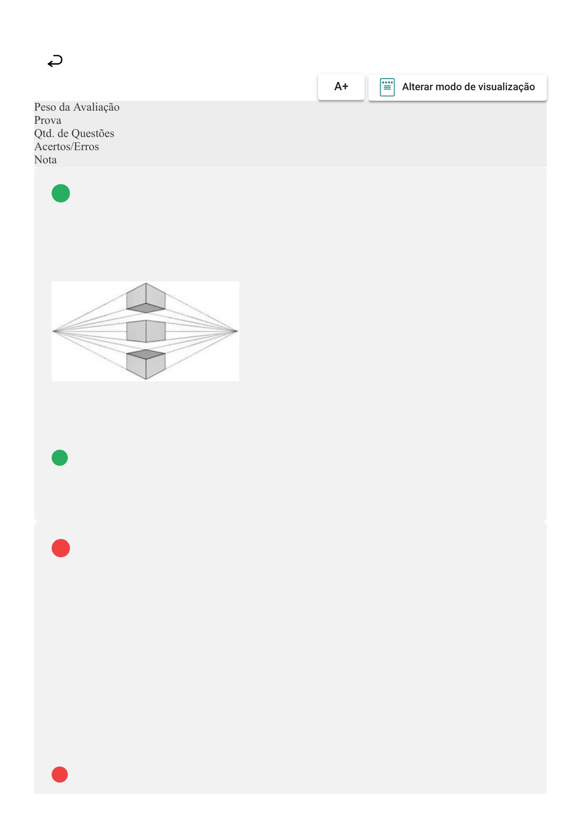 29/10/2022 13:02 Avaliação II - Individual 1/6 Prova Impressa GABARITO | Avaliação II - Individual (Cod.:767678) Peso da Avaliação 1,50 Prova 52094539 Qtd. de Questões 10 Acertos/Erros 5/5 Nota 5,00 Como ferramenta de projeto, a perspectiva é um importante instrumento de criação, já que facilita a visão espacial de determinado objeto como, por exemplo, uma edificação. Assim, é através da perspectiva que as três dimensões do objeto são representadas graficamente em um único plano, informando sua profundidade. Diante da importância da perspectiva para as engenharias, analise a imagem a seguir e assinale a alternativa CORRETA que nomeia este tipo de perspectiva: FONTE DA IMAGEM: Disponível em: . Acesso em: 9 abr. 2018. A Com um ponto de fuga. B Com três pontos de fuga. C Com dois pontos de fuga. D Isométrica. Para o entendimento espacial de objetos mais complexos geralmente se faz necessária uma ferramenta de projeto que facilite a sua leitura. Deste modo, é com a perspectiva que as três dimensões do objeto são representadas graficamente em um único plano, evidenciando particularidades construtivas que os planos de projeção por si só não as fazem. Sobre a importância da perspectiva para a engenharia e áreas afins, classifique V para as sentenças verdadeiras e F para as falsas: ( ) Na perspectiva cavaleira não existe ponto de fuga. ( ) Na perspectiva cavaleira o objeto é representado com uma face frontal paralela à linha de visão do observador, conservando sua forma e medidas (largura e altura). ( ) A partir da face frontal do objeto, na perspectiva cavaleira, são traçados eixos em apenas uma direção, em ângulos de 30º, 45º ou 60º, a critério do projetista. Assinale a alternativa que apresenta a sequência CORRETA: A F - V - F. B F - F - V. VOLTAR A+ Alterar modo de visualização 1 2 29/10/2022 13:02 Avaliação II - Individual 2/6 C V - V - V. D V - F - F. O planejamento de um objeto, como uma peça industrial, é iniciado com a concepção de um desenho à mão livre, sem maiores preocupações formais. Além disso, o projetista mais experiente utiliza o traçado de projeções ortográficas, à mão livre, para o amadurecimento de ideias, buscando interagir com outros profissionais para o aperfeiçoamento do objeto. No que se refere ao desenho à mão livre, analise as sentenças a seguir: I- O projetista deve desenvolver as projeções ortográficas simultaneamente, trabalhando em suas três vistas. II- O projetista deve reforçar com traço definitivo, contínuo e forte, as linhas de contorno de cada vista. III- Com esse mesmo tipo de traço, contínuo e forte, o projetista deve destacar os detalhes ocultos (arestas ou contornos invisíveis) em cada vista. Assinale a alternativa CORRETA: A As sentenças I e II estão corretas. B Somente a sentença III está correta. C As sentenças II e III estão corretas. D As sentenças I e III estão corretas. Os elementos básicos do desenho são imprescindíveis para a formação de um projetista. A compreensão de cada um destes elementos, por mais simples que possam parecer, contribui decisivamente para a formação do profissional da área técnica, principalmente no que se refere ao desenho baseado em projeções ortográficas (planos de projeção) e desenho de perspectivas (visão espacial). Sobre os elementos básicos de desenho, classifique V para as sentenças verdadeiras e F para as falsas: ( ) O ponto evidencia uma posição no espaço e não possui dimensão, ou seja, não possui comprimento, largura e altura. ( ) Um ponto que se desloca no espaço gera uma reta, que possui comprimento mas não possui largura e altura. ( ) Uma reta que se desloca no espaço gera um plano, que possui comprimento e largura mas não possui altura. ( ) A união de planos gera um sólido geométrico, que possui comprimento, largura e altura. Assinale a alternativa que apresenta a sequência CORRETA: A F - V - V - F B F - F - F - F. C V - V - V - V. D V - F - F - V 3 4 29/10/2022 13:02 Avaliação II - Individual 3/6 D V F F V. A perspectiva é um importante instrumento de projeto. É através da perspectiva que suas três dimensões são representadas graficamente em um único plano, evidenciando sua profundidade e facilitando a leitura espacial de determinado objeto. Diante da importância da perspectiva para as engenharias, analise a imagem a seguir e assinale a alternativa CORRETA que nomeia este tipo de perspectiva: FONTE DA IMAGEM: Disponível em: . Acesso em: 28 mar. 2017. A Isométrica. B Com três pontos de fuga. C Cavaleira. D Com dois pontos de fuga. É sabido, desde a ascensão dos valores da Revolução Industrial, que a perspectiva é uma importante ferramenta projetual, facilitando a leitura espacial por parte do projetista. É através da perspectiva que suas três dimensões são representadas graficamente em um único plano, transmitindo a sensação de relevo e profundidade. Devido à facilidade e agilidade de elaboração, as perspectivas cavaleiras são bastante utilizadas nas engenharias, possibilitando a troca de informações entre técnicos e a incorporação de melhorias ao projeto em desenvolvimento. Diante da importância deste tipo de perspectiva para a área vinculada à engenharia, analise as sentenças a seguir: I- Nas perspectivas cavaleiras existe ponto de fuga, já que a noção de profundidade é evidenciada por projeções conhecidas como cônicas. II- A perspectiva cavaleira é similar à isométrica, porém, com as medidas sendo evidenciadas a partir de um único eixo fugitivo. III- A partir da face frontal do objeto representado são traçadas linhas em uma única direção, com ângulos de 30º, 45º ou 60º. IV- Com a definição do ângulo, é comum que se utilize fatores de correção para diminuir o efeito de profundidade do objeto. Assinale a alternativa CORRETA: A As sentenças II, III e IV estão corretas. B Somente a sentença II está correta. C As sentença