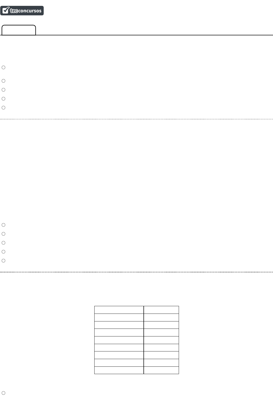 Probabilidade ( https://www.tecconcursos.com.br/s/Q25GnB ) Ordenação: Por Relevância Estatística Questão 1: IAUPE - Fisc Obr (Petrolina)/Pref Petrolina/2019 Assunto: Problemas introdutórios de probabilidade: eventos equiprováveis e abordagem frequentista Com relação à probabilidade de descobrir aleatoriamente uma senha de caixa eletrônico composta de 6 dígitos (cada digito de 0 a 9), é CORRETO afirmar que a) saber apenas quais os dois primeiros dígitos da senha aumenta mais a probabilidade de acertar aleatoriamente todos os demais dígitos do que saber apenas quais são os dois últimos dígitos. b) ao conhecer apenas qual o primeiro dígito, há um aumento na chance de obter aleatoriamente o dígito distinto. c) a chance de acertar aleatoriamente toda a senha é menor que 0,1%. d) a chance de acertar aleatoriamente toda a senha é maior que 0,1%. e) é impossível adivinhar aleatoriamente toda a senha. Esta questão possui comentário do professor no site. www.tecconcursos.com.br/questoes/838827 Questão 2: IAUPE - Fisc Obr (Petrolina)/Pref Petrolina/2019 Assunto: Problemas introdutórios de probabilidade: eventos equiprováveis e abordagem frequentista Assumindo que a probabilidade de uma pessoa ter peso corporal igual ou superior a 50kg é de exatamente 75%, considere as seguintes afirmações: I. Em uma sala com 120 pessoas, 30 ou mais pessoas terão certamente um peso igual ou maior que 50 Kg. II. Se em uma sala com 100 pessoas, nenhuma delas tiver peso igual ou superior a 50kg, então a hipótese inicial de atribuir uma probabilidade de 75% a esse evento mostra-se FALSA. III. Se em uma sala com 100 pessoas, exatamente 75 delas possuem peso igual ou superior a 50Kg, tal fato não implica que a hipótese inicial de atribuir uma probabilidade de 75% a esse evento é verdadeira ou falsa. Está CORRETO o que se afirma, apenas, em a) I. b) II. c) III. d) I e II. e) I e III. Esta questão possui comentário do professor no site. www.tecconcursos.com.br/questoes/838834 Questão 3: IAUPE - Ag (Paulista PE)/Pref Paulista PE/Combate às Endemias/2018 Assunto: Problemas introdutórios de probabilidade: eventos equiprováveis e abordagem frequentista Em uma olimpíada escolar, os atletas de uma determinada escola receberam medalhas de ouro, prata e bronze, de acordo com a seguinte forma: Tipos de medalhas ganhas Número de atletas Ouro 65 Prata 50 Bronze 66 Ouro e Prata 12 Ouro e Bronze 10 Prata e Bronze 14 Ouro, Prata e Bronze 05 Nenhuma medalha 50 Escolhendo-se um atleta ao acaso, qual a probabilidade de ele não ter ganho nenhuma medalha? a) 1/2 b) 1/3 c) 1/4 d) 1/5 e) 1/6 Esta questão possui comentário do professor no site. www.tecconcursos.com.br/questoes/678928 Questão 4: IAUPE - Prof (Pref Pombos)/Pref Pombos/Matemática/2017 Assunto: Problemas introdutórios de probabilidade: eventos equiprováveis e abordagem frequentista Numa pesquisa no município de Pombos-PE, fez-se um levantamento do nível de obesidade de seus habitantes. Constatou-se que 40% dos adultos são obesos, 45% dos adultos obesos são mulheres e 50% dos adultos não obesos são mulheres. Indique qual a probabilidade de uma pessoa adulta da cidade escolhida ao acaso ser um homem. a) 0,48 b) 0,49 c) 0,52 d) 0,53 e) 0,55 Esta questão possui comentário do professor no site. www.tecconcursos.com.br/questoes/679932 Questão 5: IAUPE - Of (PM PE)/PM PE/Cadete (CFO)/2014 Assunto: Problemas introdutórios de probabilidade: eventos equiprováveis e abordagem frequentista Em um treinamento com 80 alunos, 45 são destros, 27 são canhotos, e 8 são ambidestros. A probabilidade de um desses alunos, escolhido ao acaso, ser apenas destro é de a) 66,25% b) 56,25% c) 22,50% d) 33,75% e) 46,25% Esta questão possui comentário do professor no site. www.tecconcursos.com.br/questoes/643765 Questão 6: IAUPE - Soc Ext (CEP OS)/CEP/OS/Nível Médio/2010 Assunto: Problemas introdutórios de probabilidade: eventos equiprováveis e abordagem frequentista Três carros A, B e C de fórmula I são tais que a probabilidade de A vencer é 2 vezes mais provável que B e de B vencer é 3 vezes mais provável que C. Determine a probabilidade de A vencer a corrida. a) 1/7 b) 2/3 c) 3/5 d) 1/5 e) 1/10 Esta questão possui comentário do professor no site. www.tecconcursos.com.br/questoes/648310 Questão 7: IAUPE - ASG (CRBio 05)/CRBio 05/2007 Assunto: Problemas introdutórios de probabilidade: eventos equiprováveis e abordagem frequentista Das 180 pessoas que trabalham em uma empresa, sabe-se que 40% têm nível universitário e 60% são do sexo masculino. Se 25% do número de mulheres têm nível universitário, a probabilidade de selecionar-se um funcionário dessa empresa que seja do sexo masculino e tenha nível universitário é a) 5/12 b) 2/9 c) 3/10 d) 1/5 e) 5/36 Esta questão possui comentário do professor no site. www.tecconcursos.com.br/questoes/855290 Questão 8: IAUPE - Sold (PM PE)/PM PE/2018 Assunto: Probabilidade da intersecção Um dado não viciado de 6 faces regulares, cada qual com um número (1, 2, 3, 4, 5, 6), foi lançado aleatoriamente por 4 vezes, e a cada lançamento teve seu resultado anotado. A probabilidade de que, em todos os lançamentos, o número anotado seja menor que 3 é de a) 2/9 b) 2/27 c) 1/87 d) 1/81 e) 1/131 Esta questão possui comentário do professor no site. www.tecconcursos.com.br/questoes/697602 Questão 9: IAUPE - Of (PM PE)/PM PE/Segundo-Tenente/Administração (CFOA)/2017 Assunto: Probabilidade da intersecção Em uma Unidade, 60% dos oficiais superiores são do sexo masculino, e 40% do feminino. Entre os homens, 25% têm a patente de coronel, 30%, tenente coronel, e 45% são majores. Em relação às oficiais femininas, 18% são coronéis, 45% têm a patente de tenente coronel, e 37%, de major. Sorteado um oficial ao acaso, a probabilidade de que seja um coronel é a) 43,5%. b) 86,0%. c) 8,6%. d) 4,35%. e) 22,2%. Esta questão possui comentário do professor no site. www.tecconcurso