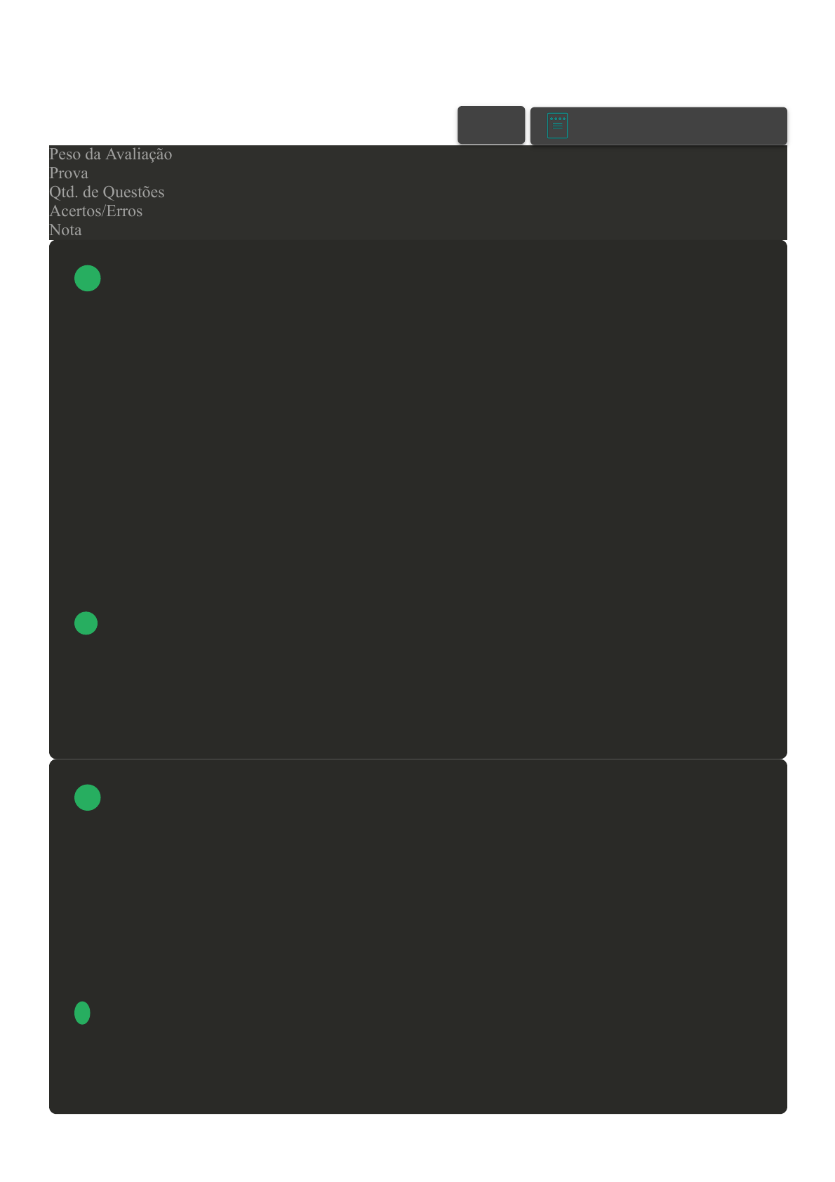 30/10/2022 14:35 Avaliação I - Individual about:blank 1/5 Prova Impressa GABARITO | Avaliação I - Individual (Cod.:767445) Peso da Avaliação 1,50 Prova 53183315 Qtd. de Questões 10 Acertos/Erros 10/0 Nota 10,00 Uma expressão lógica pode ser descrita como uma função matemática, cujos valores a serem processados são 0 e 1, assim como seu resultado. Em uma expressão binária, assim como em expressões matemáticas, os resultados dependem das entradas, isto é, dependendo dos valores utilizados para o cálculo, resultará um valor correspondente. Com relação a expressões matemáticas e binárias, classifique V para as sentenças verdadeiras e F para as falsas: ( ) Qualquer resultado retornado por uma expressão binária será verdadeiro (oriundo do valor 0) ou falso (oriundo do valor 1). ( ) As expressões binárias podem ter alguns operadores, como os operadores OU, E e NOT. ( ) Para representar todas as combinações binárias possíveis das entradas, são utilizadas as tabelas verdade. ( ) Para determinar a quantidade de combinações possíveis das entradas, numa tabela verdade, utiliza-se a potência da base 2 pelo número de entradas. Assinale a alternativa que apresenta a sequência CORRETA: A V - F - V - F. B F - V - V - V. C V - V - F - V. D F - V - F - V. A ferramenta de trabalho essencial para a maioria das pessoas, atualmente, é o computador. Indústrias e comércios, em sua maioria, utilizam-se do computador para manter seus negócios em funcionamento. O processador é um dos principais componentes do computador, efetuando cálculos e tomadas de decisões, através da execução das instruções passadas para ele por meio de softwares. Sobre esse processador, assinale a alternativa CORRETA: A Internamente, o processador se divide nas seguintes unidades: unidade de controle, memória cache e unidade aritmética e lógica. B Internamente, o processador se divide nas seguintes unidades: unidade de controle e memória cache. C Internamente, o processador se divide nas seguintes unidades: unidade de controle, memória cache, registradores e unidade aritmética e lógica. D Internamente, o processador se divide nas seguintes unidades: unidade de controle e unidade aritmética e lógica. VOLTAR A+ Alterar modo de visualização 1 2 30/10/2022 14:35 Avaliação I - Individual about:blank 2/5 Os circuitos integrados executam suas funções através de operações binárias, utilizando apenas os valores binários 0 (zero) e 1 (um). As operações desempenhadas por um computador são todas baseadas nas mais simples, como soma e multiplicação, por exemplo, e a partir dessas são desencadeadas operações mais complexas. Com relação à multiplicação binária, classifique V para as sentenças verdadeiras e F para as falsas: ( ) A multiplicação é a soma repetida do multiplicando, tantas vezes quantas definidas pela quantidade do multiplicador. ( ) O computador não realiza multiplicação com números binários. ( ) Se multiplicarmos o número 1234 por 102, temos que multiplicar o número 1234 por 2, depois multiplicar 1234 por 0 mas antes avançar uma casa à esquerda, depois multiplicar 1234 por 1 mas antes avançar duas casas à esquerda, e no final somar todos os três resultados. ( ) Se multiplicarmos o número 1234 por 102, temos que multiplicar o número 1234 por 2, depois multiplicar 1234 por 0 mas antes avançar uma casa à direita, depois multiplicar 1234 por 1 mas antes avançar duas casas à direita, e no final somar todos os três resultados. Assinale a alternativa que apresenta a sequência CORRETA: A V - F - F - V. B F - V - F - V. C F - V - V - F. D V - F - V - F. O processador realiza o principal trabalho do computador, que é o processamento dos dados. Para isso, é realizada a busca da instrução na memória, a qual é incluída na CPU. Então é executado o processamento das instruções e, por fim, enviado o resultado obtido para a memória principal. Sobre o funcionamento do processador, analise as afirmativas a seguir: I- A memória é um dos dispositivos que serve para armazenar os dados e os programas que são executados durante o processamento. II- A memória RAM é um tipo de memória principal, na qual o processador busca as instruções e os dados para processamento. III- O disco rígido é um tipo de memória principal, utilizada pelo processador para viabilizar o processamento. IV- A quantidade de bits que um processador pode gerenciar define a quantidade máxima de memória principal que poderá ser utilizada. Assinale a alternativa CORRETA: A As afirmativas I e III estão corretas. B As afirmativas III e IV estão corretas. C As afirmativas I, II e III estão corretas. D As afirmativas I, II e IV estão corretas. 3 4 30/10/2022 14:35 Avaliação I - Individual about:blank 3/5 A tabela verdade pode ser descrita como uma tabela na qual são apresentadas todas as combinações binárias possíveis para as variáveis de entrada de um determinado sistema. Neste sentido, se tivermos três variáveis de entrada, teremos oito combinações possíveis. Com relação às tabelas verdade, classifique V para as sentenças verdadeiras e F para as falsas: ( ) O operador binário OU retorna o valor 0 se pelo menos uma das variáveis possuir valor 1. ( ) O operador binário OU retorna o valor verdadeiro se pelo menos uma das variáveis tiver o valor 1. ( ) O operador binário E retorna o valor binário 1 somente se todos os valores forem 1. ( ) O operador binário NOT sempre inverte o valor da variável a qual ele está aplicado. Assinale a alternativa que apresenta a sequência CORRETA: A F - V - V - F. B V - V - F - V. C V - F - V - F. D F - V - V - V. O computador é uma das máquinas mais utilizadas no dia a dia da maioria das pessoas, tanto em países desenvolvidos como em subdesenvolvidos ou em desenvolvimento. Eles estão nas indústrias, comércios, instituições de ensino, residências, automóveis, enfim, controlam uma infinidade de aplic