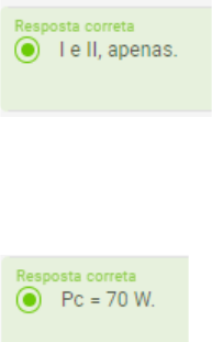 1-Leia o trecho a seguir. “O dimensionamento e a especificação corretos de materiais, equipamentos e dispositivos constituem fatores determinantes no desempenho de uma instalação elétrica. Materiais e equipamentos não especificados adequadamente podem acarretar sérios riscos à instalação, bem como comprometê-la sob o ponto de vista de confiabilidade, além, é claro, dos prejuízos de ordem financeira com a paralisação temporária de alguns setores de produção.” MAMEDE, F. J. Instalações elétricas industriais. Rio de Janeiro: LTC, 2002. p. 349. Considerando as informações do texto, bem como o que foi estudado, pode-se dizer que um bom projeto de instalações elétricas leva em consideração os dados elétricos de cada ponto da instalação. Avalie as afirmações a seguir. I. O projeto deve levar em consideração a tensão nominal de cada equipamento. II. O projeto deve levar em consideração a potência nominal de cada equipamento. III. O projeto deve levar em consideração a cor da carcaça de cada equipamento. IV. O projeto deve levar em consideração o peso de cada equipamento. É correto o que se afirma em: 2-Utilizando o conceito de eficiência luminosa e a equação, determine o valor da potência consumida Pc por uma fonte de luz com fluxo luminoso emitido de ψ = 56 lúmens, sabendo que a eficiência dessa fonte é de η = 0,8 lúmens/W. Considerando as informações acima, assinale a alternativa que apresenta o resultado correto da equação. 3-Sabendo que, durante a partida, a corrente elétrica de um motor pode alcançar valores bem mais altos do que a corrente nominal e utilizando a equação, determine o valor da esperado da corrente de partida quando se observa, na placa do motor, os valores de corrente nominal In = 12 A e ⍺ = 7. Considerando as informações acima, assinale a alternativa que apresenta o resultado correto da equação. 4-Leia o trecho a seguir. “Se observarmos o funcionamento de uma instalação elétrica, seja ela residencial, comercial ou industrial, poderemos constatar que a potência elétrica consumida por ela é variável a cada instante. Tal fato ocorre porque as diversas cargas que compõem esta instalação não estarão todas em funcionamento simultâneo.” LIMA, F, D. L. Projetos de instalações elétricas prediais. São Paulo: Érica, 2001. p. 34. Com base no apresentado, analise as asserções a seguir e a relação proposta entre elas. I. A análise de uma instalação e seu dimensionamento, do ponto de vista técnico e econômico, não deve ser realizada considerando apenas a soma de todas as potências instaladas. PORQUE: II. A potência total solicitada à rede a cada instante varia de acordo com a quantidade de cargas em operação e da potência elétrica absorvida por cada uma delas. A respeito dessas asserções, assinale a opção correta. 5-Seguindo o método de cálculo de demanda da Enel, para uma residência com três chuveiros de 5,5 kW cada, dois aparelhos de ar-condicionado de 3 kW cada e 12 KW de carga instalada de potência e iluminação total, determine a demanda D dessa residência. Considerando as informações acima, assinale a alternativa que apresenta o resultado correto da equação. 6-Leia o trecho a seguir. “Um transformador de corrente é um equipamento que reproduz, no seu circuito secundário, a corrente que circula em um enrolamento primário. Os transformadores de corrente (TCs), tanto os utilizados para medição quanto para os de proteção, devem ser projetados para assegurar a proteção dos aparelhos a que estão ligados.” MAMEDE, F. J. Instalações elétricas industriais. Rio de Janeiro: LTC, 2002. p. 360. Com base no apresentado, analise as asserções a seguir e a relação proposta entre elas. I. Durante a ocorrência de um curto-circuito, a corrente no secundário do TC não aumenta na mesma proporção da corrente no circuito primário do transformador. PORQUE: II. Utiliza-se o efeito de saturação do núcleo magnético, onde a corrente secundária é forçadamente limitada a valores que não danifiquem os aparelhos. A respeito dessas asserções, assinale a opção correta. 7-Leia o trecho a seguir. “Iluminância é o limite da razão do fluxo luminoso recebido pela superfície em torno de um ponto considerado, para a área da superfície, quando esta tende para zero. Na prática, é a quantidade de luz dentro de um ambiente.” MAMEDE, F. J. Instalações elétricas industriais. Rio de Janeiro: LTC, 2002. p. 36. Considerando as informações do texto, bem como o que foi estudado, é correto afirmar que: 8-Leia o trecho a seguir. “Os disjuntores são equipamentos destinados à manobra e proteção de circuitos primários, capazes de interromper grandes potências de curto-circuito durante a ocorrência de um defeito. Isto impede danos ao próprio circuito e aos equipamentos nele conectados.” MAMEDE, F. J. Instalações elétricas industriais. Rio de Janeiro: LTC, 2002. p. 374. Com base no apresentado, analise as asserções a seguir e a relação proposta entre elas. I. Os disjuntores estão sempre associados a relés. PORQUE: II. Sem os relés, os disjuntores não teriam como “perceber” os surtos de corrente e seriam apenas chaves seccionadoras com alto poder de interrupção. A respeito dessas asserções, assinale a opção correta. 9-Leia o trecho a seguir. “Os motores são máquinas que transformam energia elétrica em energia mecânica e são divididos em dois grandes grupos, tomada a forma de corrente como base: corrente contínua e corrente alternada.” MAMEDE, F. J. Instalações elétricas industriais. Rio de Janeiro: LTC, 2002. p. 221. Considerando as informações do texto, bem como o que foi estudado, é correto afirmar que: 10-Utilizando o conceito de iluminância e a equação , determine o fluxo luminoso médio F aproximado que ilumina uma área de S = 1,4 m² sobre uma superfície plana, sabendo que a iluminação provém de uma