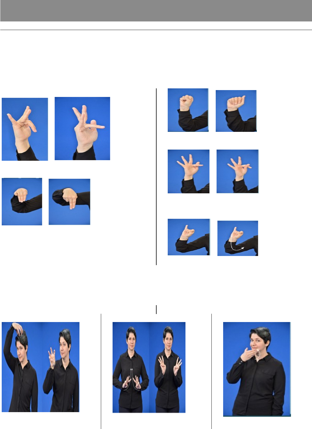 Prova Online Disciplina: 100915 - LÍNGUA BRASILEIRA DE SINAIS - LIBRAS Abaixo estão as questões e as alternativas que você selecionou: Parte superior do formulário QUESTÃO 1 NAMORO e NOIVADO são sinais executados de forma muito semelhante em Libras e se diferenciam principalmente pela configuração de mãos em cada sinal. Escolha a alternativa que apresenta as configurações de mãos corretas dos dois sinais, nessa ordem: 1 - NAMORO 2 - NOIVADO a ) e b ) e c ) e d ) e e ) e QUESTÃO 2 Escolha a alternativa em que está uma das obras do arquiteto Oscar Niemeyer e é sinalizada com um classificador descritivo: a ) b ) c ) d ) e QUESTÃO 3 Em qual alternativa abaixo não está presente um representante da fauna pantaneira? a ) b ) c ) d ) e ) QUESTÃO 4 Analise as afirmativas abaixo e identifique aquela(s) que faz(em) coerente referência à cultura surda. I. Pessoas surdas utilizam uma língua própria, organizada com base em elementos visuais, elas integram uma comunidade organizada, que compartilha crenças, valores e especificidades linguísticas e culturais. II. Defende-se que a condição dos surdos não é a de deficientes, mas sim de sinalizantes de uma língua própria. III. Deve-se tomar o grupo de pessoas ouvintes como centro e modelo para a existência surda, reproduzindo seus modos de ser e sua existência social. a )Todas as alternativas. b )Somente I. c )Somente III. d )Somente I e II. e )Somente II e III. QUESTÃO 5 Aprendemos a função de um importante parâmetro de organização gramatical da Libras que diferencia sinais como PÉSSIMO, MAIS OU MENOS, BOM, MUITO BOM e SENSACIONAL, respostas possíveis à pergunta: COMO VOCÊ ESTÁ? De qual parâmetro da Libras estamos falando na diferenciação desses sinais? a ) Locação b ) Movimento c ) Entonação d ) Expressões não-manuais e )Configurações de mãos QUESTÃO 6 Sobre a iconicidade dos sinais, aprendemos que ela não representa uma regra de transparência, já que é fruto de uma convenção na comunidade sinalizante e pode representar parte ou o todo do referente sinalizado. Analise as opções abaixo e identifique a alternativa em que o sinal em Libras não apresenta características de iconicidade: a ) CIDADE b ) TELEFONE c ) LEÃO d ) ÁRVORE e ) CASA QUESTÃO 7 Aprendemos que os sinais podem ser simples, ou seja, formados por apenas uma forma sinalizada, como os sinais HOMEM e MULHER ou podem ser formados por um processo de composição, que combina mais de um sinal para representar um conceito, como em MÃE (MULHER + BENÇÃO) ou SIGNO (MÊS+ESTRELA). Assinale a alternativa abaixo que só apresente exemplos de sinais compostos em Libras: a )HOMEM e CASA b )ESCOLA e CARRO c )PEDIATRA e NADADOR d )ÁRVORE e PAI e )EDUCAÇÃO e PROFESSOR QUESTÃO 8 As concepções a respeito dos surdos e da surdez podem se apresentar em duas facetas distintas, pelas concepções do modelo socioantropológico ou do modelo clínico-terapêutico. Assinale 1 para modelo socioantropológico e 2 para clínico-terapêutico e escolha a alternativa correta: ( ) Define a surdez como uma exclusão e um isolamento no mundo do silêncio. ( ) Define a surdez como uma experiência e uma representação visual. ( ) Considera concepções sociais, linguísticas e antropológicas dos surdos. ( ) Enxerga os surdos como parte de uma minoria linguística e cultural, não como deficientes da linguagem. a )2, 1, 2, 2. b )2, 1, 2, 1. c )1, 2, 1, 2. d )1, 1, 1, 2. e )2, 1, 1, 1. QUESTÃO 9 Na cultura surda, a cidade ou atração turística costuma ser batizada com um sinal que corresponde a um elemento visual da paisagem que a caracteriza. Escolha a única alternativa em que esse costume cultural não se aplica: a ) Austrália b ) Paris c )Machu Picchu d ) Canadá e ) Inglaterra QUESTÃO 10 Em nosso material didático adotamos a convenção de utilizar o símbolo @ em alguns sinais, como em MENIN@. Qual alternativa explica o motivo dessa convenção? a )Para indicar que a palavra é um substantivo. b )Para indicar que em Libras todas as palavras estão sempre no gênero feminino. c )Para indicar que a palavra é um empréstimo linguístico. d )Para mostrar que não há flexão de gênero na sinalização. e ) Para diferenciar Libras de português. Parte inferior do formulário Prova Online Disciplina: 100915 - LÍNGUA BRASILEIRA DE SINAIS - LIBRAS Abaixo estão as questões e as alternativas que você selecionou: QUESTÃO 1 NAMORO e NOIVADO são sinais executados de forma muito semelhante em Libras e se diferenciam principalmente pela configuração de mãos em cada sinal. Escolha a alternativa que apresenta as configurações de mãos corretas dos dois sinais, nessa ordem: 1 - NAMO RO 2 - NOIVADO a ) e b ) e c ) e d ) e e ) e QUESTÃO 2 Escolha a alternativa em que está uma das obras do arquiteto Oscar Niemeyer e é sinalizada com um classificador descritivo: a ) b ) c ) Prova Online Disciplina: 100915 - LÍNGUA BRASILEIRA DE SINAIS - LIBRAS Abaixo estão as questões e as alternativas que você selecionou: QUESTÃO 1 NAMORO e NOIVADO são sinais executados de forma muito semelhante em Libras e se diferenciam principalmente pela configuração de mãos em cada sinal. Escolha a alternativa que apresenta as configurações de mãos corretas dos dois sinais, nessa ordem: 1 - NAMORO 2 - NOIVADO a ) e b ) e c ) e d ) e e ) e QUESTÃO 2 Escolha a alternativa em que está uma das obras do arquiteto Oscar Niemeyer e é sinalizada com um classificador descritivo: a ) b ) c )