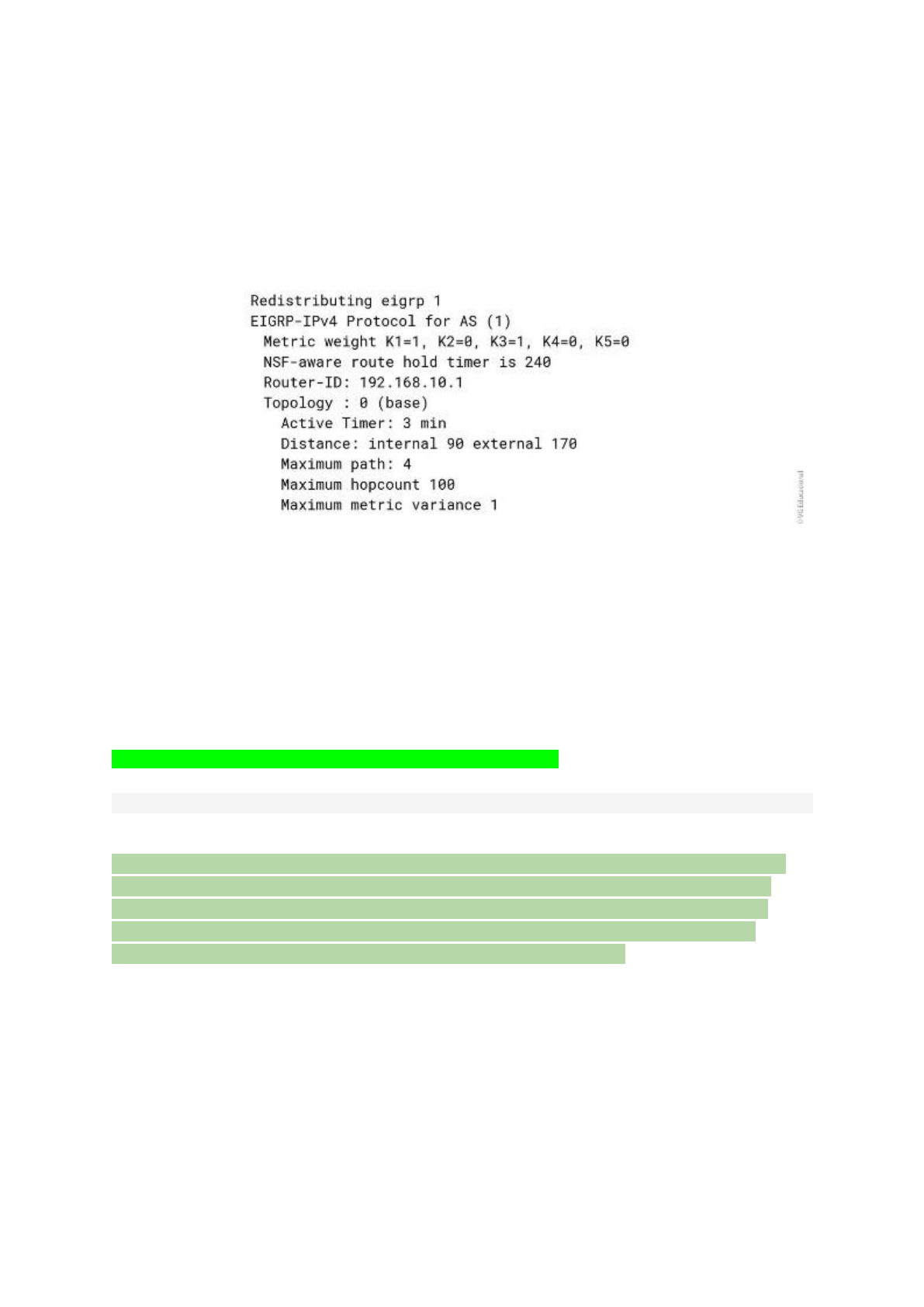 Um analista de redes está configurando o EIGRP no seu roteador da Matriz, designado de R1-MATRIZ. Ele pretende organizar o ambiente, com controle total sobre nomenclatura, identificação, endereçamento, topologia e redistribuição de rotas. O analista também sabe que o EIGRP possui três critérios para atribuição de ID a um roteador. Sobre a estrutura de identificação atribuída ao roteador pelo EIGRP, analise a figura do arquivo de configuração do equipamento a seguir: Figura - Parametrização do EIGRP Fonte: Elaborada pelo autor. Considerando que o roteador não possui nenhuma interface de loopback, assinale a alternativa correta sobre qual das opções abaixo pode ser considerada correta com relação ao ID atribuído ao roteador: ID é gerado através da entrega de um IP pelo DHCP da rede. ID configurado automaticamente através da rota mais rápida. ID configurado manualmente ou atribuído de uma interface ativa. ID é padrão para todos os EIGRP com o parâmetro “eigrp 1”. ID foi gerado aleatoriamente para um IP de gateway padrão. RESPONDER QUESTÃO Resposta correta. A alternativa está correta, pois o ID atribuído só pode ter sido configurado manualmente – pouco provável, mas possível; ou atribuído através da coleta do IP de uma interface ativa. O segundo critério neste cenário não pode existir, devido à inexistência da interface de loopback. A boa prática para esses casos é atribuir IDs que façam sentido a topologia. Podem ser IPs, desde que relevantes ao ambiente aplicado. Os protocolos foram definidos sobre regras claras e de associatividade em camadas. Cada protocolo possui características específicas e bem definidas. Essas características têm sua representação revelada através dos campos que cada um exibe. Porém, para todos, existe uma definição sobre o tamanho do cabeçalho, que será utilizado por roteadores - por exemplo - no caso, de interconectividade de redes no processo de roteamento. Neste aspecto geral, assinale a alternativa correta, sobre o tamanho do cabeçalho de um pacote IPv4. 32 MBytes. 32 KBytes. 32 Bytes. 32 Bits. 32 GBytes. Resposta correta. A alternativa está correta, pois o tamanho do cabeçalho de um pacote IPv4 é de 32 bits. Afinal ele aponta as características do pacote. Por exemplo, podemos fazer o download de 10MB, porém, a cada pacote baixado, o cabeçalho conterá apenas 32 bits de informação (campos do cabeçalho) – considerando IPv4 . O protocolo OSPF (Open Shortest Path First) é considerado o sucessor do protocolo RIP (RIPv2). O OSPF é um protocolo de estado de enlace que utiliza - como seu nome já diz - um algoritmo de busca do caminho mais curto. Ele pode ser utilizado em redes corporativas, porém seu uso massivo é em redes de backbones e de ISPs (Internet Service Providers). Sobre as características do OSPF, analise as afirmativas a seguir: I. Dijkstra é o algoritmo utilizado para a busca do caminho de menor custo. II. OSPF cria um grafo (mapa topológico) completo de toda a rede. III. OSPF limita os roteadores a conhecer somente 150 saltos. IV. OSPF não utiliza mensagens do tipo Hello para descoberta da rede. Está correto o que se afirma em: I, apenas. III e IV, apenas. I, III e IV, apenas. II, apenas. I e II, apenas. Resposta correta. A alternativa está correta, pois o algoritmo Dijkstra é o “motor” de busca dos caminhos de menor custo dentro do OSPF. Para que o melhor caminho seja encontrado é necessária a descoberta da topologia de toda a rede. Os custos são calculados em virtude da banda de cada link. Links que possuem maiores bandas tem um peso mais baixo associado, logo são preferenciais em relação aos links com menos banda. A arquitetura dos datagramas é formada por diversos campos que definem seu comportamento e sua característica com relação à camada em que está inserido. Esses campos são compostos por valores binários que são interpretados pelos equipamentos de redes e interfaces, com um objetivo claro e específico. Dadas as opções abaixo, assinale a alternativa correta, que descreve sucintamente características verdadeiras sobre os campos do cabeçalho de pacotes IP. Têm características relacionadas ao transporte como endereços de origem e destino. Têm características relacionadas ao controle do meio de transmissão da camada 1. Têm características relacionadas ao controle da sinalização do circuito . Têm características relacionadas à definição da camada inferior transportada. Têm características relacionadas à mensageria entre os protocolos de roteamento. PRÓXIMA QUESTÃO Resposta correta. A alternativa está correta, pois as principais características do cabeçalho IP estão relacionadas ao transporte. Afinal o objetivo da sua existência é exatamente este, transportar uma informação de uma origem a um destino remoto. Vale lembrar que além dos campos de endereçamento, existem outros tão importantes quanto, como o tempo de serviço, versão, checksum etc. Recomenda-se uma análise profunda sobre os campos do cabeçalho, pois assim, ao depurar uma rede, as informações serão mais claras e precisas ao administrador. Como todo protocolo de roteamento, o EIGRP possui um mecanismo de comunicação para com seus vizinhos. Ele utiliza um formato de mensageria chamado Hello. Os pacotes Hello são usados pelos roteadores para formar adjacências de vizinhos EIGRP. Essas adjacências são chamadas de "relações com vizinhos". Sobre o contexto acima apresentado, analise as afirmativas a seguir: I. Pacotes Hello do EIGRP são enviados em multicast tanto em IPv4 quanto em IPv6. II. O sistema de entrega é não confiável via RTP. III. O endereço de multicast do EIGRP em IPv4 É 224.0.0.11. IV. As mensagens dos pacotes Hello são enviadas a cada 10s. Com relação à mensageria do EIGRP, está correto o que se afirma em: ● II, apenas. ● I, III e IV, apenas. ● I e II, apenas. ● I, apenas. ● III e IV, apenas. Resposta cor