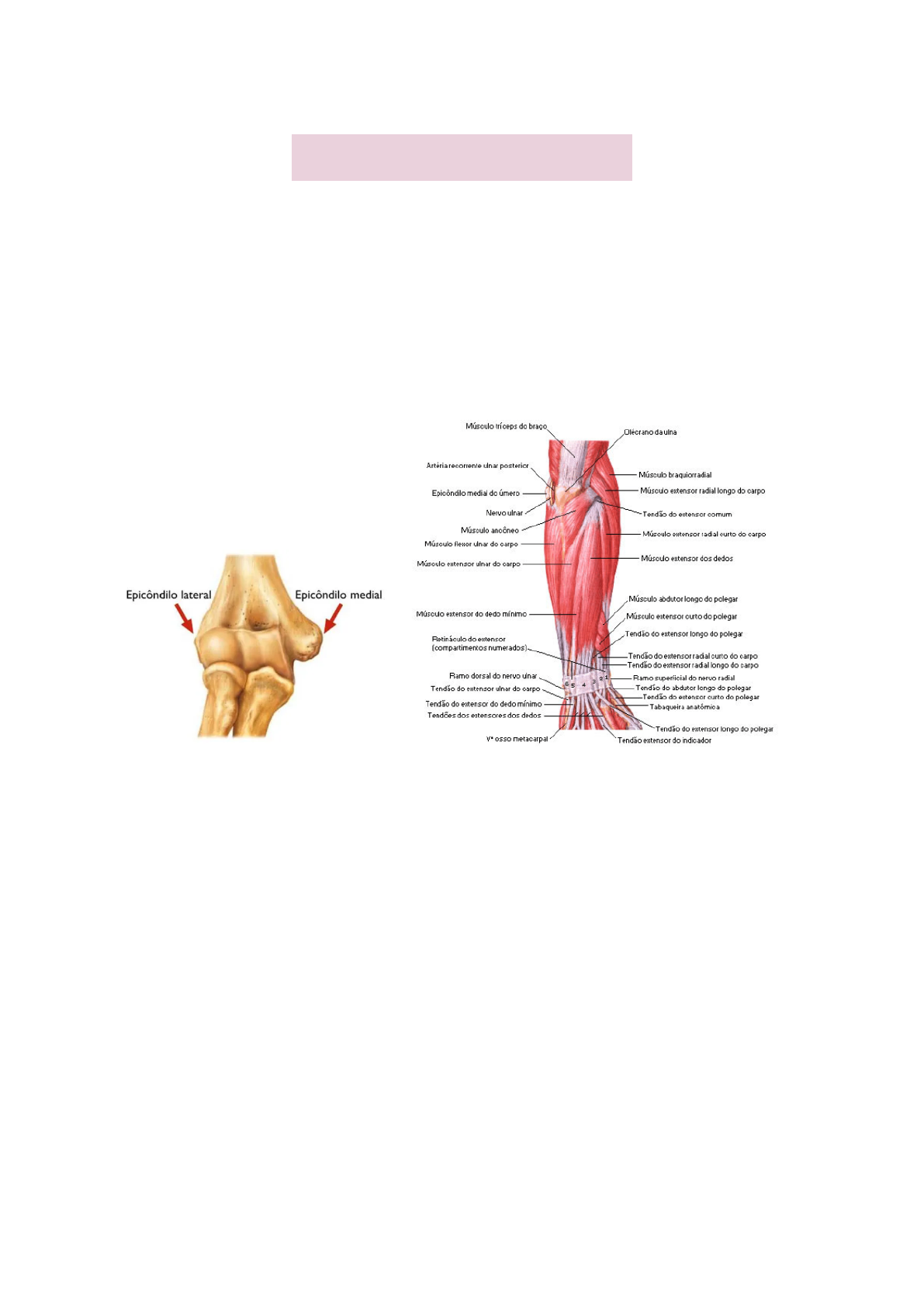 Epicondilite Lateral Anatomia Em uma posição anatômica, os epicôndilos são acidentes ósseos da epífise distal do úmero, nela temos o epicôndilo lateral e o epicôndilo medial. Esses epicôndilos servem como ponto de fixação dos músculos do antebraço. Músculos flexores do punho e da mão estão localizados na região anterior do antebraço e no epicôndilo lateral tem origem os músculos extensores de punho, mão e dedos e do músculo supinador, que estão localizados na região posterior do antebraço. Definição O termo epicondilite sugere uma inflamação, o sufixo ITE vem de inflamação, epicondilite seria teoricamente, a inflamação do epicôndilo. Embora a análise tecidual não demonstre um processo inflamatório, é uma afecção degenerativa que acomete os tendões extensores com origem no epicôndilo lateral. Estudos histopatológicos caracterizam essa afecção como uma tendinose. A pessoa com epicondilite lateral sente dor com a extensão do punho e na supinação E por que de tenista? É conhecida assim porque foi descrita primeiro em atletas do esporte, que desenvolveram a lesão pelo “backhand”. A epicondilite também está relacionada a outras atividades com esforço repetitivo como musculação ou digitação. Apesar da descrição em atletas, apenas 5 a 10% dos pacientes que apresentam epicondilite praticam este esporte. Mecanismo de lesão A epicondilite lateral é uma doença ocupacional e autolimitada, mais comum em não atletas, principalmente com pessoas entre 35 e 50 anos que executam esforço repetitivo. Quando ocorre uma sobrecarga excessiva dessa região, sendo mais frequente o acometimento do tendão extensor radial curto do carpo, pode ser iniciado um processo inflamatório, que tem como objetivo cicatrizar pequenas lesões causadas pela tensão. Na epicondilite há uma degeneração das fibras de colágeno dos tendões, que pode ocorrer após uma inflamação inicial. Quando a sobrecarga continua ocorrendo, essa degeneração não apresenta melhora, cicatrizes de fibrose podem se formar e o paciente passa a sentir uma dor crônica e diminuição de força. A dor e disfunção, são desencadeados por movimentos repetitivos e vigorosos, causando sobrecarga da articulação do cotovelo. Embora os termos epicondilite e tendinite sejam utilizados para descrever o "cotovelo do tenista", estudos histopatológicos caracterizam essa afecção não como uma condição inflamatória e sim como uma tendinose. Sintomatologia e Diagnóstico O diagnóstico é feito, basicamente observando a história do paciente e o exame clínico. A queixa principal é a dor na região do epicôndilo lateral estendendo-se ao dorso do antebraço e a incapacidade para a prática esportiva e da vida diária. Em geral, a dor surge com atividades que envolvem extensão ativa ou flexão passiva do punho com o cotovelo em extensão. Avaliação fisioterapêutica Inicia com uma palpação do epicôndilo lateral, o paciente apresenta dor localizada à palpação na origem dos extensores. O teste de Cozen reproduz a dor experimentada pelo paciente que, ao realizar a extensão do punho contra a resistência e com o cotovelo em 90° de flexão e o antebraço em pronação, refere dor no epicôndilo lateral. O teste de Mill é realizado com o paciente com a mão fechada, o punho em dorsiflexão e o cotovelo em extensão. O fisioterapeuta vai forçar o punho em flexão e o paciente é orientado para resistir ao movimento, provocando dor no epicôndilo lateral. No "teste da cadeira" o paciente é instruído a erguer uma cadeira com uma mão com o antebraço em pronação e o punho em flexão palmar. No teste da xícara de café o paciente relata dor no epicôndilo lateral ao levantar uma xícara cheia. No teste de Maudsley o paciente sente dor que pode ser despertada pela extensão do dedo médio contra resistência. Tratamento O tratamento é feito após o controle da dor, o ultra-som terapêutico e crioterapia são eficazes para isso. Depois o fisioterapeuta inicia com liberação miofascial, alongamento e o ganho da amplitude articular do punho e cotovelo, seguido de exercícios isométricos e isocinéticos. Muito importante focar em extensão e supinação. As contrações excêntricas dos músculos do punho são necessárias para diminuir a dor e melhorar a função.