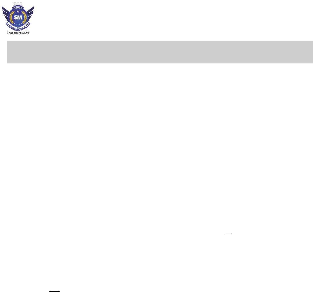 CURSO SUPERMÓDULOS – SEMPRE APROVANDO! Est. Tingui 2158 Campo Grande – RIO DE JANEIRO – RJ / TEL.: 2412-2181 1. Um cilindro equilátero é aquele cilindro reto que possui altura igual ao dobro do raio da base. Sabendo que o volume é calculado pela fórmula 𝜋 ∙ 𝑟2 ∙ ℎ, quanto mede o volume de um cilindro equilátero que possui raio igual a 𝜋? (A) 𝜋 (B) 6 ∙ 𝜋 (C) 2 ∙ 𝜋4 (D) 𝜋6 (E) 4 ∙ 𝜋2 2. Em uma escola particular foi feita uma entrevista com 200 alunos sobre curso de língua estrangeira. 110 alunos responderam que frequentavam um curso de Inglês, 28 alunos responderam que frequentavam somente o curso de espanhol e 20 responderam que frequentavam ambos, inglês e espanhol. Qual a probabilidade de um desses alunos não frequentar nenhum desses dois cursos? (A) 55% (B) 42% (C) 52% (D) 31% (E) 62% 3. As medidas, em centímetros, dos lados de um triângulo são expressas por x+1, 2x e x²-5 e estão em progressão aritmética, nessa ordem. Calcule o perímetro do triângulo. (A) 15 cm (B) 24 cm (C) 18 cm (D) 20 cm (E) 25 cm 4. Uma pequena praça tem o formato triangular, as medidas dos lados desse triângulo são √37 𝑚, 4𝑚 𝑒 3𝑚. Qual é a medida do ângulo oposto ao maior lado? (A) 60° (B) 45 ° (C) 90° (D) 120° (E) 150° 5. Para que 𝑧 = 5+𝑖 𝑎−2𝑖 , seja um imaginário puro, o valor de a deve ser: (A) 2/5 (B) -2/5 (C) 0 (D) 10 (E) -10 6. Um anagrama é uma espécie de jogo de palavras, resultando do rearranjo das letras de uma palavra ou expressão para produzir outras palavras ou expressões, utilizando todas as letras originais exatamente uma vez. Para participar de uma competição uma equipe decide criar uma senha, fazendo um anagrama do nome original da equipe, que é “FOXTROT”. De quantas maneiras diferentes poderá ser criada essa senha? (A) 1260 (B) 5040 (C) 10080 (D) 2520 (E) 1680 7. Se, para quaisquer valores X1 e X2 de um conjunto S (contido no domínio d), com X1 < X2 , temos f(X1) < f(X2), então podemos afirmar que a função f é: (A) crescente (B) inconstante (C) alternada (D) constante (E) decrescente Matemática 12 questões – valor de 0,000 (zero) a 10,000 (dez) Prova ESA – CFS – 2020/21 CURSO SUPERMÓDULOS – SEMPRE APROVANDO! Est. Tingui 2158 Campo Grande – RIO DE JANEIRO – RJ / TEL.: 2412-2181 8. Seja A uma matriz de ordem 3 tal que Det (A) = 4. Então Det (2A) vale: (A) 16 (B) 64 (C) 32 (D) 128 (E) 8 9. O valor que deve ser somado ao polinômio 2𝑥3 + 3𝑥2 + 8𝑥 + 15 para que ele admita 2i como raiz, sendo i a unidade imaginária é: (A) 3 (B) -15 (C) 12 (D) -3 (E) -12 10. Observe a inequação modular |3x – 2| = 8 + 2x e identifique a alternativa que apresenta uma das possíveis raízes. (A) 10 (B) -10 (C) 4 (D) 0 (E) -4 11. Em um triângulo equilátero ABC inscreve-se um quadrado MNOP de área 3 m2 . Sabe-se o lado MN está contido em AC, o ponto P pertence a AB e o ponto O pertence a BC. Nessas condições, a área, em m2 , do triângulo ABC mede: (A) 7√3+6 2 (B) 7√3+12 4 (C) 21√3+18 2 (D) 21√3+36 4 (E) 7√3+6 4 12. Identifique a alternativa que apresenta o produto das raízes da equação 5.x3 – 4.x2 + 7.x – 10 = 0. (A) -10 (B) 10 (C) 2 (D) -2 (E) 7 13. Na oração: “Conheci, pois, Ari Ferreira, quando comecei a trabalhar em Clínica Médica, portanto em 1924”, os termos sublinhados, ambos têm função morfológica de: (A) conjunções conclusivas. (B) conjunções adversativas. (C) conjunções explicativas. (D) conjunções alternativas. (E) conjunções aditivas. 14. Leia os versos a seguir, e assinale a alternativa que os analisa corretamente. Vozes veladas, veludosas vozes, Volúpias dos violões, vozes veladas, Vagam nos velhos vórtices de vozes Dos ventos vivas, vãs, vulcanizada. (A) a combinação vocabular provoca a ênfase na sonoridade típica do Simbolismo. (B) a linguagem dos versos materializa no texto a visão bucólica do Arcadismo. (C) os versos decassílabos apresentam os paradoxos característicos do Barroco. (D) as metáforas insólitas traduzem a crítica social própria do Modernismo. (E) a expressão objetiva aponta para a racionalidade dos poetas do Realismo. Português 12 questões – valor de 0,000 (zero) a 10,000 (dez) CURSO SUPERMÓDULOS – SEMPRE APROVANDO! Est. Tingui 2158 Campo Grande – RIO DE JANEIRO – RJ / TEL.: 2412-2181 TEXTO – Para que ninguém a quisesse Marina Colasanti Porque os homens olhavam demais para a sua mulher, mandou que descesse a bainha dos vestidos e parasse de se pintar. Antes disso, sua beleza chamava a atenção, e ele foi obrigado a exigir que eliminasse os decotes, jogasse fora os sapatos altos. Dos armários tirou as roupas de seda, das gavetas tirou todas as joias. E vendo que, ainda assim, um ou outro olhar viril se acendia à passagem dela, pegou a tesoura e tosquiou-lhe os longos cabelos. Agora podia viver descansado. Ninguém a olhava duas vezes, homem nenhum se interessava por ela. Esquivava-se como um gato, não mais atravessava praças. E evitava sair. Tão esquiva se fez, que ele foi deixando de ocupar-se dela, permitindo que fluísse em silêncio pelos cômodos, mimetizada com os móveis e as sombras. Uma fina saudade, porém, começou a alinhavar-se em seus dias. Não saudade da mulher. Mas do desejo inflamado que tivera por ela. Então lhe trouxe um batom. No outro dia um corte de seda. À noite tirou do bolso uma rosa de cetim para enfeitar-lhe o que restava dos cabelos. Mas ela tinha desaprendido a gostar dessas coisas, nem pensava mais em lhe agradar. Largou o tecido numa gaveta, esqueceu o batom. E continuou andando pela casa de vestido de chita, enquanto a rosa desbotava sobre a cômoda. 15. Assinale o item em que a explicação que corresponde ao excerto citado: (A) “Uma fina saudade, porém, começou a alinhavar-se em seus dias.”/ A esposa perde a matéria que a torna ser. (B) “E continuou andando pela casa de vestido de chita.” / Reforça a ideia de que o hom