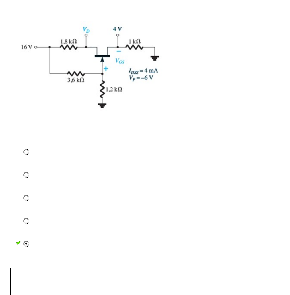 Determine a tensão VD para o circuito da figura a seguir: Fonte: EnsineMe. 16V 12V 4V 0V 8,8V Data Resp.: 05/11/2022 13:41:31 Explicação: A resposta certa é: 8,8V