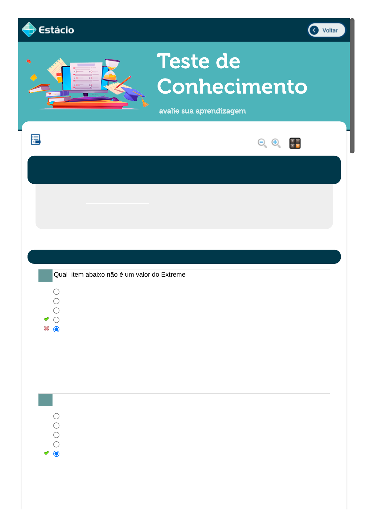 06/11/2022 10:18 Estácio: Alunos https://simulado.estacio.br/alunos/ 1/1 Teste de Conhecimento avalie sua aprendizagem Qual item abaixo não é um valor do Extreme Programming? Qual item abaixo não é um valor do Scrum? MÉTODOS ÁGEIS COM SCRUM Lupa Calc. EEX0115_202001161481_TEMAS Aluno: CLEBERSON DE SOUZA BASILIO Matr.: 202001161481 Disc.: MÉTODOS ÁGEIS CO 2022.3 EAD (G) / EX Prezado (a) Aluno(a), Você fará agora seu TESTE DE CONHECIMENTO! Lembre-se que este exercício é opcional, mas não valerá ponto para sua avaliação. O mesmo será composto de questões de múltipla escolha. Após responde cada questão, você terá acesso ao gabarito comentado e/ou à explicação da mesma. Aproveite para se familiarizar com este modelo de questões que será usado na sua AV e AVS. PROJETO ÁGIL 1. Respeito Simplicidade Coragem Metáforas Feedback Data Resp.: 06/11/2022 10:11:33 Explicação: A resposta correta é: Metáforas 2. Abertura Foco Respeito Coragem Adaptação Data Resp.: 06/11/2022 10:12:08 Explicação: A resposta correta é: Adaptação javascript:voltar(); javascript:voltar(); javascript:diminui(); javascript:aumenta(); javascript:calculadora_on();