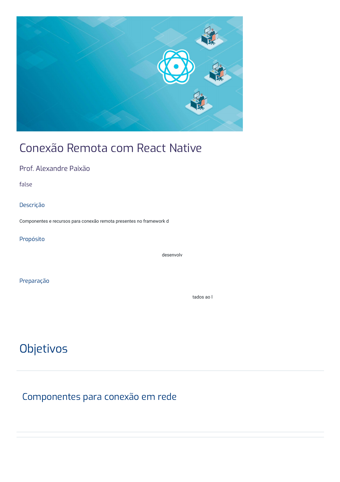 de um aplicativo que utilize recursos remotos. Em React Native, tanto os componentes para conexão remota como os demais