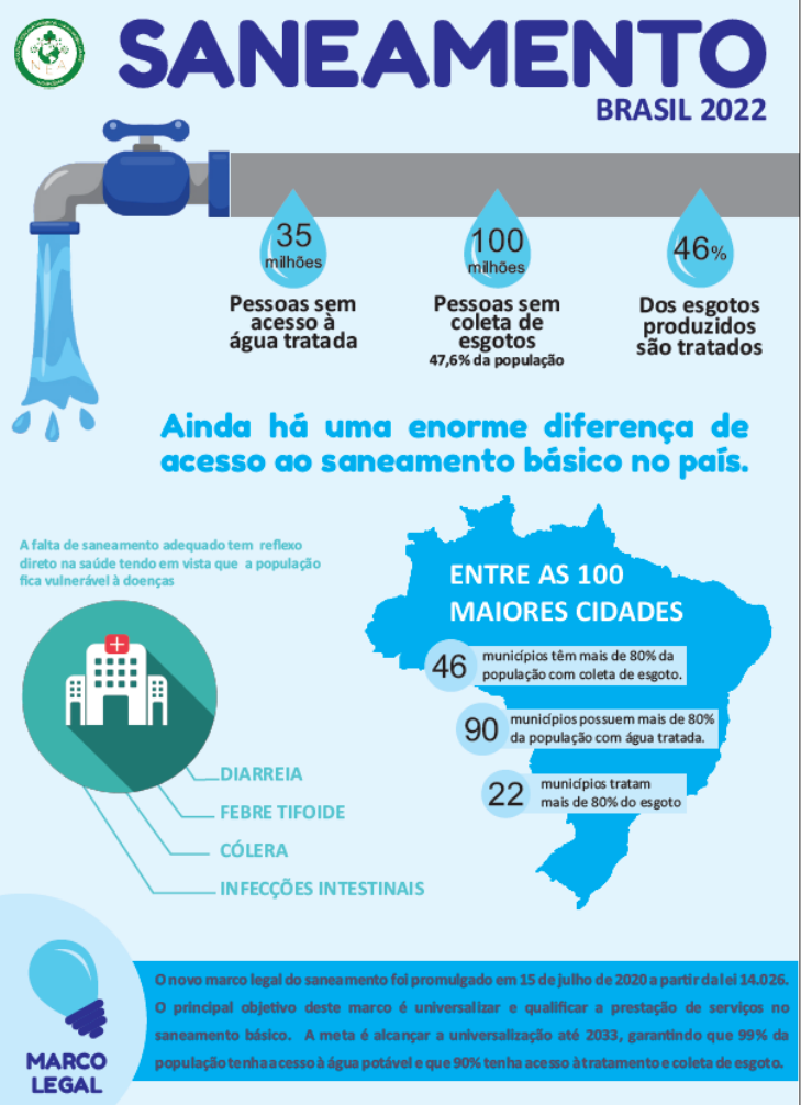 ATIVIDADE ENADE - SEMANA 13 – SANEAMENTO Sabe-se que nossa sociedade enfrenta grandes desafios em relação ao chamado desenvolvimento econômico e tal situação também compromete a sobrevivência das organizações. Tendo em vista este fator, observe o infográfico abaixo: Com base no infográfico acima, redija um texto dissertativo-argumentativo mostrando as consequências das situações relativas ao saneamento em relação à geração de riqueza nas organizações (200 palavras).