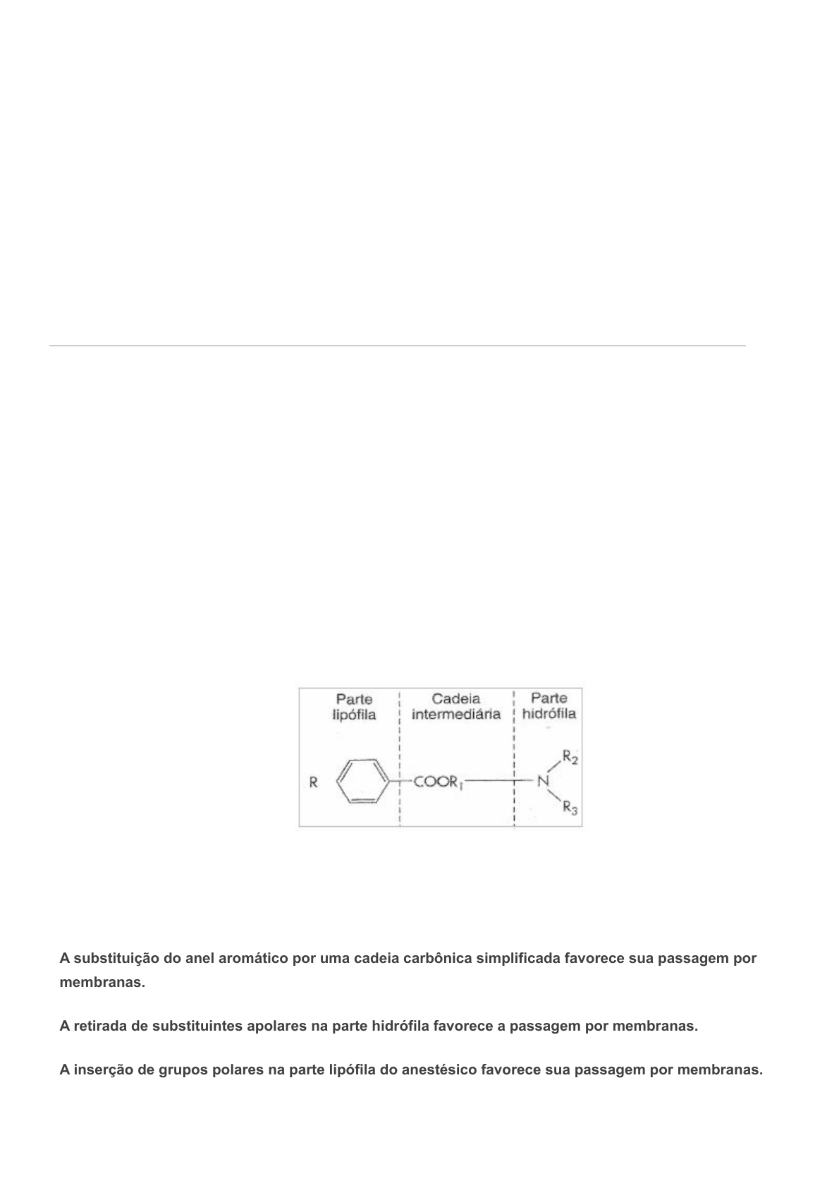 09/11/2022 17:50 Comentários https://sereduc.blackboard.com/ultra/courses/_130973_1/grades/assessment/_6554732_1/overview/attempt/_22613688_1/review/inline-feedback… 1/9 Conteúdo do exercício Ocultar opções de resposta Pergunta 1 1 / 1 Os anestésicos locais possuem estruturas cujos principais grupos estão representados na Figura 4. Na porção hidrófila, os anestésicos podem apresentar diferentes constantes de ionização (pKa) que variam de 7,6 a 8,9; gerando diferenças no seu perfil de passagem por membranas. Figura 4: Estrutura química básica dos anestésicos locais. Fonte: Adaptado de KOROLKOVAS, 1982 (p. 364) Considerando possíveis alterações químicas dos anestésicos locais e seus efeitos na passagem por membranas, assinale a alternativa correta: A substituição do anel aromático por uma cadeia carbônica simplificada favorece sua passagem por membranas. A retirada de substituintes apolares na parte hidrófila favorece a passagem por membranas. A inserção de grupos polares na parte lipófila do anestésico favorece sua passagem por membranas. Resposta correta A inserção de substituintes apolares na parte hidrófila favorece a passagem por membranas. 10/10 Nota final Enviado em: 09/11/22 17:49 (BRT) 09/11/2022 17:50 Comentários https://sereduc.blackboard.com/ultra/courses/_130973_1/grades/assessment/_6554732_1/overview/attempt/_22613688_1/review/inline-feedback… 2/9 Ocultar opções de resposta Alterações que deixam a parte hidrófila da molécula mais carregada favorecem a passagem por membranas. Pergunta 2 1 / 1 A meticilina (Figura 2) foi a primeira penicilina parcialmente sintética resistente às betalactamases, cujo mecanismo de resistente foi gerado pela inserção de do grupo metoxi na posição do anel aromático, a fim de proteger o grupo farmacofórico da molécula (anel lactâmico) (KOROLKOVAS, 1982). Figura 2 – Estrutura química da meticilina Fonte: Adaptado de PATRICK, 1995 (p. 176) Avaliando esta modificação molecular no antibiótico, é possível afirmar que a alteração buscou: Favorecer a forma não ionizada da molécula. Alterar o coeficiente de partição da molécula. Gerar um centro quiral na molécula. Resposta corretaGerar um impedimento estérico em uma porção da molécula. Gerar um pró-fármaco da molécula Pergunta 3 1 / 1 09/11/2022 17:50 Comentários https://sereduc.blackboard.com/ultra/courses/_130973_1/grades/assessment/_6554732_1/overview/attempt/_22613688_1/review/inline-feedback… 3/9 Ocultar opções de resposta A clorpromazina (Figura 6) é o principal agente antipsicótico empregado no tratamento da esquizofrenia. O fármaco atua em receptores dopaminérgicos dos tipos 2 ou 4. Considerando a estrutura e os dados da constante de inibição de receptores dopaminérgicos, avalie as afirmativas a seguir Figura 6: Estruturaa química da clorpromazina. Fonte: Adaptado de MENEGATTI et al., 2004. I. A clorpromazina possui maior afinidade por receptores dopaminérgicos D2. II. A clorpromazina possui maior afinidade por receptores dopaminérgicos D4. III. Quanto maior a constante Ki, maior é a afinidade pelo receptor. IV. Quanto menor a razão entre as constantes Ki para receptores D2 e D4, maior será afinidade pelo receptor D2. Estão corretas as afirmativas: III e IV. I e II. I e III. II e III. Resposta corretaI e IV. Pergunta 4 1 / 1 09/11/2022 17:50 Comentários https://sereduc.blackboard.com/ultra/courses/_130973_1/grades/assessment/_6554732_1/overview/attempt/_22613688_1/review/inline-feedback… 4/9 Ocultar opções de resposta Os barbitúricos são fármacos empregados na terapia da epilepsia ou como sedativos. Na Figura 5, é possível ver os diferentes fármacos desta classe e as modificações moleculares mais presentes para o surgimento de fármacos cada vez mais eficazes e seguros. Figura 5: Estrutura química dos diferentes barbitúricos. Fonte: Shutterstock - 292074275 Considerando as modificações moleculares dos barbitúricos na química medicinal, avalie as asserções a seguir: I. Nenhuma das modificações químicas buscou inserir substituintes ligados aos nitrogênios da molécula. PORQUE II. A inserção de grupos nos nitrogênios colabora para surgimento dos efeitos adversos do fármaco como o estimulante. Analisando a relação proposta entre as duas asserções acima, assinale a opção correta. Resposta correta As duas asserções são proposições verdadeiras, e a segunda é uma justificativa correta da primeira. A primeira asserção é uma proposição verdadeira, e a segunda é uma proposição falsa. As duas asserções são proposições falsas. A primeira asserção é uma proposição falsa, e a segunda é a uma proposição verdadeira. As duas asserções são proposições verdadeiras, mas a segunda não é uma justificativa correta da primeira. 09/11/2022 17:50 Comentários https://sereduc.blackboard.com/ultra/courses/_130973_1/grades/assessment/_6554732_1/overview/attempt/_22613688_1/review/inline-feedback… 5/9 Ocultar opções de resposta Ocultar opções de resposta Pergunta 5 1 / 1 Considerando os diferentes fármacos de ação no sistema nervoso, sejam eles de ação central ou periférica; uma propriedade físico-química é fundamental nesses fármacos para os efeitos destas substâncias. Estamos falando da(o): Resposta corretaLipossolubilidade Tamanho da molécula Constante de ionização (pKa) Hidrossolubilidade Estereoquímica Pergunta 6 1 / 1 Em 4 de maio de 2007, o governo brasileiro conseguiu um feito raro no contexto das patentes de medicamentos: o licenciamento compulsório do medicamento antirretroviral Efavirenz, configurando a quebra da patente do produto do laboratório Merck da Alemanha. Esta medida foi inédita no Brasil e possibilitou a produção nacional do medicamento, permitindo a redução de custo no tratamento contra o HIV oferecido pelo SUS. Sobre a propriedade intelectual e seus efeitos no acesso aos medicamentos, é correto afirmar: A concessã