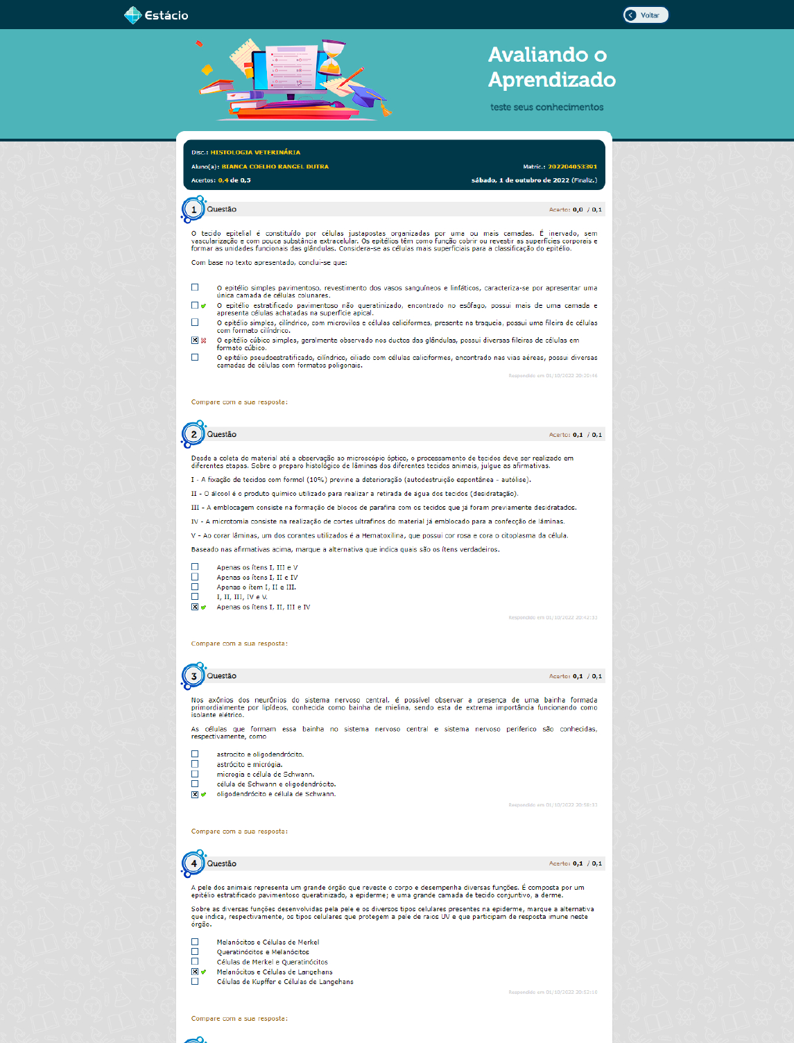 AVALIANDO APRENDIZADO 3 - HISTOLOGIA VETERINÁRIA