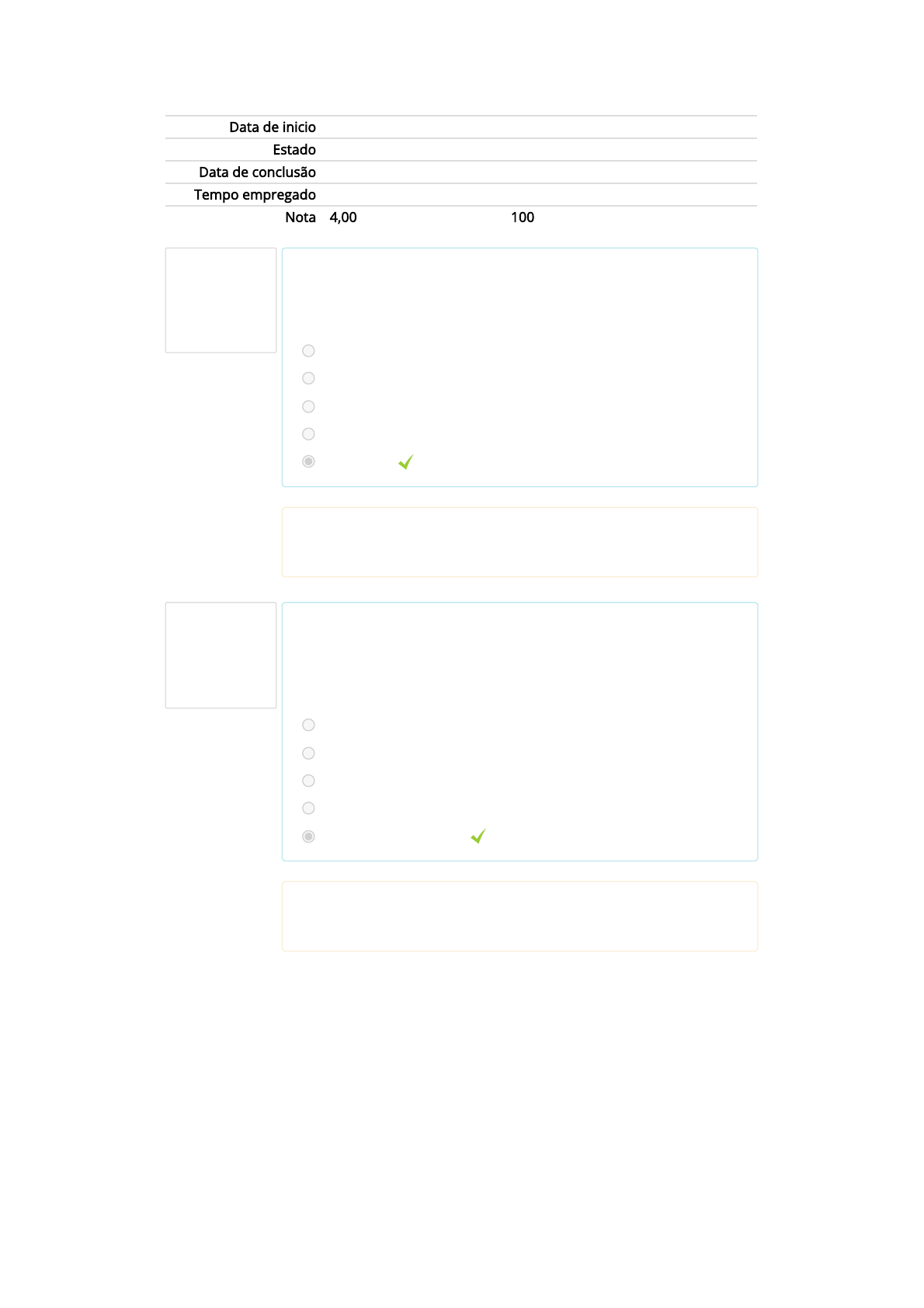 Questão 1 Correto Atingiu 1,00 de 1,00 Questão 2 Correto Atingiu 1,00 de 1,00 Introdução à Segurança do Trabalho ► AVALIAÇÃO ► ATIVIDADE DO ESTUDO DE CASO Data de inicio quinta, 3 Mar 2022, 21:53 Estado Finalizada Data de conclusão quinta, 3 Mar 2022, 21:55 Tempo empregado 1 minuto 57 segundos Nota 4,00 de um máximo de 4,00(100%) Os vapores gerados no processo de soldagem das estruturas metálicas é um Risco: Escolha uma: a. Biológico. b. Ergonômico. c. De Acidente. d. Físico. e. Químico. Sua resposta está correta. A resposta correta é: Químico.. O problema da mobilidade dentro da empresa com “peças, equipamentos e caixas espalhados pelo chão” representam um risco de qual tipo? Escolha uma: a. Riscos Físicos. b. Riscos Ergonômicos. c. Riscos Químicos. d. Riscos Biológicos. e. Riscos de Acidentes. Sua resposta está correta. A resposta correta é: Riscos de Acidentes.. https://moodle.universoead.com.br/course/view.php?id=694 https://moodle.universoead.com.br/mod/quiz/view.php?id=11277 Questão 3 Correto Atingiu 1,00 de 1,00 Questão 4 Correto Atingiu 1,00 de 1,00 Quem é o responsável na empresa em fornecer os Equipamentos de Proteção Individual (EPIs) para os funcionários? Escolha uma: a. Joaquim. b. Sr. Cardoso. c. Luiz. d. Aparecido. e. Um Engenheiro de Segurança de fora. Sua resposta está correta. A resposta correta é: Sr. Cardoso.. O ruído do esmeril é um Risco: Escolha uma: a. Ergonômico. b. Físico. c. Biológico. d. De Acidente. e. Químico. Sua resposta está correta. A resposta correta é: Físico..