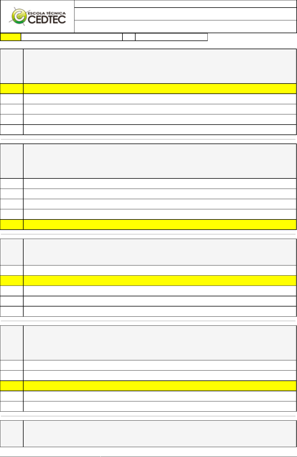 27/10/2022 15:34:58 1/2 REVISÃO DE SIMULADO Nome: RUTE ALVES MENEZES Disciplina: Bioquímica Respostas corretas são marcadas em amarelo X Respostas marcardas por você. Questão 001 A utilização do ciclo de Lynen para a produção energética exige que os produtos formados passem posteriormente pelo ciclo do ácido cítrico e pela cadeia transportadora de elétrons para o maior aproveitamento energético. Quantos ATP’s são formados após a oxidação completa de um ácido graxo contendo 18 carbonos? A) 122 ATP’s. B) 136 AtP’s. X C) 126 ATP’s D) 112 ATP’s. E) 90 ATp’s. Questão 002 A de oxidação β é a principal via de degradação metabólica de ácidos graxos de cadeia longa. Marque a alternativa que corresponde ao saldo energético da oxidação completa após a oxidação β, ciclo do ácido cítrico e fosforilação oxidativa de um ácido graxo contendo 16 carbonos. A) 118 ATP’s. B) 70 ATP’s. X C) 98 ATP’s. D) 80 ATP’s. E) 108 ATP’s. Questão 003 A molécula de fosfoenolpiruvato (PEP) pode ser obtida através da transformação metabólica do oxaloacetato. Quais tipos de molécula podem ser formadas através da utilização anabólica do fosfoenolpiruvato? A) Pirimidinas e glicose. X B) Glicose e aminoácidos. C) Purinas e glicose. D) Ácidos graxos e glicose. E) Aminoácidos e ácidos graxos. Questão 004 Uma das principais formas de obtenção energética nos organismos eucarióticos e a oxidação completa da glicose, com os eventos da glicólise seguidos do ciclo do ácido cítrico e da cadeia transportadora de elétrons. Quantas moléculas de ATP são produzidas a partir da degradação completa de 5 moléculas de glicose? A) 160 ATP’s. B) 150 ATP’s. X C) 170 ATP’s. D) 175 ATP’s. E) 140 ATP’s. Questão 005 O ciclo do ácido cítrico pode ser iniciado em qualquer uma de suas etapas através da produção e direcionamento de um de seus constituintes. Quais os produtos seriam formados a partir da utilização de um Succinil-CoA no ciclo do ácido cítrico? 27/10/2022 15:34:58 2/2 A) 1 GTP, 1 FADH2 e 2 NADH. B) 1 GTP, 1 FADH2 e 1 NADH. C) 1 FADH2 e 1 NADH. X D) 1 FADH2 e 2 NADH. E) 1 GTP, 1 FADH2 e 3 NADH.