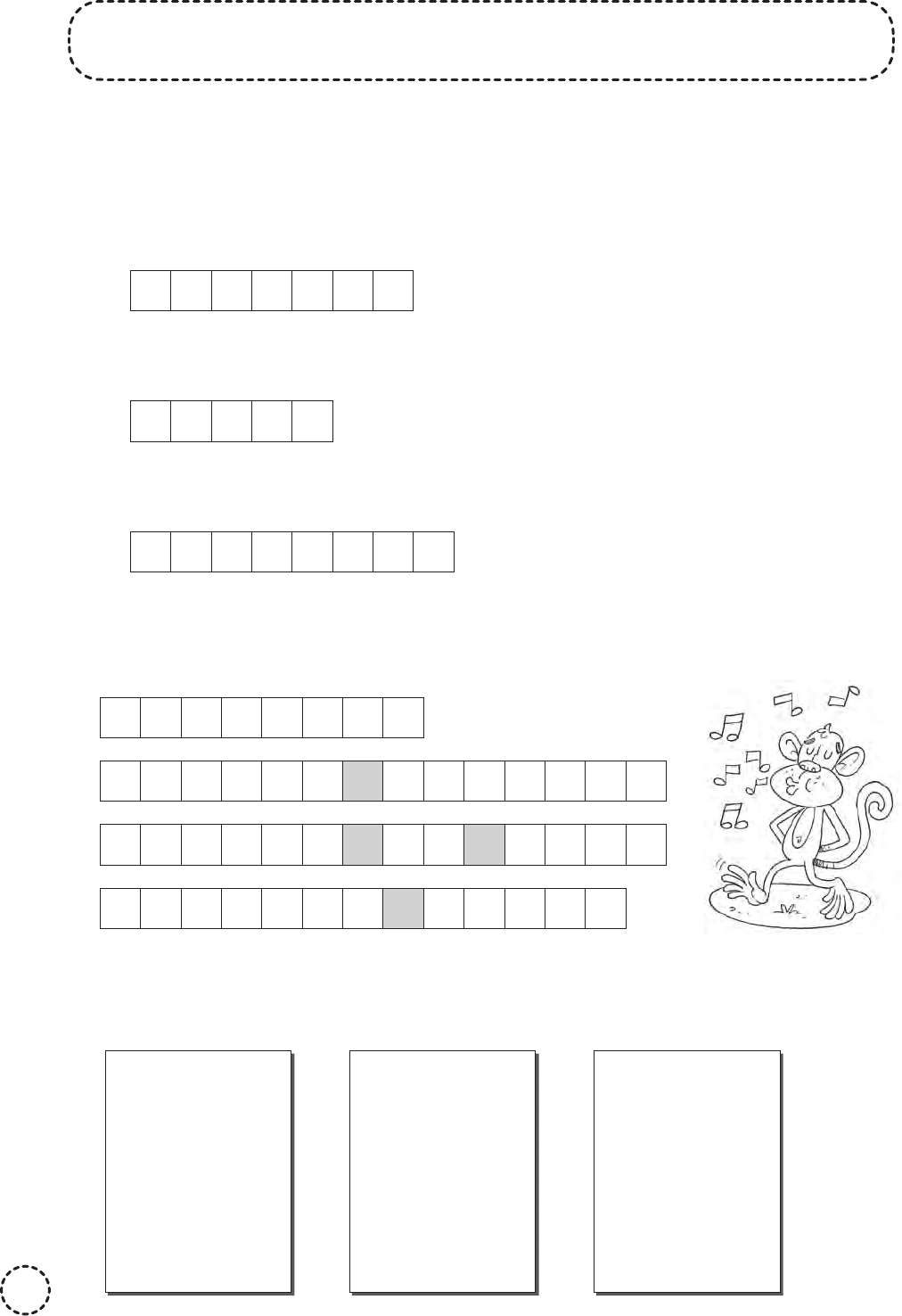 Nome: ________________________________________ Data: ____ /____ /____ 22 EMPREGANDO VOGAIS E CONSOANTES 1� O que é, o que é? Responda. a) Nome de uma cor que começa com a primeira vogal do alfabeto. M R b) Nome de animal que começa com a última consoante e termina com a primeira vogal do alfabeto. B c) Nome de animal que começa com a primeira vogal e termina com a última consoante do alfabeto. V T 2� Leia a parlenda. Depois, pinte as vogais de vermelho e as consoantes de azul. m e i o - d i a, m a c a c o a s s o b i a, p a n e l a n o f o g o, b a r r i g a v a z i a. Domínio público. 3� Complete com consoantes e forme diferentes palavras. a) ___ OLHA b) ___ OLHA c) ___ OLHA d) ___ OLHA e) ___ OLHA f) ___ ATA g) ___ ATA h) ___ ATA i) ___ ATA j) ___ ATA k) ____ OLA l) _____ OLA m) ___ OLA n) ____ OLA o) ____ OLA ATIV_PORTUGUES_2oANO.indd 22ATIV_PORTUGUES_2oANO.indd 22 18/03/20 14:3518/03/20 14:35 VOGAIS E CONSOANTES ATIV_PORTUGUES_2oANO_pag002.pdf VOGAIS E CONSOANTES ATIV_PORTUGUES_2oANO_MIOLO_001.pdf VOGAIS E CONSOANTES