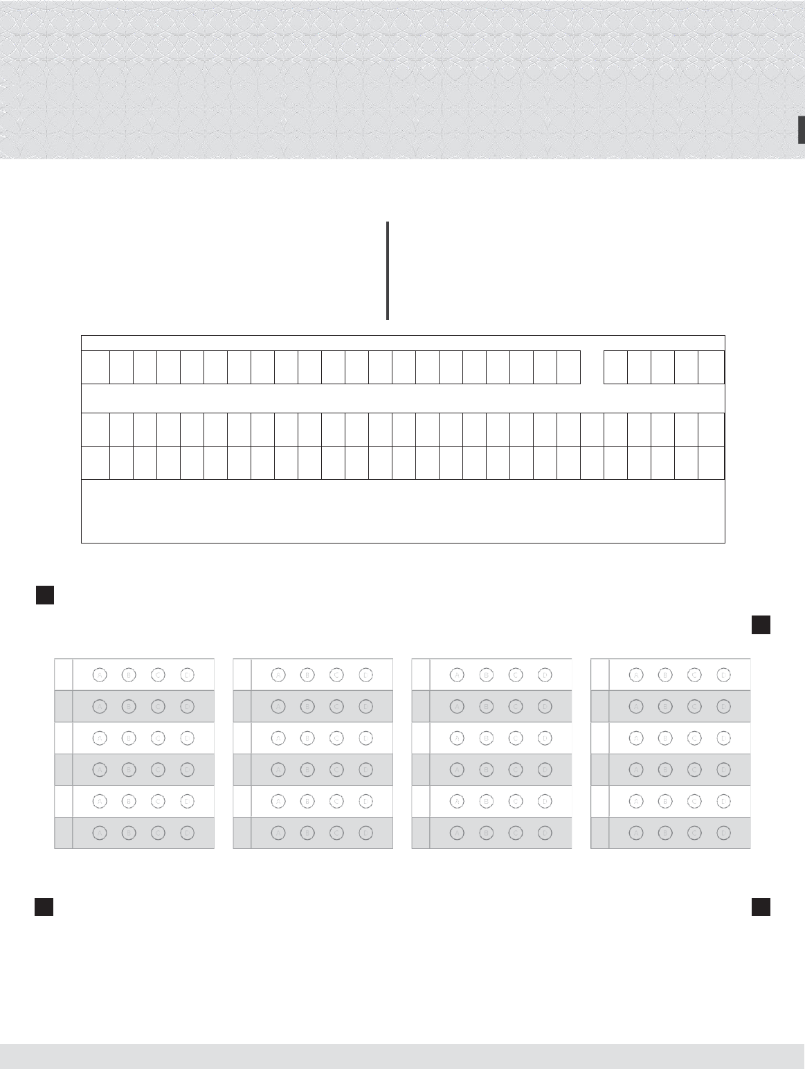 Avaliação Diagnóstica Formativa 2022 LÍNGUA PORTUGUESA 8º ano do Ensino Fundamental Caderno P001 NOME DA TURMA TURNO NOME DO ESTUDANTE CARTÃO RESPOSTA 01 07 13 19 02 08 14 20 03 09 15 21 04 10 16 22 05 11 17 23 06 12 18 24 1 Veja a cena abaixo. (SUP040837I7) 01) Marque a alternativa da frase que conta o que acontece nessa cena. A) A mulher coloca no vestido um forro. B) A mulher dá um banho no cachorro. C) A mulher grita pedindo socorro. D) A mulher sobe correndo o morro. 02) Veja a figura abaixo. Qual é o nome dessa figura? A) FERA B) GEMA C) SEDA D) VELA 2 PÃO DE QUEIJO FÁCIL E SABOROSO INGREDIENTES 250 g de polvilho doce 1 caixa de creme de leite (200 g) 1 ovo 100 g de queijo ralado 1/2 colher (chá) de sal MODO DE PREPARO Coloque todos os ingredientes em uma vasilha e misture bem. Em seguida, faça bolinhas e coloque em uma forma untada com manteiga, deixando espaço entre as bolinhas para que não grudem. Leve ao forno preaquecido (180°C) e deixe por 30 minutos, ou até que fiquem dourados. Leia o texto abaixo. Disponível em: <https://shre.ink/zqH>. Acesso em: 27 jun. 2022. (SUP040845I7) 03) De acordo com esse texto, quantos gramas de queijo ralado deverão ser usados para fazer o pão de queijo? A) 30. B) 100. C) 180. D) 250. 04) Veja a figura abaixo. Qual é o nome dessa figura? A) Teatro B) Teclado C) Telhado D) Tempero 3 O primeiro bolo Tadeu resolveu fazer um bolo de cenoura e sua mãe o ajudou. Ele descascou e picou as cenouras, colocou-as no liquidificador com óleo, os ovos e uma pitada de sal. A mamãe ligou o liquidificador e o ajudou a colocar o líquido em uma tigela. Então, Tadeu colocou o açúcar, a farinha e o fermento. O coelhinho untou a forma com óleo e a deixou branquinha com um pouco de farinha. Depois, ele colocou a massa na forma e a mamãe a colocou no forno. Tadeu fez a cobertura, colocou no bolo pronto e nem esperou esfriar para comer. Hum, ficou uma delícia. 05) Veja a cena abaixo. Marque a alternativa que conta o que acontece na cena. A) A mulher tira o cachorro de dentro de casa. B) A mulher lava na pia a terra que saiu da planta. C) A mulher espanta o gato que quebrou a planta. D) A mulher cuida da planta de sua casa. Leia o texto abaixo. 365 Histórias para ler e sonhar. Jandira: Ciranda Cultural, 2020, p.71. (SUP030861I7) 06) De acordo com esse texto, o coelhinho untou a forma com A) sal. B) óleo. C) fermento. D) açúcar. 4 Dicas para estudar no fim do ano [...] “Eu começo a estudar pelas provas passadas e refaço os exercícios que errei, reservando alguns dias para tirar dúvidas com o professor. Também leio as anotações que faço nas aulas e reescrevo tudo de forma resumida para ficar mais fácil. [...].” Enrico A., 12 anos, São Paulo (SP) “Costumo começar a estudar pela matéria que tenho mais facilidade e interesse, porque assim me empolgo e tenho cada vez mais ambição em aprender. [...] Marina I., 11 anos, São Paulo (SP) “[...] Eu costumo escrever minhas próprias conclusões, porque, às vezes, quando o professor fala e a gente copia, não paramos para entender. Estudar com os amigos também pode ajudar, é mais divertido e dá mais motivação.” Pedro B., 12 anos, São Paulo (SP) Veja a cena abaixo. (SUP040836I7) 07) Marque a alternativa da frase que conta o que acontece nessa cena. A) Os meninos brincam com a peteca. B) Os meninos compram uma maleta. C) Os meninos preparam uma moqueca. D) Os meninos quebram a maçaneta. Leia o texto abaixo. Disponível em: <https://www.jornaljoca.com.br/dicas-para-estudar-no-fim-do-ano/>. Acesso em 28 jun. 2022. Fragmento. (SUP040863I7) 08) De acordo com esse texto, Enrico reserva alguns dias para tirar dúvidas A) dos exercícios que errou. B) das provas passadas. C) com os amigos. D) com o professor. http://www.jornaljoca.com.br/dicas-para-estudar-no-fim-do-ano/ Leia o texto abaixo. 5 Aula de Português – Joãozinho, conjugue o verbo andar. – Eu ando, tu andas, ele anda, nós... – Mais rápido, Joãozinho! – Eu corro, tu corres, ele corre, nós... Disponível em: <https://www.jornaljoca.com.br/bts-anuncia-pausa-do-grupo/>. Acesso em: 28 jun. 2022. Fragmento. (SUP040847I7) 09) Esse texto é A) um cartaz. B) um diário. C) uma entrevista. D) uma notícia. 10) Qual é o assunto desse texto? A) A comemoração dos nove anos de uma banda. B) A evolução dos integrantes da banda BTS. C) O comunicado de pausa da banda BTS aos fãs. D) O lançamento do álbum Proof. Leia o texto abaixo. Disponível em<https://shre.ink/Xt2>. Acesso em 28 jun. 2022. (SUP040846I7) 11) Esse texto é A) um bilhete. B) um cartaz. C) uma lista. D) uma piada. BTS anuncia pausa do grupo [...] A banda de k-pop (pop coreano) BTS informou aos fãs, em 14 de junho, que seus membros farão uma pausa no grupo. No comunicado, feito durante a transmissão ao vivo de um jantar que comemorou os nove anos da banda, os integrantes avisaram que vão focar em projetos solo para poder amadurecer individualmente. Por isso o anúncio não significa o fim do BTS. Um dos membros, RM, justificou que no k-pop é necessário sempre produzir e gravar novas músicas e conteúdos inéditos, o que não permite que os cantores possam evoluir sozinhos. [...] Os cantores da banda ainda disseram que [...] não queriam magoar ou decepcionar os fãs. O anúncio marca os nove anos do BTS e o lançamento do álbum Proof, que reúne 48 músicas em referência ao passado, presente e futuro dos membros. http://www.jornaljoca.com.br/bts-anuncia-pausa-do-grupo/ Leia o texto abaixo. 6 Quais répteis são recordistas? Um crocodilo-de-água-salgada grande é maior e mais pesado que dois carros estacionados um atrás do outro. Uma sucuri pode atingir dez metros e ser tão pesada quando uma vaca. Mas alguns répteis são bem pequenos – um lagarto do caribe é do tamanho do seu polegar. Disponível em: <https://bit.ly/3HcuOIe>. Acesso em: 9 jun. 2022. (P091626I7_SUP) 12) O objetivo desse texto é A) apresentar um produto. B) divulgar uma 