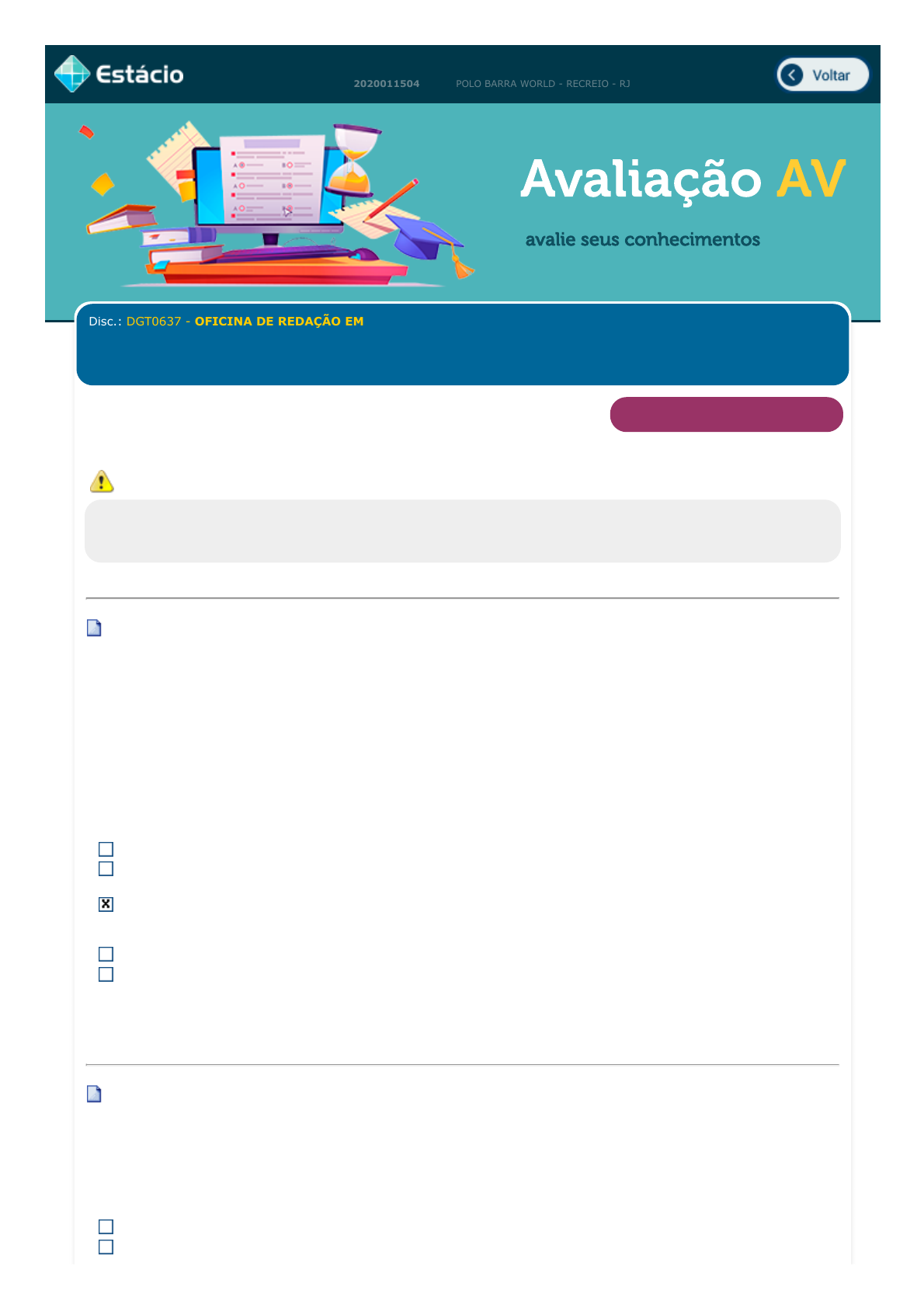 ATENÇÃO: Caso finalize esta avaliação você não poderá mais modificar as suas respostas.