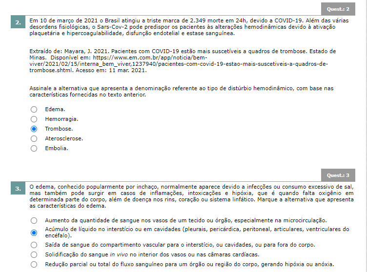 PATOLOGIA - AVA 3º CICLO (Questões 2 e 3) - Valor 0,5 Nota 0,5