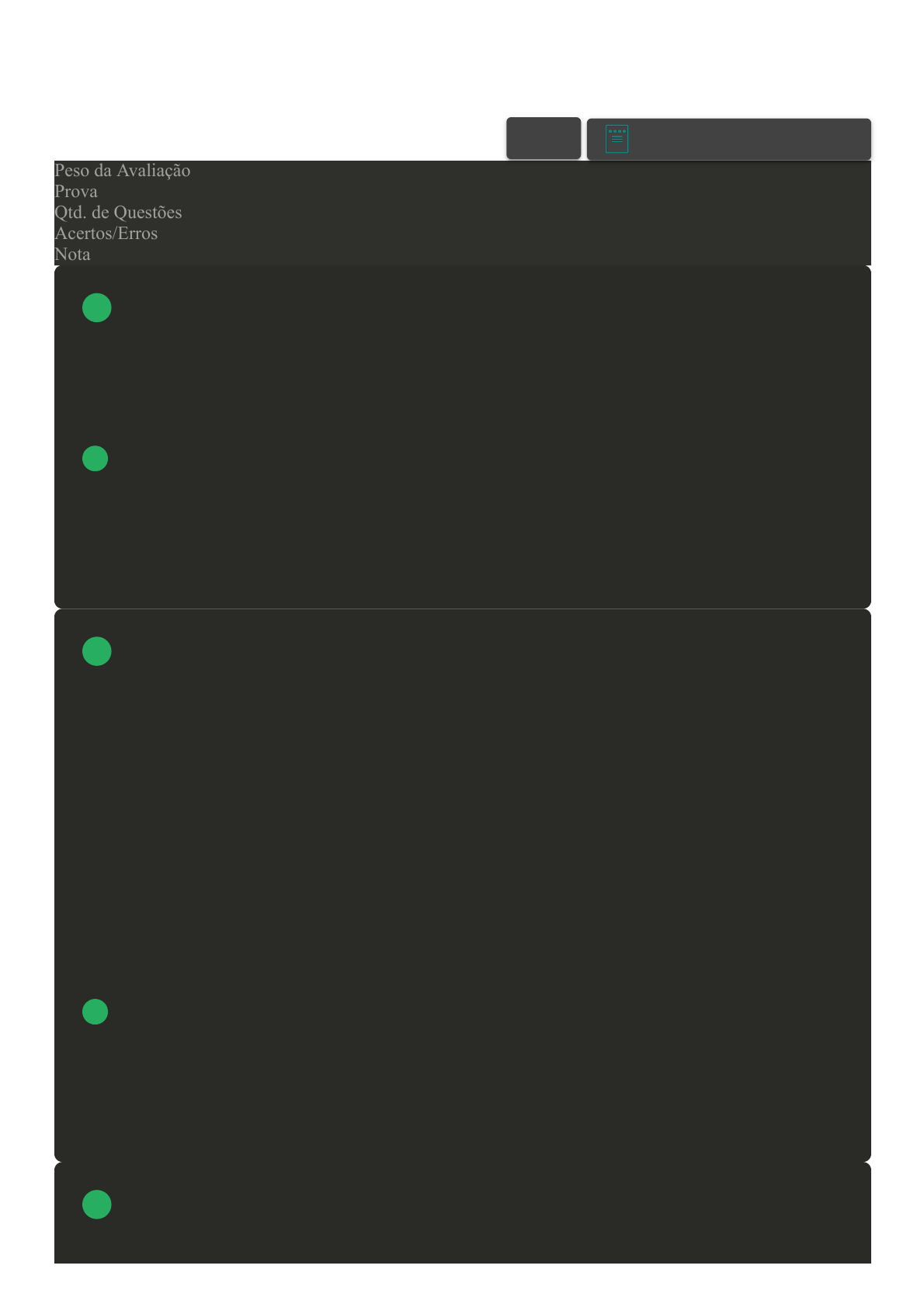 16/11/2022 09:40 Avaliação I - Individual about:blank 1/4 Prova Impressa GABARITO | Avaliação I - Individual (Cod.:767987) Peso da Avaliação 1,50 Prova 57309506 Qtd. de Questões 10 Acertos/Erros 10/0 Nota 10,00 Variável é a característica de interesse que é medida em cada elemento da amostra ou população. Como o próprio nome diz, seus valores variam de elemento para elemento. Sobre a classificação das variáveis, assinale a alternativa CORRETA: A Variáveis demográficas e qualitativas. B Variáveis quantitativas e qualitativas. C Variáveis numéricas e alfanuméricas. D Variáveis numéricas e demográficas. Uma das análises que pode ser feita com os dados coletados partindo de uma população é a distribuição das probabilidades. Essa distribuição é particularmente útil quando os dados apresentam como características compacidade, alisamento e interpolação, por exemplo. Com relação à distribuição de probabilidades, analise as sentenças a seguir: I- Quando os dados assumem valores particulares e finitos, eles são classificados na distribuição discreta. II- A distribuição contínua apresenta dados em sequência que devem ser finitos. III- Quando os resultados de uma tentativa podem ser sucesso ou falha, os dados possuem distribuição binomial. IV- A distribuição normal é percebida quando o gráfico da amostra da população assume a forma de um sino. Agora, assinale a alternativa CORRETA: A As sentenças I, II e IV estão corretas. B As sentenças I, III e IV estão corretas. C As sentenças II, III e IV estão corretas. D As sentenças I, II e III estão corretas. Ao analisar a distribuição dos dados de um estudo, podemos constatar que os dados seguem uma distribuição denominada de normal. Para representar esse tipo de distribuição de dados, existe uma representação gráfica denominada de curva normal. Sobre a distribuição normal e sua curva, VOLTAR A+ Alterar modo de visualização 1 2 3 16/11/2022 09:40 Avaliação I - Individual about:blank 2/4 classifique V para as sentenças verdadeiras e F para as falsas: ( ) A curva normal não pode ter a forma de sino. ( ) Para a curva normal, sua média será sempre 0. ( ) O ponto máximo da curva representa a média. ( ) Uma curva normal deve ser simétrica. Agora, assinale a alternativa que apresenta a sequência CORRETA: A F - V - F - V. B V - F - V - V. C V - V - F - F. D F - V - V - V. As variáveis aleatórias são as características de uma população ou uma amostra, ou seja, são as questões que o instrumento de coleta de dados (questionário) contempla para o levantamento e geração de um dado. Com relação às variáveis aleatórias, analise as sentenças a seguir: I- As variáveis qualitativas têm seus valores (respostas para cada questão do questionário) não numéricos, como sexo, estado civil, nível de escolaridade, bairro, profissão e nível de satisfação. Já as variáveis quantitativas têm seus valores numéricos, tais como: idade, peso, salário, tempo de serviço e número de filhos. II- As variáveis quantitativas são subdivididas em discretas e contínuas. As variáveis quantitativas discretas assumem somente valores numéricos inteiros, como: número de filhos, número de alunos e número de computadores. Já as variáveis quantitativas contínuas podem assumir qualquer valor numérico, resultado de uma medida dentro de um certo intervalo de variação possível, como: peso, idade e salário. III- As variáveis qualitativas são subdivididas em nominais e ordinais. Quando as diferentes categorias (respostas) não têm relação entre si, ou seja, são independentes, classificamos a variável como qualitativa nominal, como sexo, estado civil, curso de graduação e bairro. Por outro lado, quando as categorias têm uma relação entre si, geralmente atribuindo níveis, como o nível de escolaridade e o grau de satisfação do cliente, são denominadas qualitativas ordinais. IV- As variáveis qualitativas são subconjuntos representativos de uma dada população, usada para representar de forma significativa seus valores quantitativos e qualitativos, e ela é expressa pela letra n (minúscula). Assinale a alternativa CORRETA: A As sentenças II, III e IV estão corretas. B As sentenças I, III e IV estão corretas. C As sentenças I, II e III estão corretas. D As sentenças I, II e IV estão corretas. As variáveis aleatórias são as características de uma população ou uma amostra, ou seja, são as questões que o instrumento de coleta de dados (questionários) usa para gerar um dado. 4 5 16/11/2022 09:40 Avaliação I - Individual about:blank 3/4 Com relação à classificação das variáveis aleatórias, assinale a alternativa CORRETA: A Hipótese e quantitativa. B Variáveis e quantidade. C Qualitativas e quantitativas. D Qualidade e valores. Ao planejar um experimento, é necessário também decidir qual método estatístico será utilizado para conduzi-lo, coletar e analisar os dados. Cada metodologia de trabalho possui um método estatístico que melhor explica os resultados, expondo os dados e as informações contidas neles. Com relação aos métodos estatísticos, assinale a alternativa CORRETA: A O método estatístico permite que as variações do experimento sejam controladas e predeterminadas. B O método experimental passa por etapas como observação, hipóteses, experimentação e teoria. C A estatística descritiva está vinculada a análises de dados que tenham uma margem de incerteza. D O método experimental deve ser utilizado quando não é possível controlar os fatores do experimento. Na bioestatística podem ser utilizados fatores climáticos, ou dados de população, com diversos fatores que influenciam de forma direta o resultado final. Sobre as áreas em que a bioestatística pode ser aplicada, assinale a alternativa CORRETA: A Ciências agrárias, Ciências biológicas, Ciências da saúde e Ciências ambientais. B Ciências agr