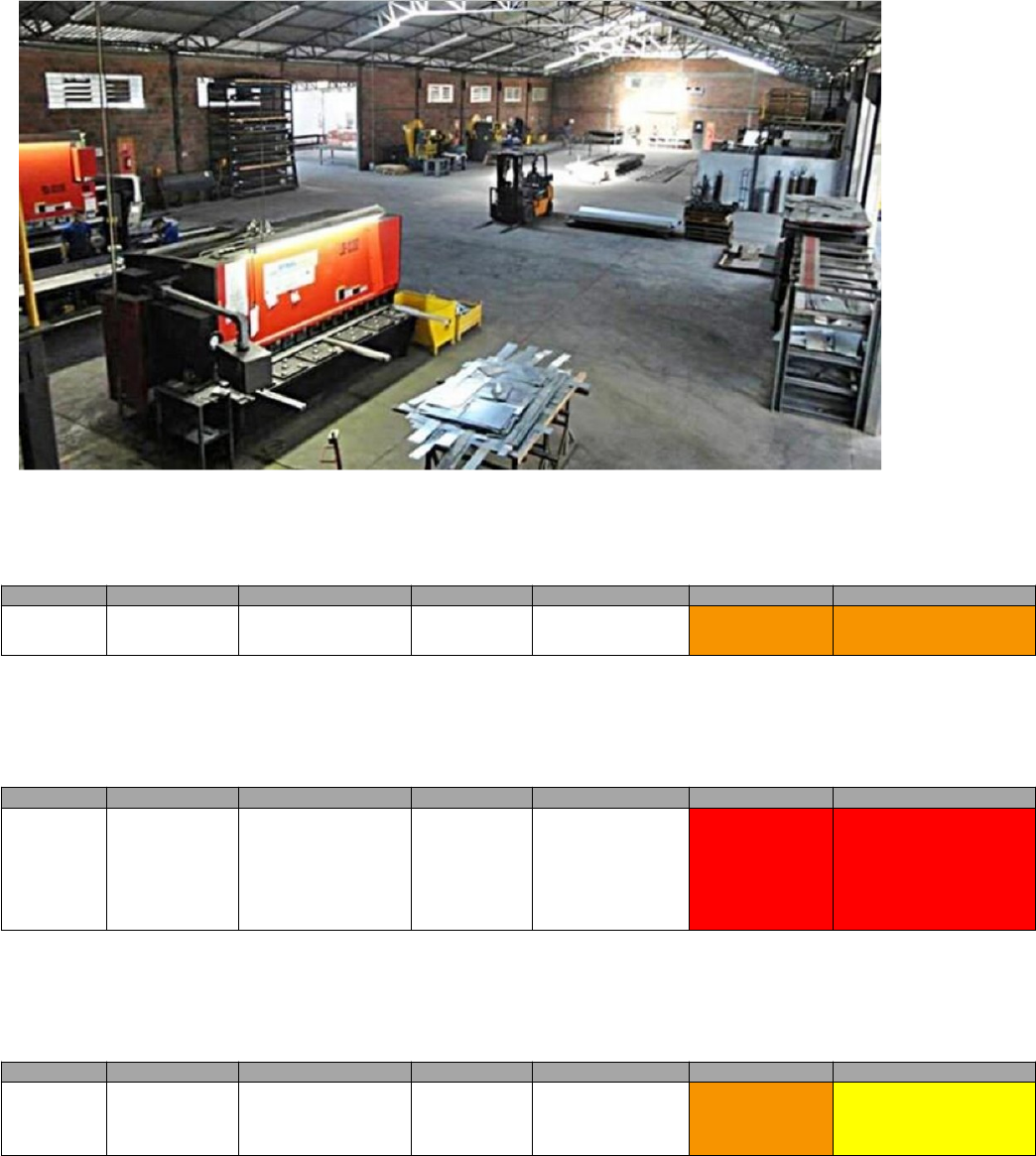 Empresa: Usinagem & Ferramentaria SD LTDA Riscos ocupacionais identificados: SETOR AGENTE CARGOS SEVERIDADE PROBABILIDADE NIVEL DO RISCO CLASSIFICAÇÃO DO RISCO Estoque Batida Contra Operador de empilhadeira Média Altamente Provável 2 - Moderado 3 - Crítica Atividades/Processos: Organização do setor, empilhamento e transporte de materiais diversos em espaços restritos. Perigos: Trauma, luxação, contusão Riscos (possíveis danos à saúde): Trauma, luxação, contusão SETOR AGENTE CARGOS SEVERIDADE PROBABILIDADE NIVEL DO RISCO CLASSIFICAÇÃO DO RISCO Estoque Queda de diferentes níveis Operador de empilhadeira, operador de produção, almoxarife Severo Improvável 4 - Intolerável 4 - Não tolerável Atividades/Processos: Organização da prateleira acima de dois metros de altura, acesso a empilhadeira, contagem e levantamento de materiais estocados. Perigos: Trauma, luxação, contusão, fatalidade Riscos (possíveis danos à saúde): Trauma, luxação, contusão, fatalidade SETOR AGENTE CARGOS SEVERIDADE PROBABILIDADE NIVEL DO RISCO CLASSIFICAÇÃO DO RISCO Usinagem Corte/ dilaceração Operador de CNC e torneiro mecânico Média Improvável 2 - Moderado 2 - De Atenção Atividades/Processos: Posicionamento manual de chapas metálicas no equipamento, marcação e acabamento. Perigos: Cortes , dilaceração, escoriações Riscos (possíveis danos à saúde): Cortes , dilaceração, escoriações SETOR AGENTE CARGOS SEVERIDADE PROBABILIDADE NIVEL DO RISCO CLASSIFICAÇÃO DO RISCO Estoque/ Ferramentaria Postura inadequada Operador de empilhadeira, operador de produção. Leve Improvável 1 - Tolerável 1 - Irrelevante Atividades/Processos: Operação de empilhadeira em pequenos períodos, levantamento de materiais de processo, amarração de ferragens com agachamento e flexão acentuada da região lombar. Perigos: Contusão, luxação. Riscos (possíveis danos à saúde): Desvio de coluna, LER, DORT SETOR AGENTE CARGOS SEVERIDADE PROBABILIDADE NIVEL DO RISCO CLASSIFICAÇÃO DO RISCO Usinagem/ Ferramentaria Prensagem Operador de CNC, torneiro mecânico, operador de produção, auxiliar de serviços gerais Média Altamente provável 3 - Substancial 3 - Crítica Atividades/Processos: Movimentação manual de peças, posicionamento e remoção de peças do centro de usinagem, fresa, torno. Perigos: Prensamento de membros superiores. Riscos (possíveis danos à saúde): Perca de movimentos de mãos e dedos. SETOR AGENTE CARGOS SEVERIDADE PROBABILIDADE NIVEL DO RISCO CLASSIFICAÇÃO DO RISCO Usinagem/ Ferramentaria Atropelamento Operadores, Gestão, Manutenção, Auxiliar de serviços gerais, Almoxarife, Zelador. Severo Altamente provável 4 - Intolerável 4 - Não tolerável Atividades/Processos: Movimentação de veículo industrial “empilhadeira” realizando transporte de carga com campo de visão reduzido em área de movimentação de pedestres e com diversos pontos cegos mapeados. Perigos: Atropelamento. Riscos (possíveis danos à saúde): Esmagamento, amputação, fatalidade.