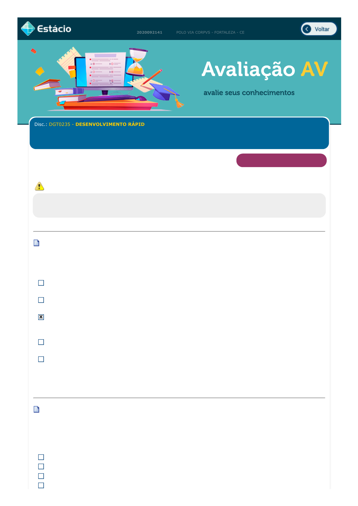 2. Caso você queira voltar à prova clique no botão "Retornar à Avaliação".