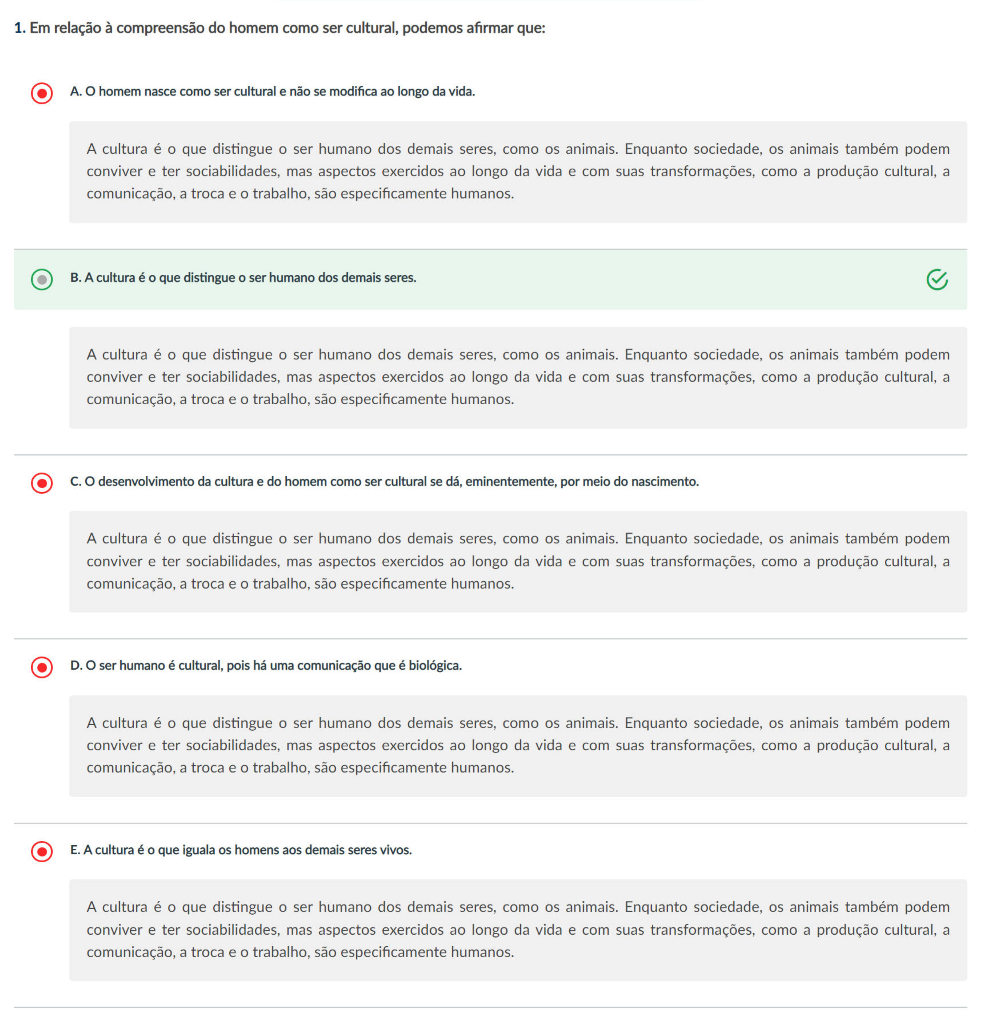 1. Em relação à compreensão do homem como ser cultural, podemos afirmar que: