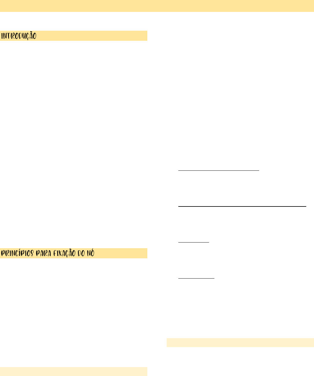 Anestesia e tec. Cirúrgicas Nós e suturas ➢ Extrema importância para a recuperação dos tecidos; ➢ Seguindo as técnicas e escolhendo os materiais corretos dificilmente ocorrerá problemas; ➢ Sempre pensar na perfeita coaptação das camadas; ➢ Para ter sucesso no procedimento deve-se ter: → Cuidados com a assepsia e antissepsia; → Hemostasia cuidadosa; → Eliminação dos espaços mortos; → Regularidade nas bordas das feridas; → Limpeza da ferida (se suja e/ou com tecidos necrosados); → Reposição anatômica dos tecidos → Evitar tensão na sutura ou usar suturas próprias para regiões tensas; → Evitar o excesso de fios e nós na sutura; → Levar em conta a idade, estado nutricional, espécie, raça, temperamento etc. ➢ Resultado depende da combinação entre: Padrão de sutura, tipo de fio, tamanho (espessura) do fio e tipo de nó; ➢ Deve-se usar o menor fio e nó que não prejudique a tensão da ferida; ➢ O tamanho das pontas deixadas depende da segurança do nó; ➢ Em qualquer que seja o tipo de sutura, o padrão de nó é sempre o mesmo (máximo de segurança no nó): ↳Um nó inicial duplo ou triplo e depois, mais 3 nós simples (total de 5 - 6 laçadas); ↳Laçadas a mais geram maior irritação tecidual e atrapalham a cicatrização. Técnicas de atar o Nó ➢ Nó fica atado pelo atrito entre as duas extremidades; ➢ Meia laçada simples torna o nó pouco seguro; ➢ São necessárias pelo menos 2 laçadas completas para conseguir o mínimo de atrito ➢ Materiais de sutura monofilamentares (náilon, polipropileno, etc) geram pouco atrito ↳Cuidado, a 1° laçada pode afrouxar antes de fazer a segunda de reforço; ↳O nó deve correr no sentido correto, sem estar torcido. ➢ Feito geralmente com porta-agulhas (sempre em paralelo a ferida e os movimentos em sentidos perpendiculares a ferida); ➢ Pode ser feito com as mãos (técnicas variadas – Ex.:Técnica de Pauchet – passada elegante ou técnica do sapateiro); ↳Maior consumo de fio (menos econômico) ➢ Nó simples duplo (nó quadrado) → Muito utilizado, porém afrouxa facilmente pela falta de atrito (usado em tecidos sem tensão); → Duas laçadas simples, uma por cima da outra ➢ Nó de cirurgião (mais atrito – tecido com tensão) → Uma laçada DUPLA inicial (CONTENÇÃO) depois uma simples (FIXAÇÃO); → Depois mais uma simples (REFORÇO) ➢ Nó de Miller → Maior atrito entre o fio e o tecido; → Duas voltas no tecido antes das laçadas; → Recomendado em pedículos ➢ Nó de Roeder → Locais difíceis de atar o nó (profundidade de abdome ou laparoscopia); → Nó corrediço com maior atrito para não soltar; → O nó é feito longe do local da laçada, depois colocado no local e empurrado para fechar a laçada. Ligaduras ➢ É uma alça de sutura usada para ocluir um vaso sanguíneo antes ou após ele ter sido incisado; ➢ Usado geralmente dentro da cavidade abdominal; ➢ Sempre se deve deixar o mínimo de tecido a ser ligado!!(de preferência somente o vaso) ➢ Pode ser – Simples, transfixante ou transfixante modificado ➢ Técnica das 3 pinças → Pinças colocadas em sequência → O pedículo será separado entre as duas primeiras pinças → Ligadura feita abaixo da terceira pinça → Abrir a terceira pinça para terminar a ligadura e fechá-la novamente → Incisar entre as duas primeiras e retirar as pinças proximais devagar ➢ Amplas variedades de tipos (padrões) de suturas para diferentes circunstâncias; ➢ Podem ser classificadas quanto a forma que justapõem o tecido: → Interrompidas/descontínuas: ↳Uma sutura e um nó, são mais seguras, mais lento, veda menos, melhor cicatrização (evita isquemia); ↳Tem como vantagem a drenagem de líquidos entre os pontos e a segurança ao se soltar alguns pontos, ↳Desvantagem é o maior consumo de material para sutura e a o tempo gasto. ↳Interrompida simples – Fácil, rápida, mais utilizada em pele, coaptante (justaposição); ↳Wolff - Usadas em áreas de tensão, evaginante (eversão) - esteticamente não é boa, aplicando a técnica correta ela pode se justapor, cicatrizãção mais lenta (atrapalha a vascularização). Usada em pele, hérnias, apodeurose, feridas extensas. Lembert - invaginante e não perfurante total (não atravessa o tecido até a luz do órgão), sutura clássica para cirurgias gastrointestinais, útero e rumem. Desvantagem é o nível de inversão que pode diminuir o diâmetro da luz ↳Sultan (em “X”) - Utilizada na linha média da parede abdominal, fechamento de pequenos orifícios, menor tempo de execução comparada com o simples interrompido. Utilizada em tecido sob tensão (coaptante – justaposição ↳Donatti - Usadas em áreas de tensão, evaginante, mais forte que a Wolff e permite mais circulação sanguínea. Usada em pele, hérnias, feridas extensas em membros de equinos ↳Swift- Justaposição (coaptante), nó para dentro da luz do órgão, utilizada em esôfago cervical – próximo ao nervo vago evitando a estimulação pela sutura. Menos aderência dos pontos e mantém o peristaltismo ↳Sobreposição de Mayo (jaquetão) - Sobrepõe as bordas das feridas, muito utilizado em hérnias, resistente a tensão; ↳Gambee - Utilizado em cirurgias intestinais para reduzir a eversão das mucosas. Justaposição ↳Sutura “em roldana” - Para altas tensões, suturas de relaxamento, comumente usada como sutura de linha alba em equinos → Contínuas: ↳Faço uma sequência de sutura, inicia com um no, faz uma sequência e um no. Mais rápidas, menos material, veda melhor (órgãos ocos), podem causar mais isquemia da borda. ↳Problema do contínuo no órgão oco: anastomose intestinal faz sutura interrompido ↳Podem ser classificadas quanto a coaptação das bordas em coaptantes (justaposição), invaginantes (inversão), evaginates (eversão), de sobreposição ↳Contínua Simples (Kurshner) - Ponto de justaposição, simples exec