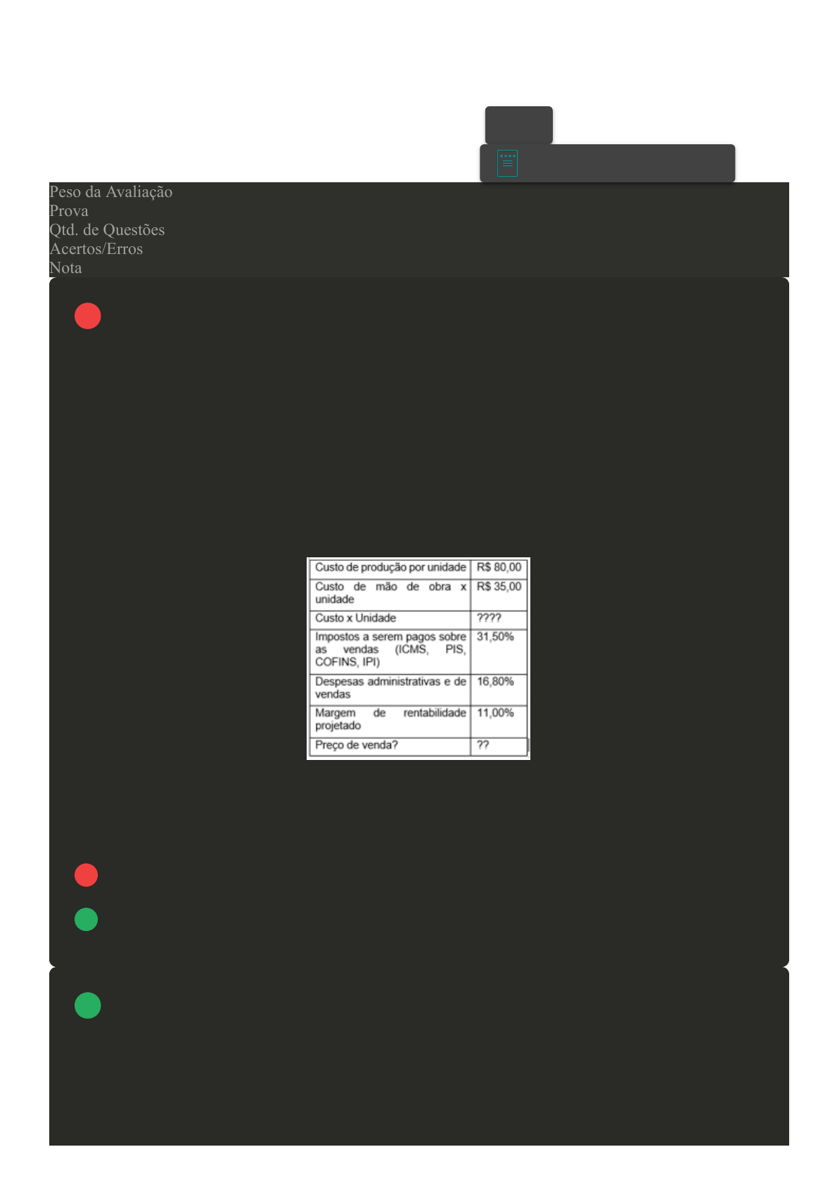 20/11/2022 19:31 Avaliação Final (Objetiva) - Individual about:blank 1/6 Prova Impressa GABARITO | Avaliação Final (Objetiva) - Individual (Cod.:770190) Peso da Avaliação 3,00 Prova 56628647 Qtd. de Questões 12 Acertos/Erros 8/4 Nota 8,00 Uma empresa está na fase de iniciar o lançamento de um novo produto. Logo depois de fazer vários testes e análises, tanto de marketing como de custos, esse novo produto apresenta os seguintes valores referentes a seus custos, despesas, impostos e margem de lucro desejado. Baseado nesse quadro, faça o cálculo do custo x unidade, o mark-up e o preço de venda, e analise as sentenças a seguir: I- Preço de venda é de R$ 282,56. II- Preço de venda é de R$ 193,93. III- Mark-up é de 40,70%. IV- Mark-up é de 59.30%. V- Mark-up é de 1,5930 sobre o custo. VI- Preço de venda de R$ 183,20. Assinale a alternativa CORRETA: A As sentenças I e V estão corretas. B As sentenças IV e VI estão corretas. C As sentenças II e III estão corretas. D As sentenças I e IV estão corretas. Apesar de a DRE projetada ser um referente de geração de rentabilidade, ainda não é determinante para definir o real potencial financeiro de um empreendimento. Esses valores de rentabilidade operacional, da DRE, não levam em consideração a real geração de caixa e o valor do dinheiro no tempo. Assim, a DRE deve ser analisada em conjunto com o fluxo de caixa projetado. Nesse fluxo são considerados vários elementos: as saídas e entradas de caixa, o investimento e as entradas e saídas operacionais conforme seu impacto direto na caixa projetada. Diante do exposto, classifique V para as sentenças verdadeiras e F para as falsas: VOLTAR A+ Alterar modo de visualização 1 2 20/11/2022 19:31 Avaliação Final (Objetiva) - Individual about:blank 2/6 ( ) O investimento representa a grande entrada de caixa, pois deste dependerá a capacidade de ter infraestrutura e capital para a geração de caixa. ( ) Para poder executar todos os processos operativos do projeto, é necessário fazer investimentos, representados como saídas de caixa especialmente ao início do projeto. ( ) No fluxo de caixa, as vendas são registradas conforme as contas a receber são liquidadas e vão entrando na caixa projetada. ( ) No fluxo de caixa, os pagamentos aos fornecedores, saída de caixa, vão se registrando conforme acontece a entrada dos materiais. Agora, assinale a alternativa que apresenta a sequência CORRETA: A F - F - V - V. B V - V - F - F. C V - F - V - F. D F - V - V - F. Terminado o orçamento do projeto, sua necessidade de capital de giro inicial, o planejamento de vendas e de produção, bem como os custos envolvidos, podemos dizer que temos todos os elementos para uma análise financeira. Qual o primeiro passo dessa análise de rentabilidade e viabilidade financeira de um projeto? A Uma vez feito o fluxo de todas as entradas e saídas monetárias, considerando os anos do projeto, o gestor tem os elementos para iniciar o DRE. B Antes de fazer a análise de fluxo de caixa e análise de viabilidade financeira do retorno de capital, é necessário fazer a DRE dos anos de vida do projeto. C Com a projeção do fluxo de caixa, o gestor pode analisar as contas a cobrar e a pagar e os principais índices de rentabilidade, assim como análise da DRE respectiva. D Para fins de conhecer o valor de imposto da renda projetado, é necessário apurar a necessidade de fluxo de caixa, e depois disso podemos apurar a DRE. A gestão de risco, embora importante muitas vezes, não é levada em consideração na análise de projetos, os gestores tendem a esquecer os riscos implícitos na análise de corridas financeiras do cenário ideal de um projeto. Devemos nos lembrar de que a execução de um projeto está no futuro, e coisas fora do padrão esperado podem acontecer nos pressupostos considerados nos cenários. Diante disso, os gestores devem observar uma série de itens ou variáveis, que poderiam mudar as projeções de um projeto. Assinale a alternativa CORRETA: A Considerar o pior cenário possível como base ideal das projeções. Assim, se essa projeção gera rentabilidade e retorno, o projeto poderá ser aceito, tal como levar em consideração, vendas projetadas conforme os mínimos históricos da categoria. B Uma medida paliativa que elimina 100% o risco de queda e cobrança de vendas projetadas é fazer contratos de vendas futuras com apólice de seguro. Apesar do custo, esses tipos de contratos garantem o fluxo de caixa. C Para minimizar variações drásticas das projeções, uma medida paliativa é a contratação de uma apólice de seguro sobre possíveis riscos, tal como um seguro de capital de giro. Desenvolver cenários negativos considerando queda de vendas e aumento de custos Depois 3 4 20/11/2022 19:31 Avaliação Final (Objetiva) - Individual about:blank 3/6 D Desenvolver cenários negativos considerando queda de vendas e aumento de custos. Depois disso, fazer contrato de risco contra cenários negativos, tal como uma apólice contra queda de volumes menores de vendas. A constante busca de produzir maiores volumes, e mais eficientemente, levanta toda uma necessidade de inovações e de melhoras de processos para ofertar produtos e serviços cada vez mais elaborados, detalhados e específicos. Esta procura pela produtividade e aprimoramento contínuo tem alguns objetivos. Sobre o exposto, assinale a alternativa INCORRETA: A Reduzir a quantidade de trabalho necessário, melhorando o índice hora/homem, ou seja, aprimoramento do recurso humano. B Uma menor quantidade de matéria-prima, aprimoramento das quantidades de insumos para produzir uma unidade de produto ou serviço. C Uma expansão do horizonte produtivo de bens e serviços, melhorando a competitividade produtiva como um todo, maiores quantidades de produtos por unidade de recurso disponível e, portanto, uma melhor qualidade de vida à sociedade. D Aumentar a quantidade de trabalho necessário, melhorando o í