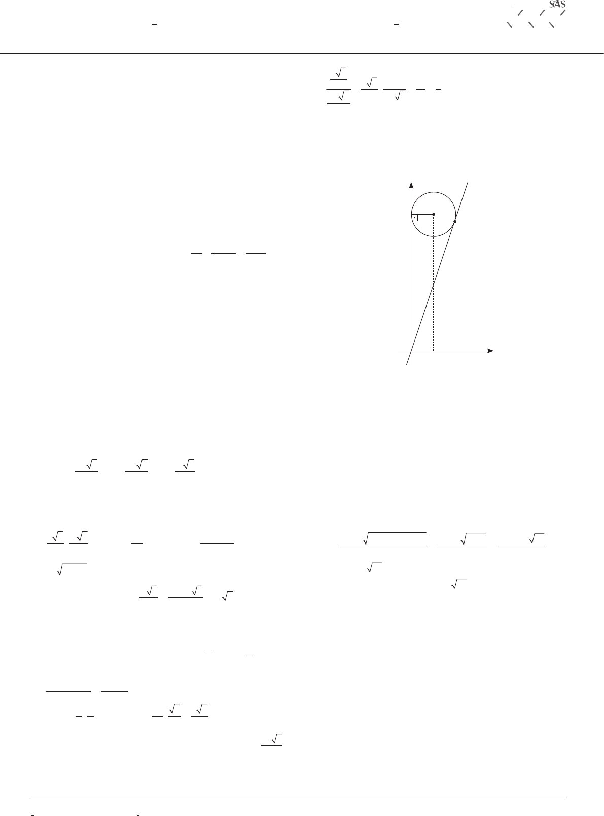 1o SIMULADO SAS FUVEST 2022 – 1a FASE F V S U E T 1o Simulado 2022 1o Simulado SAS Fuvest 2022 – 1a Fase 1 01. Considere x a quantidade de peças produzidas, C(x) a função custo, R(x) a função receita e L(x) a fun‑ ção lucro. Como o custo corresponde a um valor fixo de R$ 200,00 acrescido de R$ 60,00 por peça produzida, então C(x) = 60x + 200. Da mesma forma, como a re‑ ceita corresponde ao produto do dobro da quant i ‑ dade de peças produzidas pela diferença entre 150 e essa quantidade, então R(x) = 2x ∙ (150 – x) = 300x – 2x2. Assim, como o lucro é dado pela diferença entre a receita e o custo, tem‑se: L(x) = R(x) – C(x) L(x) = 300x – 2x2 – (60x + 200) L(x) = −2x2 + 240x – 200 Como essa função é quadrática, conclui‑se que, para se obter lucro máximo, devem ser vendidas � � � � � � � � � b a2 240 2 2 240 4 60 ( ) peças artesanais. Assim, constata‑se que o lucro máximo é: L(60) = −2 ∙ 602 + 240 ∙ 60 – 200 L(60) = −7 200 + 14 400 – 200 L(60) = 7 000 Portanto, o lucro máximo mensal obtido pela coopera‑ tiva com a venda das peças artesanais corresponde a R$ 7 000,00. Resposta correta: B 02. Considere l e h, respectivamente, as medidas, em decíme‑ tro, dos lados da base e da altura do prisma que dá forma ao reservatório. Assim, como a superfície lateral desse pris‑ ma é formada por três retângulos de lados l e h e a base é um triângulo equilátero de lado l, pela condição dada no texto‑base, tem‑se: 3 5 3 4 5 3 12 5 3 12 2 2 � � � � � � �l h l h l l h l Como o volume de um prisma é igual à área da base mul‑ tiplicada pela altura e 1 litro equivale a 1 decímetro cúbico, obtém‑se: l l l l 2 3 33 4 5 3 12 4320 5 16 4320 16 4320 5 � � � � � � � � l l dm� � �13824 243 Assim, encontra‑se h l dm� � � � � 5 3 12 5 24 3 12 10 3 . Resposta correta: B 03. Considere l a medida do lado do hexágono regular ABCDEF. Pelo texto, sabe‑se que o segmento PB mede 2 3 l . Assim, como cada ângulo interno de um hexágono regular mede ( )6 2 180 6 4 180 6 120 � � � � � � � �, a área do triângulo PBC é: A l l sen l l PBC � � � � � � � � 1 2 2 3 120 2 6 3 2 3 6 2 2 ( ) Como a área de um hexágono regular mede 3 3 2 2l , conclui‑se que a razão entre as áreas dos polígonos PBC e ABCDEF vale: l l l l 2 2 2 2 3 6 3 3 2 3 6 2 3 3 2 18 1 9 � � � � Resposta correta: D 04. Considere r o raio da circunferência C e P(a, b) o centro dela. Como a circunferência é tangente ao eixo Oy no ponto de ordenada 6, conclui‑se que a = r e b = 6, conforme mostra o gráfico a seguir. P(r, 6) y y = 3x 6 O r x r Aplicando esses valores na equação geral da circunferência, tem‑se (x − r)2 + (y − 6)2 = r2. Logo, desenvolvendo os pro‑ dutos notáveis, obtém‑se x2 – 2rx + y2 – 12y + 36 = 0. Como a circunferência é tangente à reta y = 3x, então existe um único ponto Q(x, 3x) tal que: x2 – 2rx + 9x2 – 36x + 36 = 0 5x2 – (r + 18) ⋅ x + 18 = 0 Como essa equação deve ter apenas uma solução, conclui‑se que o discriminante vale zero, ou seja: ∆ = (r + 18)2 – 4 ∙ 5 ∙ 18 ∆ = r2 + 36r – 36 = 0 Dessa forma, calculando as raízes da equação obtida, encontra‑se: r � � � � � � � � � � � � � � � 36 36 4 1 36 2 1 36 1440 2 36 12 10 2 2 ( ) r � � �18 6 10 Como r é positivo, tem‑se r uc� �6 10 18 . . Resposta correta: A 05. Considere que os times 1, 2, 3 e 4 formam a primeira chave e que os times 5, 6, 7 e 8 formam a segunda. Na primeira chave, um time brasileiro já está na semifinal, pois os times 1 e 2 são brasileiros e se enfrentam. Assim, a probabilidade de haver um time brasileiro na primeira chave é de 50%, já que seu adversário na semifinal não é brasileiro. Para que haja um brasileiro na final pela outra chave, deve haver ou o time 5 ou o time 7 na final. A probabilidade de o time 5 ir à final é de 0,5 ∙ 0,5 = 0,25 = 25%, já que ele tem dois con‑ frontos. Essa é a mesma probabilidade de o time 7 ir à final. Dessa forma, a probabilidade de haver um time brasileiro na final pelo segundo chaveamento é de 25% + 25% = 50%. Portanto, para haver dois times brasileiros na final, é neces‑ sário que haja finalistas brasileiros na primeira e na segunda chaves, o que significa uma probabilidade de 0,5 ∙ 0,5 = 25%. Resposta correta: D RESOLUÇÃO – SIMULADO SAS FUVEST F V S U E T 1o Simulado 2022 1o Simulado SAS Fuvest 2022 – 1a Fase 2 06. Inicialmente, deve‑se descobrir o valor do ângulo CÔB. Para isso, deve‑se notar que, ao prolongar o segmento OB até um ponto D de modo que OD tenha medida igual ao raio da circunferência, B será o ponto médio de OD. Dessa forma, pelo caso de congruência de triângulos L.A.L. (lado – ângulo – lado), os triângulos OBC e DBC são congruentes. Logo, o triângulo ODC é equilátero. Com isso, CÔB = 60° e AÔC = 180° – 60° = 120°. Dessa forma, a altura do triângu‑ lo ODC será igual a BC r cm= = = 3 2 2 3 2 3 . Além disso, a medida do arco AC será 120 2 360 2 2 3 4 3 � � � � � � � � � �r cm. Por fim, como o segmento AO mede 2 cm, por ser o raio dessa cir‑ cunferência, e o segmento OB mede 1 cm, pois corresponde à metade do raio, constata‑se que o comprimento do contorno da figura mede 4 3 2 1 3 4 3 3 3 � � � � � � � � cm. Resposta correta: E 07. Para saber a quantidade de códigos com pelo menos uma vogal e um número, deve‑se calcular a quantidade total de códigos gerados e subtrair do resultado obtido as quanti‑ dades de códigos formados apenas por vogais e formados apenas por números. A quantidade total de códigos é de 104 = 10 000, pois há 10 opções de caracteres para cada um dos quatro dígitos, sendo cinco vogais e cinco números. As quantidades de códigos formados apenas por vogais ou apenas por números são igu