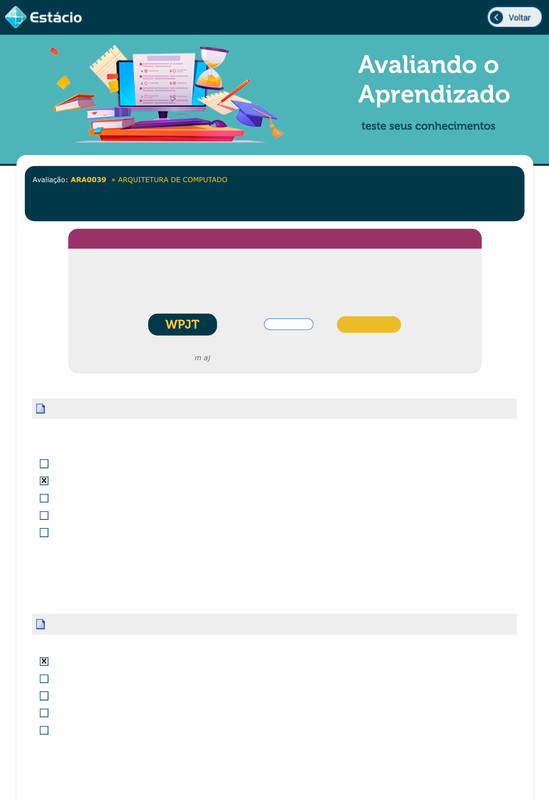 Avaliação: ARA0039 » ARQUITETURA DE COMPUTADORES