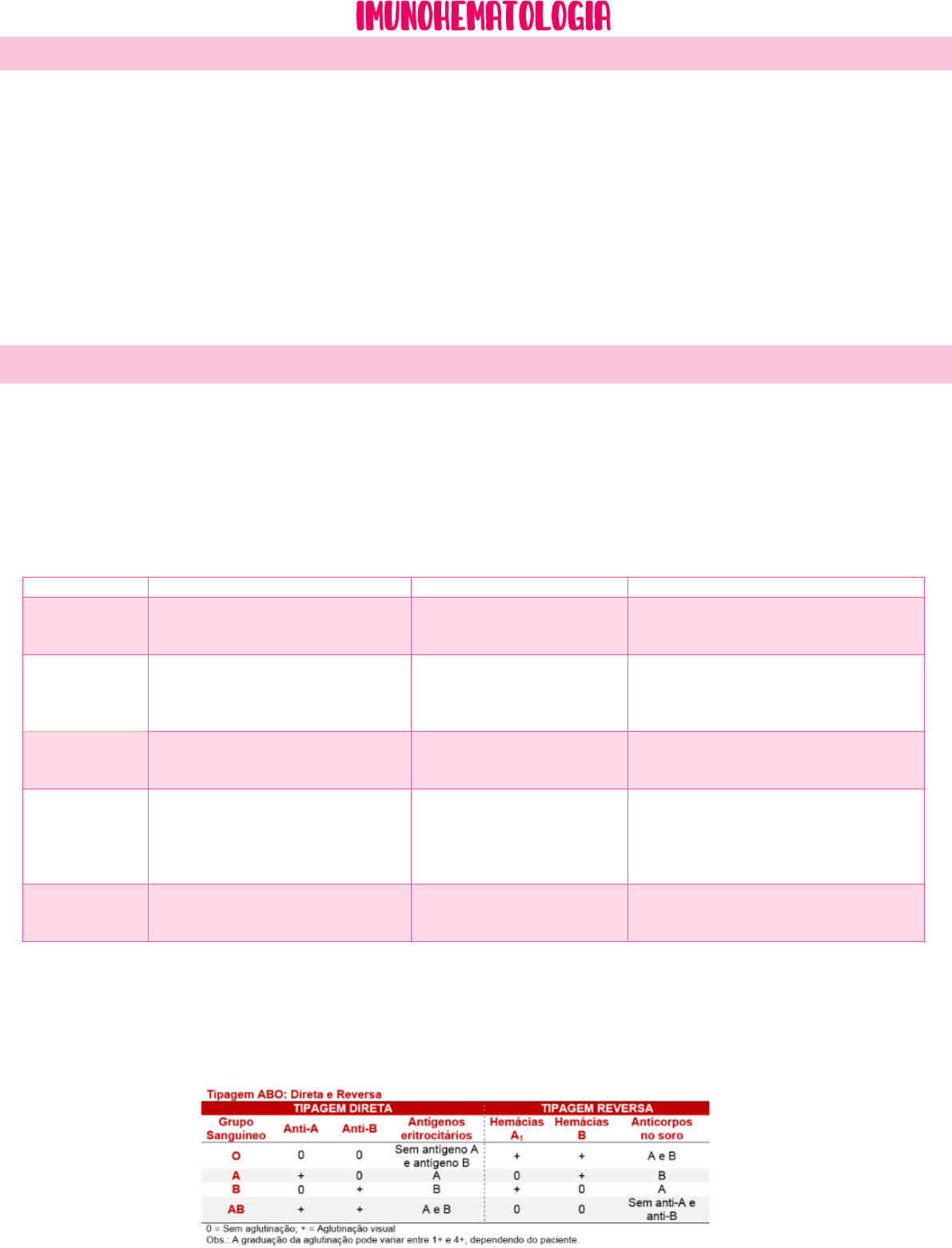 Banco de sangue – Laís Nunes [6º semestre] o A imunohematologia estuda os antígenos presentes nos eritrócitos e as interações entre estes e seus respectivos anticorpos; • Essencial na busca de sangue compatível para pacientes – relacionada à hemoterapia ou medicina transfusional; o As hemácias humanas apresentam em sua superfície numerosos antígenos próprios, não ligados ao sistema HLA; o Em determinadas condições, como em pacientes submetidos a transfusões e mulheres grávidas previamente sensibilizadas a algum desses antígenos, sua manifestação clínica pode se dar, respectivamente, através de reações transfusionais e da Doença Hemolítica do Recém- Nascido (DHRN) por incompatibilidade sanguínea; • Podendo também estar ligados a anemias hemolíticas autoimunes; o Na rotina dos bancos de sangue os testes imuno-hematológicos realizados são: • Tipagem ABO (direta e reversa); • Tipagem Rh (D); • Teste de antiglobulina humana (Teste de Coombs indireto); • Pesquisa de anticorpos irregulares (PAI); • Identificação de anticorpos irregulares (IAI). o A formação do antígeno ABH resulta da interação de três loci separados: ABO, H e Se. o Os genes: • FUT1 → H → codifica a substancia H; produz a a-2-L-fucosiltransferase (especifica para substancia percursora tipo2), transferindo a L-fucose (açúcar) para o oligossacarídeo, que ao se ligar forma a substancia H; • FUT2 → SE → produz a a-2-L-fucosiltransferase (especifica para substancia percursora tipo1), necessárias para ´produção de ABO secretor, fazendo com que as outras células apresentem os antígenos ABO nas secreções; • ABO → produz as glicosiltransferases especificas responsáveis pela formação de antígenos A,B e O. o As glicosiltransferases e açúcares imunológicos responsáveis pela especificidade dos antígenos H, A e B: Gene Glicosiltransferase Açúcar dominante Formação O a-2-fucosiltranferase L-fucose A cadeia percursora H produz a L- fusosiltransferase, onde a L-fucose se liga na porção galactose terminal. A a-3-N-acetilgalactosaminiltransferase N-acetilD-galactosamina A cadeia percursora H produz a N- acetilgalactosaminiltransferase, onde a N- acetilgalactosamina se liga na porção galactose terminal. B a-3-N- galactosiltrasnferase D-galactose A cadeia percursora H produz a D- galactosiltransferase, onde a D-galactose se liga na porção galactose terminal. AB a-3-N-acetilgalactosaminiltransferase e a-3-N- galactosiltrasnferase N-acetilgalactosamina e D- galactose A cadeia percursora H produz a N- acetilgalactosaminiltransferase e a D- galactosiltransferase, ocorrendo a ligação dos açúcares N-acetilgalactosamina e D- galactose na porção galactose terminal. Oh – Bombaim Não tem o H, dessa forma, não possui a fucosiltransferase ativa. Não transfere a fucose para galactose terminal, pela ausência do açúcar. A cadeia percursora do tipo 2 apresenta-se em alteração o Tipagem ABO → a definição do grupo sanguíneo de um individuo se dá por duas provas: • Prova direta (tipagem direta) → pesquisa de antígenos fixados nas hemácias do doador, devendo ser feitas com antissoros comerciais: anti-A, anati-B e anti-A, B; • Prova reversa (tipagem reversa) → pesquisa de anticorpo no soro do doador, devendo ser feita com hemácias comerciais de fenotipagem A1 e B, com atenção para o fato de que o anticorpo B costuma ser mais fraco que os demais anticorpos. A prova reversa é uma contra-prova fundamental para a conclusão do exame. Visão geral Tipagem ABO Banco de sangue – Laís Nunes [6º semestre] o Prova direta → tipagem em tubo 1. Rotular três tubos de ensaio: “A”, “B” e “AB”; 2. Nos tubos adequadamente rotulados, colocar uma gota (~50 μL) dos soros anti-A, anti-B e anti-AB, respectivamente; 3. A cada tubo acrescentar uma gota de suspensão de hemácias da amostra (~50 μL), sendo essa suspensão a 5% em soro fisiológico; 4. Agitar os tubos e centrifugar adequadamente (1.000 rpm durante um min ou 3.400 rpm durante 15 seg); 5. Fazer a leitura da aglutinação contra um fundo iluminado, ressuspendendo gentilmente o botão de aglutinação. o Prova reversa → tipagem em tubo 1. Rotular dois tubos de ensaio com “A” e “B”; 2. Colocar duas gotas de plasma da amostra (~100 μL) a testar em cada tubo; 3. Adicionar ao tubo “A” uma gota de hemácias A1 (3 a 5%) e, ao tubo “B”, uma gota de hemácias B (3 a 5%); 4. Agitar os tubos e centrifugar adequadamente (1.000 rpm durante 1 min ou 3.400 rpm durante 15 seg); 5. Fazer a leitura da aglutinação contra um fundo iluminado, ressuspendendo gentilmente o botão. Em reações positivas leva a formação de imunocomplexos, impedindo a sedimentação das hemácias no fundo do tubo, dessa forma, é possível observar uma camada sobrenadante na superfície ou próximo a mediação do tubo. Reagente anti-A Reagente anti-B Anticorpo monoclonal Anticorpo monoclonal Tipagem Direta Altamente específico IgM Altamente específico IgM Reagente com coloração azul claro Reagente com coloração amarelo claro Reação esperada 3+ a 4+ Reação esperada 3+ a 4+ Geralmente usa 1 a 2 gotas Geralmente usa 1 a 2 gotas o Soroclone® Anti-A, Anti-B e Anti-A,B da Fresenius Kabi → reagentes monoclonal utilizado para a classificação ABO; o Revercel® A1 e A2 (esquerda) Revercel Plus A1, A2 e B (direita) da Fresenius Kabi → reagentes de hemácias para classificação reversa ABO; o Lectina Anti-A1 (Dolichos biflorus) e Lectina Anti-H (Ulex europaeus) da Fresenius Kabi → reagentes utilizados para classificação ABO. Características gerais dos reagentes utilizados na tipagem ABO Como as fenotipagens ABO são realizadas Reagentes utilizados na tipagem ABO Interpretação da tipagem pelo método de gel centrifugação O número de cruzes corresponde à intensidade da aglutinação variando de: • 1+ até 4+ (mais forte) → aglutinação positiva; • 0 → corresponde à ag