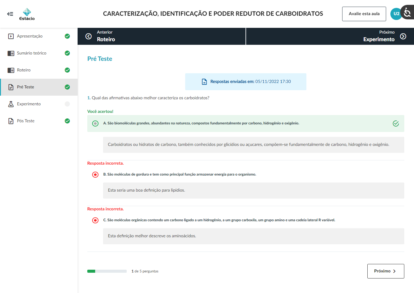 a 8. [Laboratório Virtual - Caracterização, Identificação e Poder Redutor de Carboidratos] - Carboidratos são compostos químicos orgânicos presente...