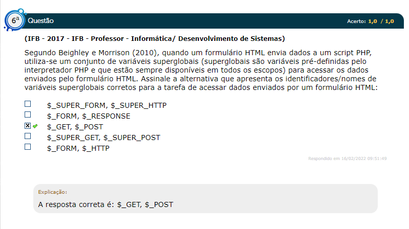 aladeavaliacoes.com.br x + wyden.saladeavaliacoes.com.br/prova/6724169f286b57435477f101/ SM2 Desenv. Web Em Html5, Css, Javascript e Php 9 Marcar p...