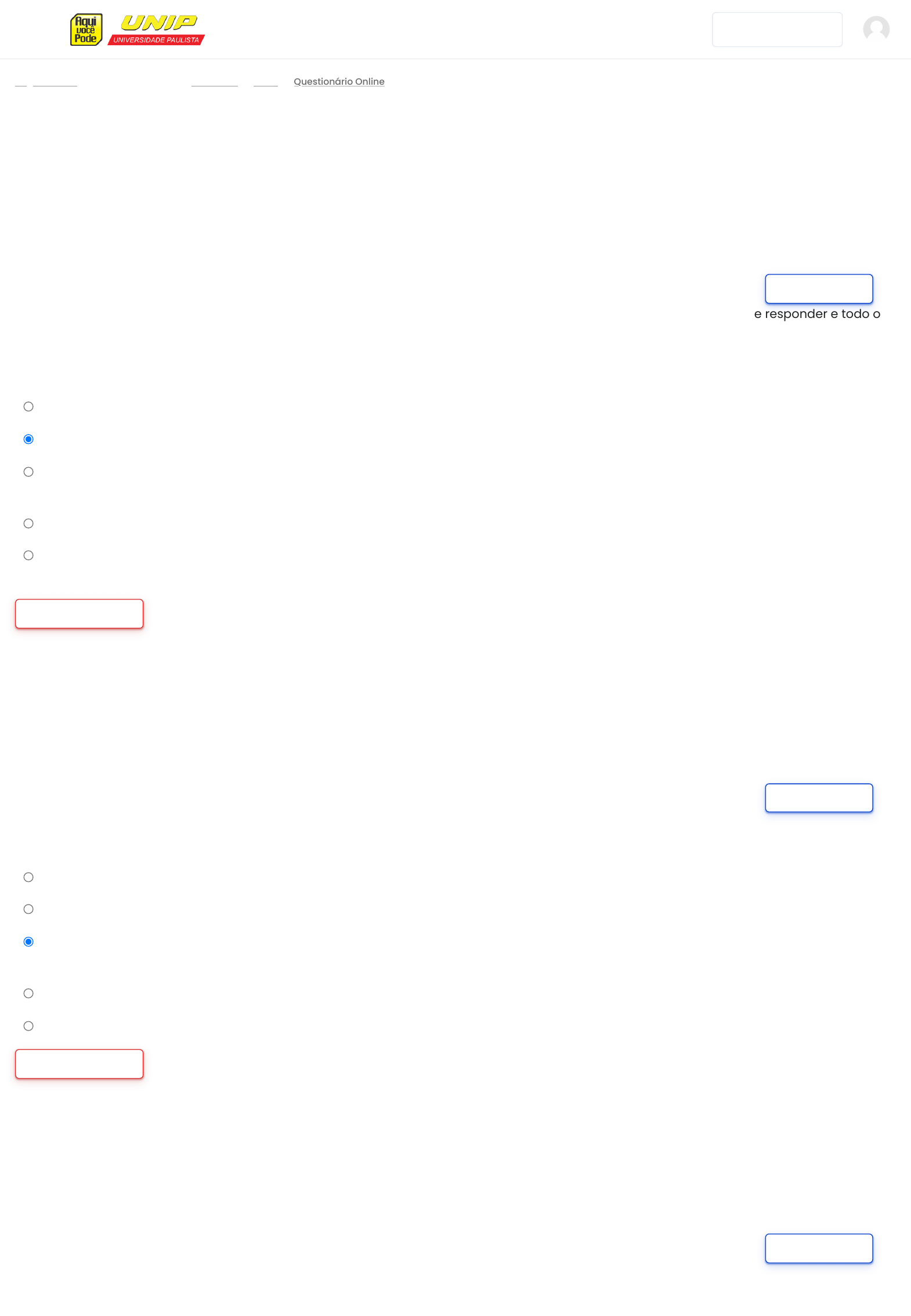 - Minhas disciplinas - - - Bibliotecas Virtuais Página inicial S6-B0464 Geral Questionário Online (IF/BA 2016, com modificações) No campo da investigação científica, o problema é uma questão que a pesquisa pretende responder e todo o processo de pesquisa irá girar em torno de sua solução. Para tanto, são necessários alguns cuidados na sua elaboração. Assinale a alternativa que não está associada à necessária qualidade da problematização. Escolha uma opção: a. O problema precisa ser inédito. b. O problema é uma afirmativa que precisa ser confirmada ou negada. c. O problema tem que ter dimensão viável: deve ser restrito para permitir a sua viabilidade. O problema formulado de forma ampla poderá tornar inviável a realização da pesquisa. d. O problema deve ser formulado como pergunta para facilitar a identificação do que se deseja pesquisar. e. O problema deve ter clareza: os termos adotados devem ser definidos para esclarecer os significados com que estão sendo usados na pesquisa. Limpar minha escolha A respeito dos métodos de pesquisa, assinale a alternativa correta: Escolha uma opção: a. A pesquisa realizada com métodos quantitativos resulta em informações com maior nível de certeza e precisão. b. A generalização dos resultados não ocorre nas pesquisas qualitativas, tampouco nas quantitativas. c. A escolha das técnicas de coleta e análise de dados deve ser realizada levando-se em consideração o objetivo da pesquisa e osA escolha das técnicas de coleta e análise de dados deve ser realizada levando-se em consideração o ob recursos — materiais, temporais e pessoais – disponíveis para o pesquisador d. As técnicas (qualitativas e quantitativas) de coleta de dados são excludentes, não podendo ser utilizadas em uma mesma pesquisa. e. Os resultados obtidos na pesquisa quantitativa independem da interpretação do pesquisador, já que são precisos e mensuráveis. Limpar minha escolha Com relação aos instrumentos qualitativos e quantitativos de pesquisa, assinale a alternativa correta. Escolha uma opção: Marcar questão Questão 1 Ainda não respondida Vale 1,00 ponto(s). Marcar questão Questão 2 Ainda não respondida Vale 1,00 ponto(s). Marcar questão Questão 3 Ainda não respondida Vale 1,00 ponto(s). http://www.unipvirtual.com.br/avaunip http://www.unipvirtual.com.br/avaunip/ http://www.unipvirtual.com.br/avaunip/course/view.php?id=3546 http://www.unipvirtual.com.br/avaunip/course/view.php?id=3546#section-0 http://www.unipvirtual.com.br/avaunip/mod/quiz/view.php?id=96535 http://www.unipvirtual.com.br/avaunip/mod/quiz/attempt.php?attempt=382895&cmid=96535 http://www.unipvirtual.com.br/avaunip/mod/quiz/attempt.php?attempt=382895&cmid=96535 a. O uso de questionários com perguntas de respostas múltiplas – em particular, com o uso de escalas – descaracteriza e inviabiliza a construção de uma análise quantitativa. b. Grupo focal e observação participante caracterizam-se como exemplos de instrumentos qualitativos. c. A análise do discurso e de aspectos subjetivos dos indivíduos é o foco dos instrumentos quantitativos. d. O mérito quantitativo da pesquisa traz consigo uma gama de metodologias dentre as quais destacam-se o uso de estatísticas, entrevistas semiestruturadas e etnografia. e. A abordagem qualitativa está direcionada à uma análise objetiva dos fenômenos sociais, em um trabalho de interpretação da realidade mediante o uso de dados numéricos. Limpar minha escolha (IF/BA 2016, com modificações) Para que a comunicação científica tenha êxito, deve-se levar em conta os seguintes aspectos. Escolha uma opção: a. Cientificidade, clareza, linguagem técnica e rapidez da apresentação. b. Exatidão, clareza, sofisticação de recursos audiovisuais e correção gramatical. c. Objetividade, ordem, acuidade e linguagem adequada ao público. d. Brevidade, apreciação, fixação e textos filosóficos. e. Finalidade, informações, estrutura, linguagem multimídia e abordagem. Limpar minha escolha A revisão de literatura constitui-se na fundamentação teórica do projeto de pesquisa e do trabalho acadêmico, contribuindo para: I. A obtenção de subsídios para a formulação da(s) hipótese(s) da pesquisa e correlação entre as variáveis. II. A obtenção de informações sobre os trabalhos mais recentes realizados sobre o tema. III. A definição do objetivo geral e dos objetivos específicos do projeto de pesquisa ou trabalho acadêmico. Está correto apenas o que se afirma em: Escolha uma opção: a. II e III. b. I. c. I e II. d. III. e. I e III. Limpar minha escolha Marcar questão Questão 4 Ainda não respondida Vale 1,00 ponto(s). Marcar questão Questão 5 Ainda não respondida Vale 1,00 ponto(s). Questão 6 http://www.unipvirtual.com.br/avaunip/mod/quiz/attempt.php?attempt=382895&cmid=96535 http://www.unipvirtual.com.br/avaunip/mod/quiz/attempt.php?attempt=382895&cmid=96535 http://www.unipvirtual.com.br/avaunip/mod/quiz/attempt.php?attempt=382895&cmid=96535 Dentre as afirmações abaixo, escolha a(s) que exemplifica(m) o procedimento relevante da pesquisa qualitativa: I. A observação participante e a entrevista aberta constituem marca registrada de uma pesquisa qualitativa. II. A técnica da entrevista por meio de roteiros de perguntas abertas possibilita menos liberdade por parte do sujeito entrevistado. III. A pesquisa-ação caracteriza-se por somar, à investigação, a intervenção na realidade estudada. Está correto o que se afirma apenas em: Escolha uma opção: a. II. b. I e II. c. III. d. II e III. e. I e III. Limpar minha escolha Analise as afirmações que se seguem, com relação a algumas das etapas que compõem o trabalho acadêmico. I. Na etapa de definição da amostra, deve-se fazer uso de técnicas estatísticas, de modo a garantir a representatividade da amostra. II. Na etapa de tabulação e apresentação dos dados, devem ser utilizados recursos manuais ou computaciona