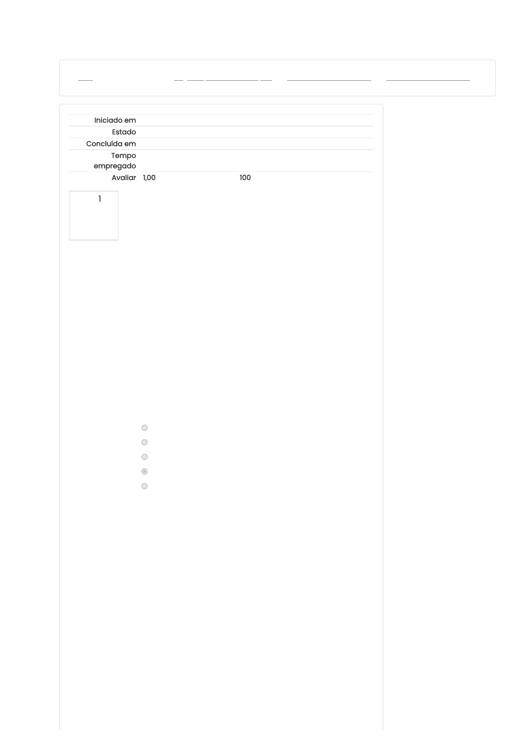 17/09/2021 Atividade Online Pontuada 03 https://cead.uvv.br/graduacao/mod/quiz/review.php?attempt=378620&cmid=71954 1/4 Início Minhas disciplinas Programação Orientada a Objetos Atividades Pontuadas e Prova Atividade Online Pontuada 03 Questão 1 Completo Atingiu 0,20 de 0,20 Iniciado em sexta-feira, 17 set 2021, 21:05 Estado Finalizada Concluída em sexta-feira, 17 set 2021, 21:29 Tempo empregado 24 minutos 19 segundos Avaliar 1,00 de um máximo de 1,00(100%) Linguagens com suporte a orientação a objeto oferecem um recurso bastante importante que é a Exceção. Podemos entender que Exceções são notificações de que algo interrompe a execução normal do programa. Exceções fornecem um paradigma de programação para detectar e reagir a eventos inesperados. Sobre orientação a objetos e exceções analise as seguintes afirmações: I - Exceções são geradas ou lançadas pelo código de programação que deve enviar um sinal ao programa em execução sobre um erro ou uma situação incomum. II - O tratamento de exceções é um mecanismo que permite que exceções sejam lançadas e capturadas. Esse mecanismo é fornecido internamente pelo CLR (Common Language Runtime). III - Na POO, as exceções são funcionalidade e podem ser herdadas para criar hierarquias. IV - Na Programação Orientada a Objetos (POO), as exceções são um mecanismo poderoso para o processamento centralizado de erros e situações excepcionais. É correto o que se afirma apenas em:: Escolha uma opção: a. III e IV. b. I e II. c. II, III e IV. d. I, II e IV. e. I, II e III. https://cead.uvv.br/graduacao/my/ https://cead.uvv.br/graduacao/course/view.php?id=511 https://cead.uvv.br/graduacao/course/view.php?id=511§ion=2 https://cead.uvv.br/graduacao/mod/quiz/view.php?id=71954 https://cead.uvv.br/graduacao/grade/report/index.php?id=511 https://cead.uvv.br/graduacao/blocks/mchat/view.php?id=511 https://cead.uvv.br/graduacao/my/ https://cead.uvv.br/graduacao/calendar/view.php?view=month&course=511 javascript:void(0); https://cead.uvv.br/graduacao//course/view.php?id=182&sesskey=x3VHc5RahQ&edit https://aluno.uvv.br/Aluno/Dashboard https://cead.uvv.br/graduacao/my 17/09/2021 Atividade Online Pontuada 03 https://cead.uvv.br/graduacao/mod/quiz/review.php?attempt=378620&cmid=71954 2/4 Questão 2 Completo Atingiu 0,20 de 0,20 Na POO, é recomendável usar exceções para gerenciar situações de erro ou eventos inesperados que possam surgir durante a execução do programa. Isso substitui a abordagem processual de tratamento de erros e oferece vantagens importantes, como o processamento centralizado de erros, o tratamento de vários erros em um único local e a capacidade de passar erros para um manipulador de nível superior. Outra vantagem importante é que as exceções se autodescrevem e podem criar hierarquias. Sobre este assunto, identifique as afirmativas a seguir como verdadeiras (V) ou falsas (F): ( ) Do ponto de vista de fluxo de uma exceção, o princípio geral é que, quando um novo método é chamado, ele é colocado no final da pilha. Quando o método termina, ele é retirado do fundo da pilha. ( ) A exceção no .NET é um objeto que sinaliza um erro ou um evento que não é previsto no fluxo normal do programa.. ( ) Quando um evento incomum ocorre, o método em execução “lança” um objeto especial contendo informações sobre o tipo do erro, o local no programa em que o erro ocorreu e o estado do programa no momento do erro. ( ) Cada exceção no .NET contém o chamado rastreamento de pilha (stack trace), que fornece informações de onde exatamente ocorreu o erro. ( ) Depois que um método lança uma exceção, o CLR procura um manipulador de exceções (exception handler) que possa processar o erro.. Assinale a alternativa que representa a sequência correta de cima para baixo:: Escolha uma opção: a. F-V-V-F-V b. F-V-V-V-V c. F-V-V-F-F d. V-V-V-F-F e. F-V-V-V-F https://cead.uvv.br/graduacao/grade/report/index.php?id=511 https://cead.uvv.br/graduacao/blocks/mchat/view.php?id=511 https://cead.uvv.br/graduacao/my/ https://cead.uvv.br/graduacao/calendar/view.php?view=month&course=511 javascript:void(0); https://cead.uvv.br/graduacao//course/view.php?id=182&sesskey=x3VHc5RahQ&edit https://aluno.uvv.br/Aluno/Dashboard https://cead.uvv.br/graduacao/my 17/09/2021 Atividade Online Pontuada 03 https://cead.uvv.br/graduacao/mod/quiz/review.php?attempt=378620&cmid=71954 3/4 Questão 3 Completo Atingiu 0,20 de 0,20 Questão 4 Completo Atingiu 0,20 de 0,20 Um desenvolvedor júnior criou uma funcionalidade para excluir uma tarifa bancária em uma aplicação que utiliza a plataforma .Net e o Entity Framework. Porém, apesar de não gerar erro algum, ela não está excluindo efetivamente a tarifa. Veja o método implementado: Sobre esse contexto analise as seguintes afirmações para identificar o que é preciso para acertar o código: ( ) Colocar a chamada para o método SaveChanges, disponível na variável contexto. O código ficaria assim: contexto.SaveChanges();. ( ) Fechar o contexto com o seguinte código: contexto.Close(); ( ) Comitar a transação usando o método CommitTransaction(), disponível na variável contexto, de modo que o código fique como contexto.CommitTransaction();. ( ) Colocar a chamada para o método DoChanges(), disponível na variável contexto. O código ficaria assim: contexto.DoChanges();. ( ) Colocar a chamada para o método ChangesObjetcs(), disponível na variável contexto. O código ficaria assim: contexto.ChangesObjetcs();. Assinale a alternativa que representa a sequência correta de cima para baixo: Escolha uma opção: a. V-V-V-F-F b. F-V-V-F-F c. V-F-F-F-F d. F-V-V-V-F e. F-V-V-F-V Um ORM é uma ferramenta para armazenar dados de objetos de domínio para o banco de dados relacional como o MS SQL Server, por exemplo, de forma automatizada e sem muita programação. ORM inclui algumas partes em destaque tais como: I - Objetos da classe de domínio. II - Objetos 