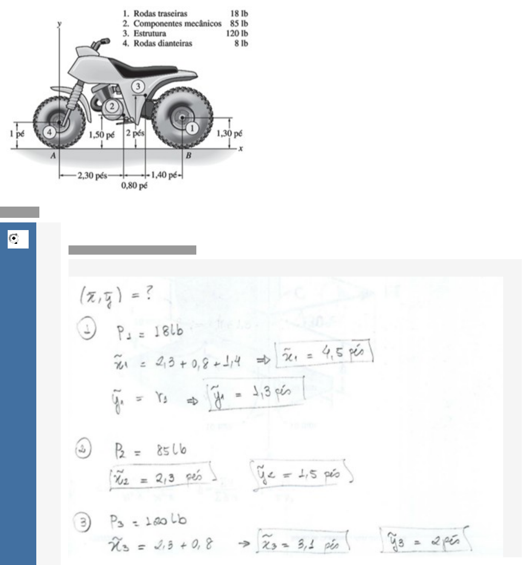 Questão 1/10 - Princípios de Mecânica e Resistência dos Materiais Determine a localização do centro de gravidade do triciclo. As localizações dos centros de gravidade e os pesos de cada componente aparecem tabelados na figura. Se o triciclo é simétrico em relação ao plano x-y, determine a posição do centro de gravidade ¯xx¯ da moto. (conteúdo da Aula 5 tema 1 e 2) Nota: 10.0 A ¯x = 2,81 pésx¯ = 2,81 pés Você assinalou essa alternativa (A) Você acertou! B ¯x = 2,92 pésx¯ = 2,92 pés C ¯x = 3,06 pésx¯ = 3,06 pés D ¯x = 3,14 pésx¯ = 3,14 pés E ¯x = 3,26 pésx¯ = 3,26 pés Questão 2/10 - Princípios de Mecânica e Resistência dos Materiais Determine o momento fletor máximo (em módulo) desenvolvido na viga. Para isso, obtenha o diagrama de momento fletor. (conteúdo Aula 4 tema 3 ou 4) Nota: 10.0 A Mmáx = 99 kN.m B Mmáx = 106 kN.m C Mmáx = 114 kN.m Você assinalou essa alternativa (C) Você acertou! D Mmáx = 125 kN.m E Mmáx = 133 kN.m Questão 3/10 - Princípios de Mecânica e Resistência dos Materiais Determine o momento fletor máximo (em módulo) desenvolvido na viga. Para isso, construa o diagrama de momento fletor. Considere P = 4 kN, a = 1,5 m e L = 3,6 m. (conteúdo da Aula 4 tema 3 ou 4) Nota: 10.0 A Mmáx = 3 kN.m B Mmáx = 4 kN.m C Mmáx = 5 kN.m D Mmáx = 6 kN.m Você assinalou essa alternativa (D) Você acertou! E Mmáx = 7 kN.m Questão 4/10 - Princípios de Mecânica e Resistência dos Materiais As instalações de uma empresa de grande porte são dentro de um galpão cuja estrutura de sustentação do telhado é construída por treliça. A equipe de manutenção dessa empresa verificou a necessidade de substituição de algumas barras dessa treliça, as quais apresentavam oxidação excessiva e vida útil muito inferior à projetada pelo fabricante. Verificando os cálculos do projeto, os engenheiros constataram que as barras com maior carregamento tinham seções de 0,0008 m² e eram tracionadas com uma força de 160 kN. O gráfico abaixo mostra a relação tensão x deformação desse material. Com base nessas informações, avalie as afirmações a seguir. I. O material utilizado nas barras da treliça é um material frágil. II. As barras sofrerão uma deformação plástica quando aplicada uma força de tração de 160 kN. III. A tensão normal aplicada na barra será igual a 200 MPa. IV. Nessa situação, a deformação da peça (e) está associada à tensão (s), de acordo com a lei de Hooke: s = E . e , em que E é o módulo de elasticidade. É correto apenas o que se afirma em: (conteúdo da Aula 6 tema 4) Nota: 10.0 A I B IV C I e II D II e III E III e IV Você assinalou essa alternativa (E) Você acertou! Aula 6 (Diagrama de tensão e deformação e Lei de Hooke) I. A afirmação é incorreta, pois o material utilizado nas barras da treliça não é um material frágil, pois os materiais frágeis não se deformam muito antes da ruptura, o que ocorre neste material (grandes deformações) caracterizando-o como um material dúctil. II. A afirmação é incorreta, pois a tensão limite de proporcionalidade é de aproximadamente 250 MPa e a tensão que está ocorrendo no material é de 200 MPa conforme cálculo abaixo: σ = FA=160.10³0,0008 = 200MPaσ = FA=160.10³0,0008 = 200MPa Portanto, a deformação nas barras é elástica. III. A afirmação está correta, conforme cálculo apresentado acima. IV. A afirmação está correta. Como o material está trabalhando na região elástica, aplica-se a Lei de Hooke para obter o módulo de elasticidade do material. Questão 5/10 - Princípios de Mecânica e Resistência dos Materiais Determine o momento fletor máximo (em módulo) desenvolvido na viga. Para isso, construa o diagrama de momento fletor. (conteúdo da Aula 4 tema 3 ou 4) Nota: 10.0 A Mmáx = 1,456 kN.m B Mmáx = 2,181 kN.m C Mmáx = 2,521 kN.m D Mmáx = 2,795 kN.m Você assinalou essa alternativa (D) Você acertou! E Mmáx = 3,155 kN.m Questão 6/10 - Princípios de Mecânica e Resistência dos Materiais A coluna está sujeita a uma força axial de 10 kN aplicada no centroide da área da seção transversal. Determine a tensão média que age na seção a-a. Analise as alternativas abaixo e marque a correta. (conteúdo da Aula 5 tema 1) Nota: 10.0 A σ = 1,63 MPaσ = 1,63 MPa B σ = 1,85 MPaσ = 1,85 MPa C σ = 2,10 MPaσ = 2,10 MPa D σ = 2,27 MPaσ = 2,27 MPa Você assinalou essa alternativa (D) Você acertou! E σ = 2,66 MPaσ = 2,66 MPa Questão 7/10 - Princípios de Mecânica e Resistência dos Materiais No projeto de eixos, é necessário conhecer o torque aplicado em cada ponto. O eixo, mostrado na figura, está apoiado por dois mancais de deslizamento A e B. As quatro polias encaixadas no eixo são usadas para transmitir potência ao maquinário adjacente. Sendo os torques aplicados ás polias. Determine o torque interno no ponto D. (conteúdo da Aula 4 tema 2) Nota: 10.0 A Td = 55 lb.pés Você assinalou essa alternativa (A) Você acertou! B Td = 60 lb.pés C Td = 65 lb.pés D Td = 75 lb.pés E Td = 80 lb.pés Questão 8/10 - Princípios de Mecânica e Resistência dos Materiais Determine a força cortante e o momento no ponto C da viga. (conteúdo da Aula 4 tema 2) Nota: 10.0 A VC = 16,25 kN e MF = 52,5 kN.m Você assinalou essa alternativa (A) Você acertou! B VC = 11,25 kN e MF = 52,5 kN.m C VC = 16,25 kN e MF = 45,2 kN.m D VC = 12,45 kN e MF = 45,2 kN.m E VC = 13,25 kN e MF = 49,6 kN.m Questão 9/10 - Princípios de Mecânica e Resistência dos Materiais O cabeçote H está acoplado ao cilindro de um compressor por seis parafusos de aço. Se a força de aperto de cada parafuso for 4 kN, determine a deformação normal nos parafusos, sabendo que eles são de aço A36. Cada um deles tem 5 mm de diâmetro. (conteúdo da Aula 6 tema 5) Nota: 10.0 A εp = 0,81.10−3 mm/mmεp = 0,81.10−3 mm/mm B εp = 0,85.10−3 mm/mmεp = 0,85.10−3 mm/mm C εp = 0,96.10−3 mm/mmεp = 0,96.10−3 mm/mm D εp = 1,02.10