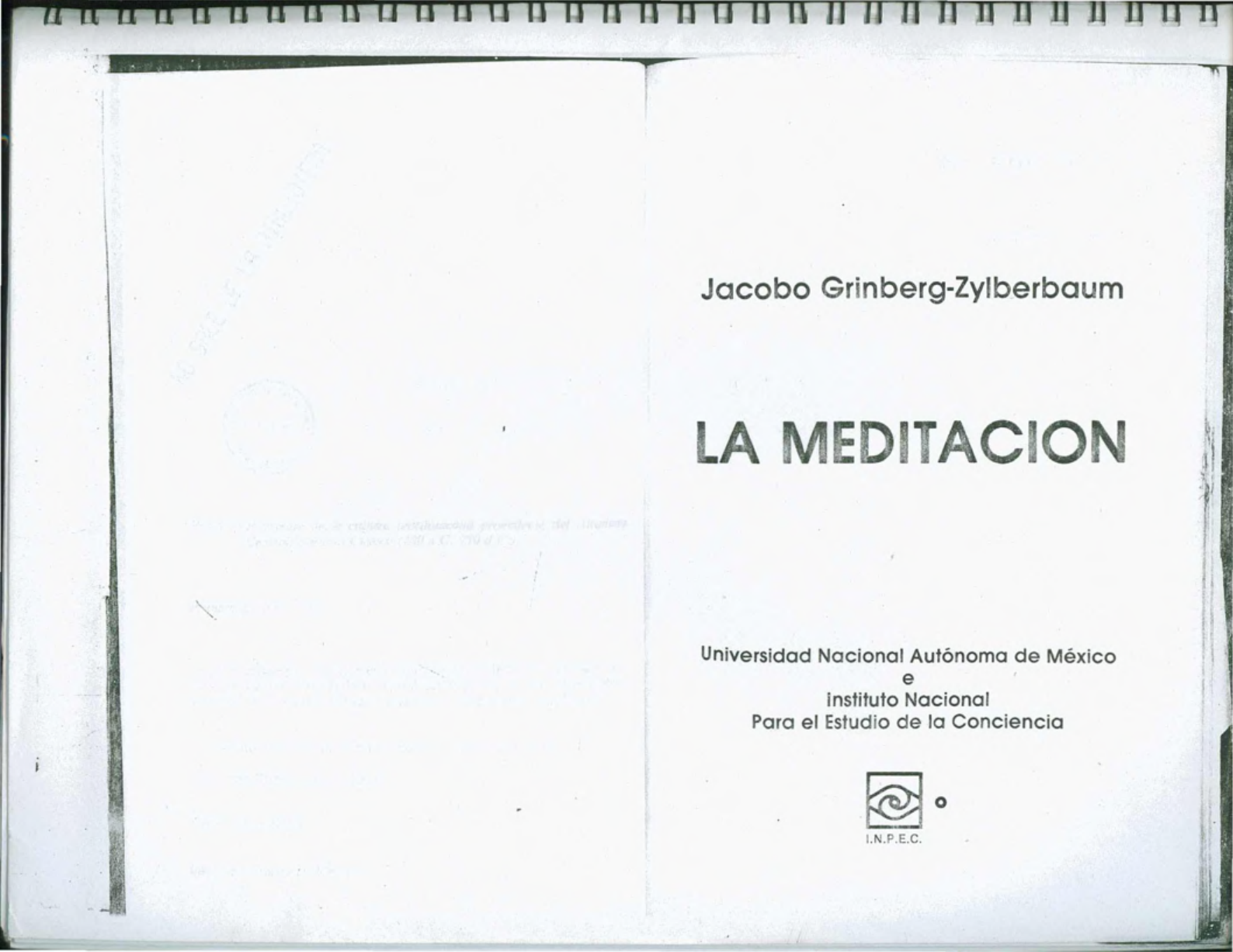 r.1~ I" ~f' Jacobo Grinberg-Zylb_erbaum LA ·EDITACION t"j', 1 ';}1'. I I !, i I ! Hq -, Universidad Nacional Autónoma de México e Instituto Nacional Para el Estudio de la Conciencia ~o I.N.P.E.C. 'rn 11J1 tlJr 1 l~ ~ I~ /~/~ // ~ // ~ / l. /~/~ ~ .-' • I \\ \" 1 ("')"~_. _.• 1f- \ \,..1 I ..... Portada: Personaje de la cultura teotihuacana procedente del AltiplollO Central; periodo Clásico (100 a.c. 750 d.C]. Primera Edición, 1991 La presentación y disposición en conjunto de LA MEDITAClON son pro- piedad del autor. Prohibida la reproducción parcial o total de esta obra, por cualquier medio o método sin autorización por escrito del autor. © Instituto Nacional Para el Estudio de la Conciencia, A.e. © Jacobo Grinberg-Zylberbaurn ISBN: 968-6022-10-4 Impreso y Hecho en México. '", ' t~;· I.15~?~2 Para ANuro Alvarudejo r PREFACIO En 1990 l leplada Editorial de Madrid España. me pidió escribir una Guía acerca de la Meditación. Más tarde, Luis Maggi me invitó a incorporar a la Guía nuevos conte- nidos, extender otros y profundizar en algunos temas con el objeto de editar un libro completo dedicudu él la medita- ción y a su prár-lica. Esa es la historia del nacimiento de este libro. En él. el órden original de la Guia se ha respetado añadiendo nuevas secciones tules corno la dedicada a la técnica de Vipassana y Sufi extendiendo otras como los de In ubsorvacíón do imágenes internas paro la práctica ele In Meditación . Auloalusiva. Al igual que con su origen (on 1(1 Guía de Me- ditación Trascendente), en este libro las Iócnicns están suficientemente explicadas en detalle corno para permitir su práctica inmediata. Por airo Indo, se han incorporado algunos ejercicios preliminares a la meditación. El propó- sito de los mismos es realizar una purificación corporal profunda que Iucilile las prácticas meditativas. Estos ejercicios están añadidos ni principio del tex to ~ la mayoría se der-ivan de las tradiciones Hindú, Budista, Taoísta y Chamánica. El orden de estos ejercicios no es azaroso sino que sigue una secuencia lógica y umpliarncn- te probada por el autor. Por último, al final cid libro so describen algunas de las técnicas de retroalimentación electrofisiológicH que estan siendo probadas en mi labo- ratorio de In Universidad de México y que sirven de apoyo fisiolélgico para el resto de las prúr-ticas descritas. Dosgraciac!nnwntc, el uso de técnicas uleclrnf'isiulógicns 9 ~--------------------~-,~------------------ I I I I ! 10 JA(.()BO GRINRERG·ZYLIIERDAUM I requiere de tUl equipo altamente sofisticadu que la mayoría de los lectores nu posee. Por ello, su inclusión IIU se hace con un fin práctico sino únicamente ilustrativo y porque son W1 ejemplo de la coníluencia entre la ciencia y la meditación clásica. Iacobo Crinberg-Zvlberbaum Ciudad Universitaria. México. 16 de julio de 1990. -, INTRODUCCION De la misma forma en que es posible definir etapas de crecimiento individual tales cumo In infancia. la puber- tad. la adolescencia. la maríurez orgánica del adulto V lél vejez. también las sociedades y la humanidad en su con- junto cumplen procesos de desarrollo. Éstos están deter- minados por tendencias globales que afectan. en mayor o menur grado. a todos los individuos. Querárnoslo onu. formarnos parte de un rnncroorganismo Que nos afecta y al que también afectamos. Tuda unidad orgánica. independientemente de su nivel. se rige por leyes similares y. lo que podría denominarse Conciencia Planeta- ria. no escapa a estas leyes de los sistemas organizados. Nuestro cuerpo orgánico 'individual y nuestro cerebro son un modelo excelente que manifiesta la operación de estas leyes. Estamos constituidos por una cantidad casi astronómica de células organizadas en tejidos. órganos y sistemas. Cada célula de nuestro cuerpo es tilia unidad que elabora ~I procesa su alimento. lo desecha y cumple una función, en estas estructuras egocéntricos de comodidad. tal y como Alberto Cuevera Rojas denominaba a las célu- las de nuestro cuerpo. Pero al mismo tiempo. cada célula Contiene un modelo de información acerco de la totalidad. y P.S influida por la unidad orgánica de la cual forma parte. Esta situación en la que cada elemento de W1a totalidad po- see cierto grado de independencia -pero simultáneamente df~dependencia con respecto a la unidad de In cual forma parte- y. por otro lado ejerce una función específica que Contiene al mismo tiempo información del conjunto. se oh- I I I : 1 I ,..,. ,! Y j 12 ¡ACOBO GRINBf.HG-ZYLUEIW,\UM serva en toda organización. En el cerebro humano. imper¡l la misma situación. Cada neurona contiene la informnciún de todo el cerebro y depende. para funcionar. de la in- tegridad cerebral. pero simultáneamente posee cierta in- dependencia con respecto al conjunto y realiza funciones especí ricas. La física contemporánea en uno de sus capítulos. la óptic:l holográfica. ha desarrollado un modelo -el holográfico-- basado en las consideraciones anteriores. Un holograma es una fotografía tridimensional en la cual cada una de sus partes contiene información acerca de la totalidad, De acuerdo con el modelo holográfico. todo el Universo es un holograma porque en el espacio también codo uno de sus pun tos caneen tra información acerco dt) la tot(JJjdClfJ. El organismo global que podriarnos llamar ..Humanidad-, viviendo en la superficie de un Planeta inmerso en el espa- cia. constituye, desde una perspectiva global. un solo cuerpo orgánico vivo y activo. En dicho organismo se manifiestan las mismas leyes holográficas de organización. Para que un organismo pueda ser catalogado como tal. se requiere que existan interacciones entre todos sus ele- mentes. Sabemos. por los últimos descubrimientos psicoíí- siológícns. que el cerebro humano mantiene un constante intercambio energético con el resto de los cerebros a través de la creación y de la expansión de Campos Neurona/es'. Sabemos t