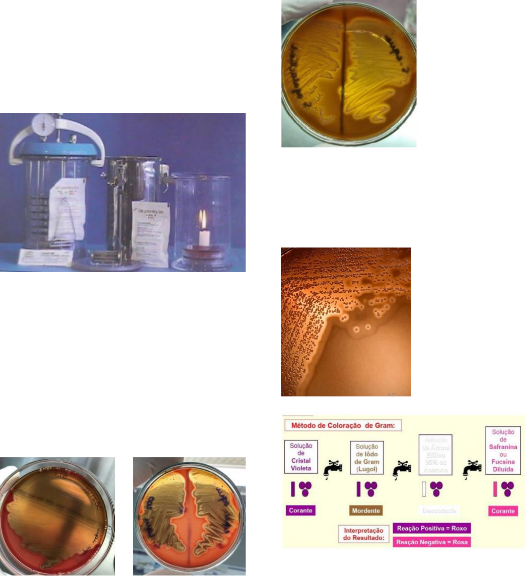 Caldo tetrationato – específico - Salmonella Caldo Rappaport-Vassiliadis - específico - Salmonella Reinforced Clostridial Medium – específico clostridium. Meios enriquecidos: contém muitos nutrientes. Amostras advindos de tecidos pouco contaminados, com dificuldade de isolar. BHI (brain heart infusion) TIO (tioglicolato) – para microaerófilos. Incubação em estufas com diferentes temperaturas; Bactérias de peixes; Aeromonas precisa de 25°C, diferente das outras que a maioria cresce em 37°C. *Deixamos todos os isolados por no mínimo 72h (37°C) para casos de bactérias de crescimento lento como a nocardia. Diferentes condições de incubação: Aerobiose, anaerobiose e microaerobiose. Ambiente para microaerófilos - Jarra com vela para strepto e actinomyces. Após 24 horas: o Ágar sangue: Bactéria pura ou contaminação. Identificação: Morfologia Colonial: características do crescimento no meio de cultura: Forma (circular, irregular, radiada, rizóide), elevação (chata, convexa, umbilicada), tamanho (em mm), bordas (inteiros, ondulados, lombados, denticulados) e a superfície (lisa ou rugosa); Presença ou ausência de hemólise em ágar sangue: Fica mais escuro ou mais claro e ao redor da colônia sem pigmentação do ágar. Tipos de hemólise para Streptococcus sp. Alfa-hemólise ( α ): é caracterizada por uma hemólise parcial, associada com a perda parcial de hemoglobina pelas hemácias, ocorrendo uma zona cinza-esverdeada no meio de cultura ao redor da colônia; Beta-hemólise ( β ): é caracterizada pela lise completa das hemácias que rodeiam a colônia, ocorrendo uma zona transparente (zona de lise total) ao redor da colônia; Gama-hemólise ( γ ): é caracterizada pela ausência de hemólise. Cepas desses microrganismos não hemolíticos, ou d-hemolíticos; Streptococcus equi – causa hemólise completa (beta). Hemólise para Staphylococcus sp. Alfa-hemólise ( α ): é caracterizada por uma hemólise completa; Beta-hemólise ( β ): é caracterizada pela hemólise parcial; Dupla hemólise: Alfa + Beta hemólise. Presença de células leveduriformes (são bem maiores), como malassezia, cândida. Dúvida na coloração de Gram à Teste do KOH 3% Dissolve parede celular das gram negativas. Fica um fluido grudento. Coloração de Ziehl-Neelsen: Bactérias álcool-ácido resistentes; Aquecer. Evidenciam cápsula. Coloração específica para esporos, cápsulas e flagelos. Provas de triagem: Gram-positivas: Catalase e coagulase Gram-negativas: Oxidase Catalase positiva: formação de bolhas – peróxido de hidrogênio. Coagulase positiva: formação de coágulos. Coagulase livre na lâmina forma uma névoa – negativo. Oxidase: afeta o citocromo oxidase; positiva forma uma área rosea; todas as enterobactérias são oxidase negativas. Testes bioquímicos O estudo da atividade bioquímica das bactérias consiste em pesquisar as modificações no meio de cultura pelo metabolismo bacteriano. O que se constata é o resultado global da ação enzimática da bactéria. SIM (sulfur indole motility) Meio utilizado para verificação de motilidade, indol e produção de gás e enxofre; Após o crescimento pingar o reativo de Kovac's para avaliação do indol; Forma um anel rosa. Amarelo = negativo. Preto = presença de enxofre. Linha de inoculação – a partir dela se verifica se é móvel ou não. Meio semissólido glicose oxidativa-fermentativa (GOF): Fonte de carboidratos: desdobramento de glicose na presença e ausência de O2; Avalia se é capaz de desdobrar a glicose no meio. Sem utilização - Se manteve verde. Utilização Na presença de O2 – amarelo na superície. Oxifermentativa – utiliza na presença ou ausência de O2 (toda amarela).