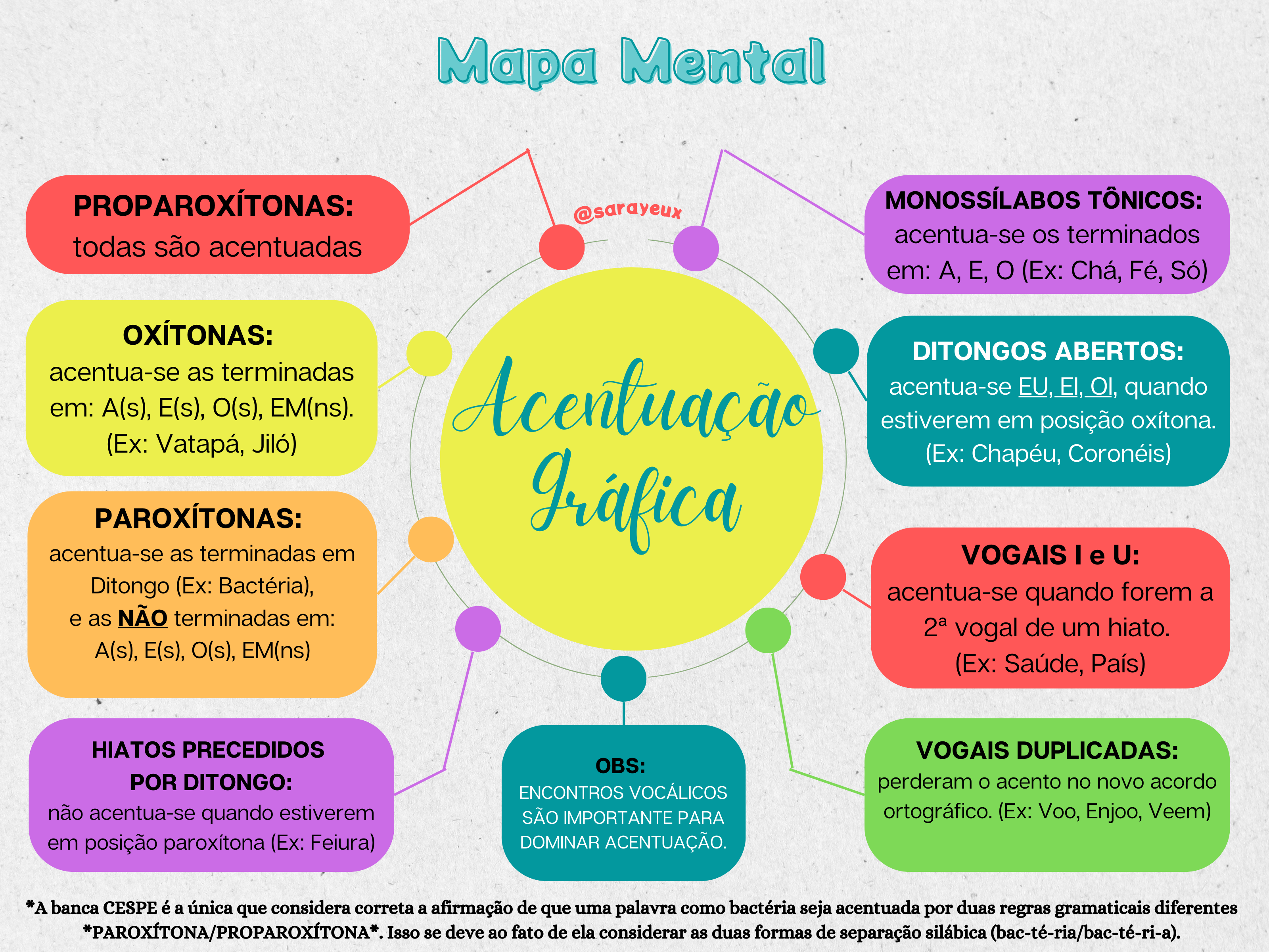 mapa mental de regas de acentuaçao dos monossilabos,oxitonas,paroxitonas,proparoxiton e hiatos com um exemplo de cada regra e hiatos come hiatos c...