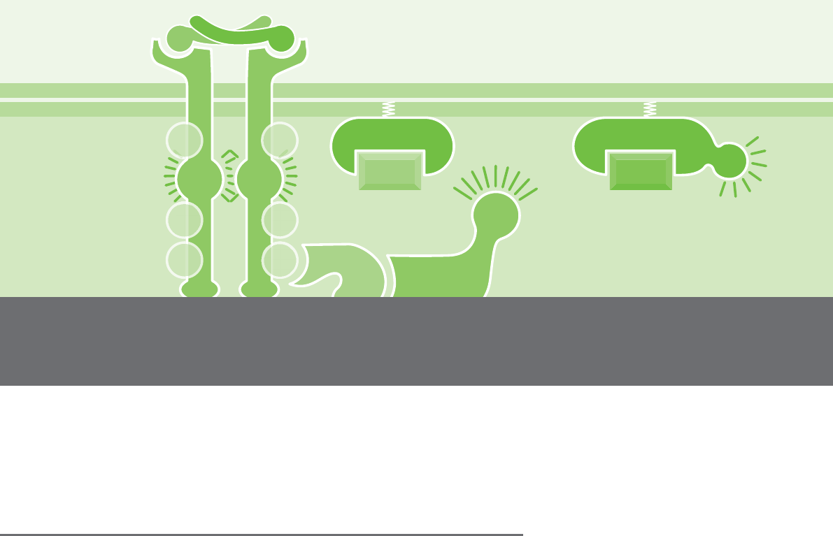 PRINCÍPIOS GERAIS DA SINALIZAÇÃO CELULAR RECEPTORES ASSOCIADOS À PROTEÍNA G RECEPTORES ASSOCIADOS A ENZIMAS CAPÍTULO 16 Comunicação Celular As células individuais, assim como os organismos multicelulares, precisam sen- tir e responder ao seu ambiente. Uma célula de vida livre – mesmo uma bactéria primitiva – deve ser capaz de farejar nutrientes, perceber a diferença entre claro e escuro e evitar venenos e predadores. Se essa célula tiver algum tipo de “vida social”, ela deve ser capaz de se comunicar com outras células. Quando uma cé- lula de levedura está pronta para acasalar, por exemplo, ela secreta uma pequena proteína chamada de fator de acasalamento. As leveduras do “sexo” oposto de- tectam esse chamado químico de acasalamento e respondem interrompendo o progresso no ciclo celular e emitindo protrusões na direção da célula que emitiu o sinal (Figura 16-1). Em um organismo multicelular, as coisas são muito mais complicadas. As células têm de interpretar a multiplicidade de sinais que recebem de outras cé- lulas para auxiliar na coordenação de seu comportamento. Durante o desenvol- vimento animal, por exemplo, as células do embrião trocam sinais para determi- nar qual função especializada cada célula deverá adotar, que posição ela deverá ocupar no animal e se deverá sobreviver, dividir-se ou morrer; posteriormente, uma variedade de sinais coordena o crescimento do animal, assim como sua fisiologia e comportamento cotidiano. Nas plantas, as células também estão em comunicação constante umas com as outras. Suas interações permitem à planta responder às condições de luz, à escuridão e à temperatura, que orientam os ciclos do seu crescimento, florescimento e frutificação, e coordenar o que acon- tece nas raízes, nos ramos e nas folhas. Neste capítulo, examinaremos alguns dos meios mais importantes de co- municação entre as células e discutiremos como elas enviam sinais e como in- terpretam os que recebem. Apesar de nos concentrarmos nos mecanismos de recepção e de interpretação de sinais nas células animais, apresentaremos tam- bém uma breve revisão do que se sabe sobre vias de sinalização em células ve- getais. Iniciaremos nossa discussão com um resumo dos princípios gerais da si- 532 Alberts, Bray, Hopkin, Johnson, Lewis, Raff, Roberts & Walter nalização celular e estudaremos a seguir dois dos principais sistemas utilizados pelas células animais para receber e interpretar sinais. PRINCÍPIOS GERAIS DA SINALIZAÇÃO CELULAR A informação pode vir sob várias formas, e a comunicação envolve, frequente- mente, a conversão dos sinais de informação de uma forma para outra. Quando você recebe uma chamada de um amigo em seu telefone celular, por exemplo, o telefone converte os sinais de rádio que viajam pelo ar em ondas sonoras que você ouve. Os pontos críticos nessa transmissão ocorrem onde a mensagem é convertida de uma forma para outra. Esse processo de conversão é denominado transdução de sinal (Figura 16-2). Os sinais que transitam entre as células são muito mais simples do que as mensagens trocadas pelos seres humanos. Em uma comunicação característica entre células, a célula sinalizadora produz um tipo particular de molécula-sinal que é detectada pela célula-alvo. Assim como na conversação humana, a maioria das células animais envia e recebe sinais, e, portanto, podem atuar tanto como células sinalizadoras como receptoras. As células-alvo possuem proteínas recep- toras que reconhecem e respondem especificamente à molécula-sinal. A trans- dução de sinal começa quando a proteína receptora na célula-alvo recebe um sinal extracelular e o converte nos sinais intracelulares que alteram o comporta- mento celular. A maior parte deste capítulo tratará da recepção e da transdução de sinal – os eventos que os biólogos celulares têm em mente quando se referem à sinalização celular. Primeiramente, contudo, veremos de forma sucinta os diferentes tipos de sinais que as células enviam umas às outras. Os sinais podem atuar a distâncias curtas e longas As células dos organismos multicelulares usam centenas de tipos de moléculas extracelulares para enviar sinais umas às outras. As moléculas-sinal podem ser proteínas, peptídeos, aminoácidos, nucleotídeos, esteroides, derivados de ácidos graxos e até mesmo gases dissolvidos – mas contam com somente um punhado de tipos básicos de comunicação para transmitir as mensagens. Nos organismos pluricelulares, o tipo mais “popular” de comunicação en- volve a transmissão do sinal por todo o corpo pela secreção na corrente sanguí- nea (nos animais) ou na seiva (nas plantas). As moléculas-sinal usadas dessa forma são chamadas de hormônios, e nos animais, as células que os produzem são chamadas de células endócrinas (Figura 16-3A). Por exemplo, parte do pân- (A) (B) Figura 16-1 Células de levedura respondem ao fator de acasalamento. Células de levedu- ra de brotamento (Saccharomyces cerevisiae) são normalmente esféricas (A), mas quando são expostas ao fator de acasalamento produ- zido pelas células vizinhas formam protrusões na direção da fonte do fator (B). As células que adotam essa forma em resposta ao sinal de acasalamento são chamadas shmoos em uma alusão ao personagem do desenho ani mado da década de 1940, criado por Al Capp. (Cor- tesia de Michael Snyder.) Som SAÍDA Sinal de rádio ENTRADA Sinalização intracelular Molécula B SAÍDA Sinal extracelular Molécula A ENTRA- DA (A) (B) Figura 16-2 Transdução de sinal é o proces- so pelo qual um tipo de sinal é convertido em outro. (A) Um telefone celular converte um sinal de rádio em um sinal sonoro quando o recebe (e vice-versa, quando o transmite). (B) Uma célula-alvo converte um sinal extracelular (molécula A) em um sinal intracelular (molécu- la B). Fundamentos da Biologia Celular 533 creas é uma glândula endócrina q