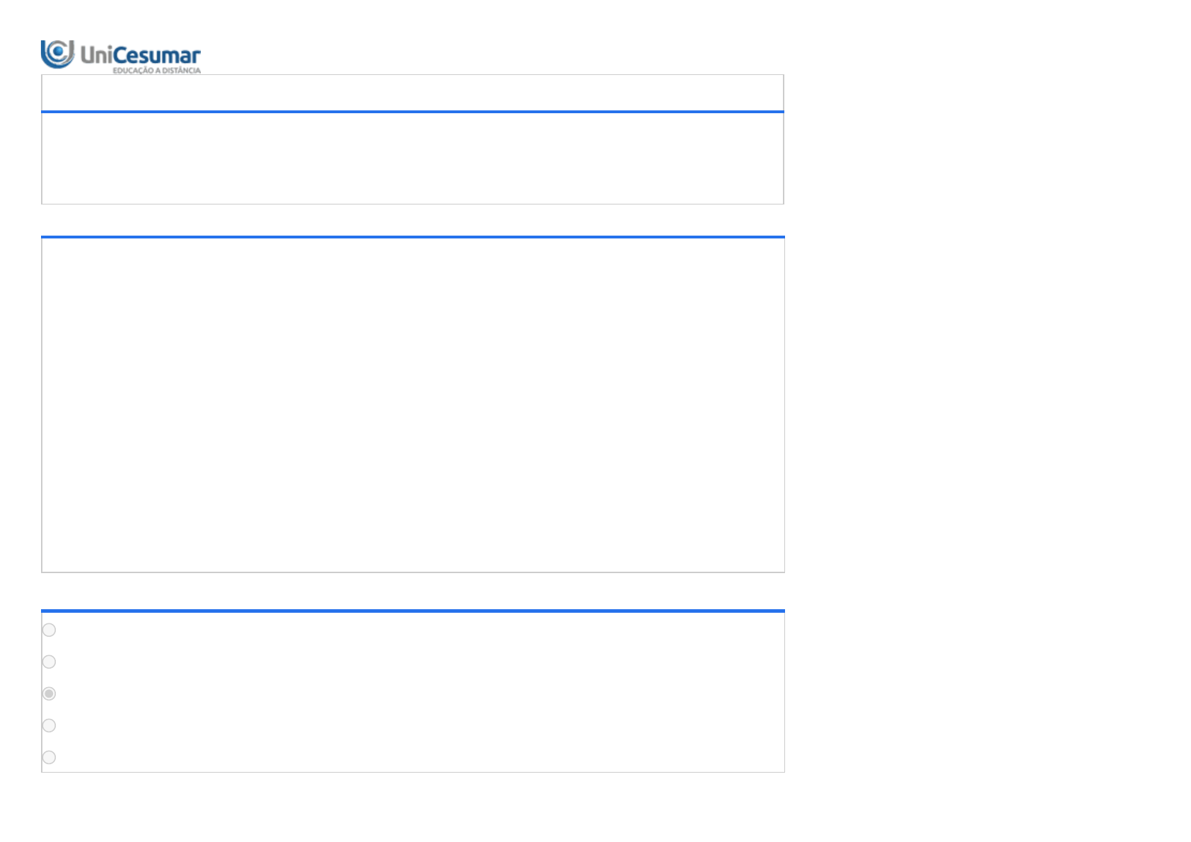 28/11/2022 12:35 Unicesumar - Ensino a Distância about:blank 1/10 ATIVIDADE 3 - EDU - DESENVOLVIMENTO E APRENDIZAGEM MOTORA - 54/2022 Período:14/11/2022 08:00 a 02/12/2022 23:59 (Horário de Brasília) Status:ABERTO Nota máxima:1,50 Gabarito:Gabarito será liberado no dia 10/12/2022 00:00 (Horário de Brasília) Nota obtida: 1ª QUESTÃO A aprendizagem é compreendida como uma mudança na capacidade de o indivíduo desempenhar uma habilidade. A melhora na execução de determinada habilidade motora requer constante repetição do movimento, que pode levar à melhora permanente do desempenho. Contudo, durante o processo de aprendizagem, pode ocorrer a estagnação do desempenho. SCHMITZ, G. M.; BERRIA, J. Desenvolvimento e Aprendizagem Motora. Maringá: UniCesumar, 2022. Considerando a estagnação do desempenho de uma habilidade motora, analise as afirmativas a seguir. I. Os platôs estão mais associados ao desempenho do que da aprendizagem de uma habilidade. II. A estagnação do desempenho é comum e pode ocorrer no processo de aprendizagem. III. Os platôs dizem respeito à estagnação tanto do desempenho quanto da aprendizagem motora. IV. A estagnação ou platô pode ocorrer ao longo do desenvolvimento da prática, enquanto a aprendizagem ocorre. É correto o que se afirma em: ALTERNATIVAS I, apenas. II e III, apenas. I, II e IV, apenas. II, III e IV, apenas. I, II, III e IV. 28/11/2022 12:35 Unicesumar - Ensino a Distância about:blank 2/10 2ª QUESTÃO O desempenho ou a performance é o comportamento observável, enquanto a aprendizagem não é observada diretamente, ela é inferida a partir das características do desempenho do indivíduo. À medida que o indivíduo evolui, notáveis alterações no desempenho e no praticante podem ser observadas. SCHMITZ, G. M.; BERRIA, J. Desenvolvimento e Aprendizagem Motora. Maringá: UniCesumar, 2022. Considerando as quatro características do desempenho que são observadas ao longo da aprendizagem de habilidades, assinale a alternativa correta. ALTERNATIVAS Consistência, maturação, persistência e adaptabilidade. Aperfeiçoamento, consistência, persistência e adaptabilidade. Aperfeiçoamento, maturação, persistência e crescimento físico. Idade cronológica, crescimento físico, maturação e desenvolvimento motor. Maturação, crescimento físico, coordenação motora e desenvolvimento motor. 3ª QUESTÃO 28/11/2022 12:35 Unicesumar - Ensino a Distância about:blank 3/10 Existem diversas teorias da aprendizagem motora e do controle motor que buscam explicar como o nosso corpo controla a execução do movimento coordenado, não apenas a partir de uma abordagem fisiológica, mas também comportamental. As teorias do circuito aberto x fechado buscam explicar como os sistemas nervoso central e periférico iniciam e controlam uma ação. SCHMITZ, G. M.; BERRIA, J. Desenvolvimento e Aprendizagem Motora. Maringá: UniCesumar, 2022. Considerando as teorias do circuito aberto x fechado, analise as afirmativas a seguir: I. No circuito aberto, um sistema de controle em que toda a informação necessária para iniciar e realizar uma ação da forma planejada está contida nos comandos iniciais são executores. II. No circuito fechado, um sistema de controle em que o feedback é comparado contra um padrão ou referência para permitir que uma ação especificada seja realizada conforme foi planejada. III. No circuito fechado, cada informação recebida é comparada com uma referência para que os erros sejam processados pelo sistema executivo. O comando é enviado apenas para iniciar o movimento. IV. No circuito aberto, as modificações na execução não poderão ser realizadas enquanto a ação estiver em andamento. Isso acontece porque o feedback não é necessário ou não há tempo suficiente para que essa informação seja utilizada. É correto o que se afirma em: ALTERNATIVAS II, apenas. II e III, apenas. I, II e IV, apenas. II, III e IV, apenas. I, II, III e IV. 4ª QUESTÃO 28/11/2022 12:35 Unicesumar - Ensino a Distância about:blank 4/10 O sistema nervoso é responsável por captar, processar e gerar respostas diante dos estímulos aos quais somos submetidos. É devido à presença desse sistema que somos capazes de sentir e reagir a diferentes alterações que ocorrem em nossa volta e no interior do nosso corpo. O sistema nervoso é dividido em sistema nervoso central e sistema nervoso periférico. SCHMITZ, G. M.; BERRIA, J. Desenvolvimento e Aprendizagem Motora. Maringá: UniCesumar, 2022. Considerando as estruturas do sistema nervoso central e do sistema nervoso periférico, avalie as afirmações a seguir com V para verdadeiras e F para falsas. I. O sistema nervoso central é formado pelo encéfalo e pela medula espinhal, enquanto o sistema nervoso periférico é formado pelos nervos cranianos e espinhais. II. O sistema nervoso central compreende o encéfalo, estrutura envolvida no controle motor que se divide em três partes: tronco encefálico, cérebro e cerebelo. III. O sistema nervoso periférico compreende a medula espinhal, estrutura envolvida na recepção inicial e no processamento da informação proveniente das articulações, músculos e pele. IV. O sistema nervoso central é formado pelo tronco encefálico, a estrutura compreende um conjunto de tratos nervosos e núcleos responsável por inúmeras funções metabólicas, controle cardiorrespiratório e alguns reflexos de alta complexidade. As afirmações I, II, III e IV são, respectivamente: ALTERNATIVAS F, F, V, F. V, F, F, V. V, V, F, V. F, V, F, V. V, V, V, F. 5ª QUESTÃO 28/11/2022 12:35 Unicesumar - Ensino a Distância about:blank 5/10 O sistema nervoso pode ser dividido em central e periférico. O sistema nervoso central é formado pelo encéfalo e a medula espinhal, enquanto o periférico são os neurônios, os quais são as células nervosas, localizados fora do sistema nervoso central. SCHMITZ, G. M.; BERRIA, J. Desenvolvimento e Aprendizagem Motora