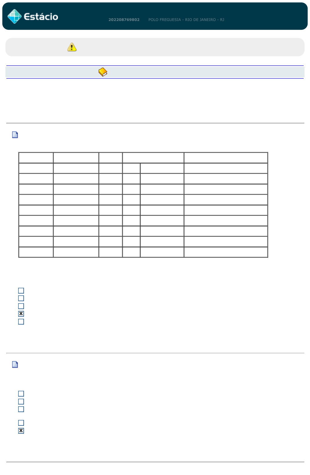 Cristiane Rodrigues de Abreu O resultado desta avaliação ficará disponível após o dia 05/12/2022. GESTÃO ESTRATÉGICA DA INFORMAÇÃO Simulado: NPG7654_AV_202208769802 (AG) Aluno(a): CRISTIANE RODRIGUES DE ABREU Matrícula: 202208769802 Data: 08/11/2022 22:21:07 (Finalizada) 1a Questão O processo de inovação deriva de diferentes elementos, como mostra a tabela a seguir: Cliente Dia Hora Valor da compra Método de pagamento 5935731 21/02/2021 10:10 R$ 69,00 Dinheiro 8216877 21/02/2021 10:33 R$ 141,00 Dinheiro 6609672 21/02/2021 11:00 R$ 90,00 Dinheiro 9381306 21/02/2021 11:02 R$ 272,00 Cartão 8816372 21/02/2021 11:17 R$ 335,00 Dinheiro 5391296 21/02/2021 11:22 R$ 171,00 Dinheiro 1211793 21/02/2021 11:49 R$ 64,00 Cartão 4557270 21/02/2021 12:30 R$ 73,00 Cartão 5650738 21/02/2021 12:32 R$ 342,00 Dinheiro Fonte: Yan Bernardes Vieites Castro dos Santos. Os elementos representados pela tabela são chamados de: combinação análise síntese dados informação 2a Questão Os conceitos de dado, informação e conhecimento são de grande importância no contexto de sistemas de informação. Sobre eles, é correto afirmar que os dados consistem no conhecimento analisado sob diferentes pontos de vista. não são necessários os dados para que se obtenha o conhecimento. o processo de tomada de decisão em um sistema de informação tem por base apenas os dados brutos. a informação é obtida a partir do conceito de conhecimento. a informação é obtida acrescentando significado aos dados. 202208769802 POLO FREGUESIA - RIO DE JANEIRO - RJ 3a Questão Padronização, eficiência, especialização e carga horária estendida foram características que marcaram determinado período histórico em termos de organização do trabalho. A sociedade na qual essas características foram particularmente notórias é chamada de manufatureira agrária industrial pós-industrial mercantil 4a Questão O diretor de uma montadora de veículos necessita tomar uma decisão acerca da continuidade ou não de um dos produtos vendidos no Brasil. Para tanto, solicitou um relatório sobre as vendas de carros da marca do último trimestre de 2018, por faixa de preço, região, modelo e cor. Nessa situação, no contexto de análise da informação, o relatório representa informação dado sabedoria inteligência conhecimento 5a Questão Joseph Schumpeter é considerado o pai dos estudos sobre inovação. O termo destruição criativa, cunhado por ele, é compreendido para designar as consequências negativas que inovações podem trazer para as organizações, caso não sejam implementadas adequadamente os conflitos internos à organização, que destroem a capacidade de gerar novos conhecimentos. a constante busca pela criação de algo novo, que, simultaneamente, destrói velhas regras a favor de novas formas de obter fontes de lucratividade. formas alternativas para o alcance de vantagens competitivas, a partir da reengenharia de processos. a ruína da empresa em não reagir, em tempo hábil, às pressões por inovações impostas pelos clientes. 6a Questão Para Weill e Jeanne (2006:29) toda empresa precisa tomar cinco decisões inter- relacionadas sobre tecnologia da informação relacionadas com o desempenho da área. Associe as duas colunas conforme as decisões que as empresas devem tomar conforme apresentadas pelo autor. DECISÕES (1) Decisões sobre os princípios de TI. (2) Decisões sobre a arquitetura de TI. (3) Decisões sobre a infraestrutura de TI. (4) Decisões sobre os investimentos e a priorização da TI. (5) Necessidades de aplicações de negócio. ASPECTOS ENVOLVIDOS NAS DECISÕES ( ) Declarações de alto nível sobre como a TI é utilizada no negócio. ( ) Organização lógica de dados, aplicações e infraestruturas, definida a partir de um conjunto de políticas, relacionamentos e opções técnicas adotadas para obter a padronização e a integração técnicas e de negócio desejadas. ( ) Serviços de TI coordenados de maneira centralizada e compartilhados, que provêm a base para a capacidade da empresa. ( ) Especificações da necessidade de negócio de aplicações de TI adquiridas no mercado ou desenvolvidas internamente. ( ) Decisões sobre o quanto e o onde investir, incluindo a aprovação de projetos e as técnicas de justificação. Indique a alternativa que apresenta a correlação correta. 2, 3, 4, 5, 1. 2, 3, 1, 5, 4. 1, 2, 3, 4, 5. 2, 5, 4, 3, 1. 1, 2, 3, 5, 4. 7a Questão Entre as ferramentas ordinariamente utilizadas na gestão de projetos pelas organizações, pode-se citar o COBIT, que: Mapeia todas as etapas envolvidas nos projetos prioritários da organização e aponta aquelas que podem ser suprimidas com vistas à redução do tempo de execução. É uma metodologia para elaboração do planejamento estratégico da companhia e alocação dos projetos de acordo com sua aderência às metas estabelecidas. Corresponde a um diagrama de causa e efeito (inputs e outputs) presentes nos principais projetos da organização. Avalia os diferentes cenários probabilísticos dos riscos envolvidos na execução de projetos e apresenta ações de mitigação. Consiste em um guia de melhores práticas utilizado na gestão de tecnologia da informação, que permite identificar quais projetos possuem maiores chances de sucesso. 8a Questão A governança de TI é um componente ou um subconjunto da governança corporativa. O sistema estabelecido pela governança de TI direciona e controla o uso corrente e futuro da TI na organização. Nessa perspectiva, constitui um princípio de governança de TI: a TI deve estar apta a prover os serviços, os níveis de serviço e a qualidade de serviços necessários para atender os requisitos atuais do negócio da organização. Requisitos futuros também podem ser contemplados pela TI, se houver políticas organizacionais claramente definidas nesse sentido. indivíduos e grupos dentro da organização compreendem e aceitam suas responsabilid