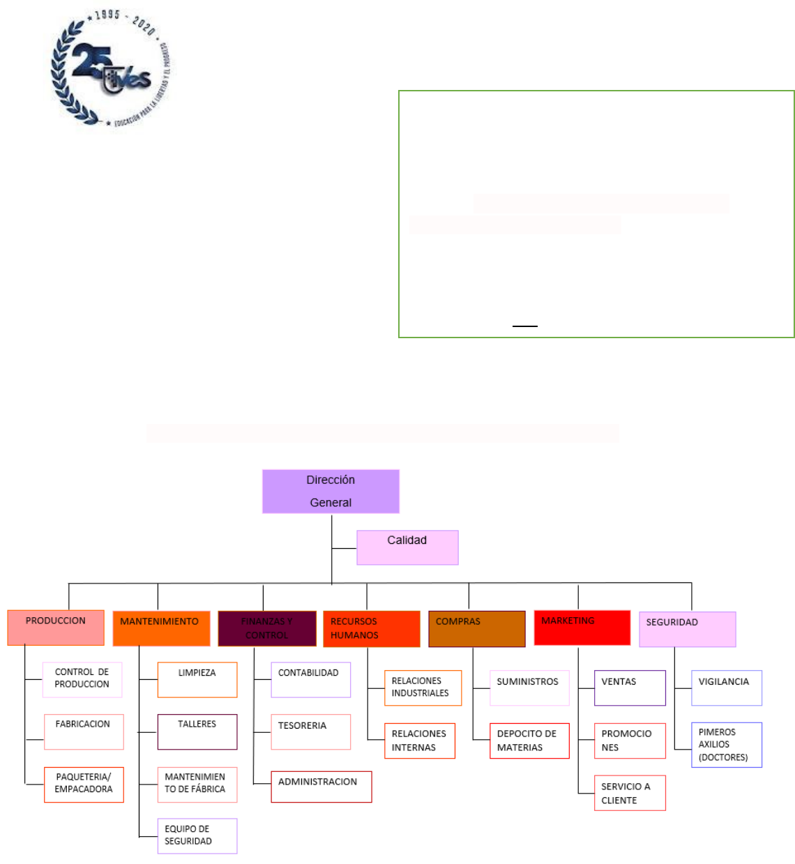 UNIVERSIDAD IVES XALAPA LICENCIATURA: ADMINISTRACIÓN DE EMPRESA MATERIA: PLANEACION DE RECURSOS HUMANOS TRABAJO: los puestos adecuados para saber cuántas personas laboraran. L.A.E. MARÌA CRISTINA GARCÌA SÀNCHEZ ALUMNO: SARAI GUADALUPE RIVERA OLARTE Núm. Tarea____3 (A_______ Fecha 22/05/21 NOMBRE DE ACTIVIDAD los puestos adecuados para saber cuántas personas laboraran. · Producción (personal 130) · Control de producción (personal 8) · Fabricación (personal 12) · Empacadora (personal 20) · Naves (áreas) Coca-Cola y Ciel (personal 90) * · Mantenimiento (personal 150 · Limpieza (personal 105) · Talleres (personal 20) · Mantenimiento de fábricas (personal 15) · Equipo de seguridad (personal 10) · Finanzas y control (personal 30) · Contabilidad (personal 10) · Tesorería (personal 10) · Administración (personal 10) · Recursos humanos (personal 6) · Relaciones industriales (personal 3) · Relaciones internas (personal 3) · Compras (personal 12) · Suministro (personal 6) · Depósito de materias (personal 6) · Marketing · Ventas (personal 6) · Promociones (personal 2) · Servicio al cliente (personal 20) · Seguridad · Vigilancia (personal 4) * · Primeros auxilios(doctores) (personal 4) * *este caso son dos turnos que es matutino y vespertino Conclusión Un programa de recursos humanos es muy importante para la empresa Coca-Cola FEMSA, que nos hace planificar que personal debemos conseguir y retener la calidad y cantidad que requerimos en la organización, un plan de recursos para coca cola FEMSA para una empresa muy grande e internacional debemos saber que es lo que queremos y para que no tengamos un exceso o déficit potencial pe personal, si no lo que realmente lo que necesitamos.