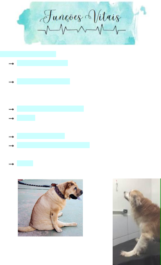 MEDICINA VETERINÁRIA – IZABEL CESAR @IZACSSR 1- Observação do Animal: Nível de Consciência: alerta (normal), diminuído (deprimido, apático), aumentado (excitado), reduzido. Postura e Locomoção: Normal ou anormal (sugerindo dor localizada, fratura, luxação, doenças neurológicas) – observar primeiro em repouso e depois em movimento. Condição Física ou Corporal: Obeso, gordo, normal, magro, caquético. Pelame: Pelos limpos, brilhantes ou eriçados, existência de ectoparasitas. Formato Abdominal: Normal, anormal (timpanismo, ascite) Características Respiratórias: Eupneia ou dispneia (postura ortopneica), tipo respiratório, secreção nasal, etc. Outros: Apetite, sede, defecação, vômito, micção. secreções (vaginal, nasal, ocular). Figura 1- Cão com provável disjunção iliossacral (Feitosa, 2020). Figura 2- Cão em posição ortopneica (Fonte: Facebook) MEDICINA VETERINÁRIA – IZABEL CESAR @IZACSSR 2- Funções vitais: Iniciar pelo parâmetro que causa menos estresse. Frequência Respiratória (F.R.): Inspeção: Movimentos do gradil costal. Palpação: Ar expirado pelas narinas. Auscultação: Laringe, traquéia ou pulmão. Ruídos respiratórios normais: Ruído respiratório laringo-traqueal: Região Cervical Ruído respiratório traqueo-brônquico: Região anterior do tórax. Ruído respiratório brônquio-bronquiolar: Região dorsal e posterior do tórax. F.R. normal: Cães = 18 a 36 mrpm Gatos = 20 a 40 mrpm Equinos = 8 a 16 mrpm Bovinos = 10 a 30 mrpm Caprinos e Ovinos = 20 a 30 mrpm Frequência Cardíaca (F.C.): Palpação: Pulso arterial ou choque da ponta Auscultação: Área cardíaca +/- do 3° ao 5-6° espaço intercostal esquerdo, sendo: primeira bulha (ruído sistólico) e segunda bulha (ruído diastólico). F.C. normal: Cães de grande porte = 70 a 120 bpm Cães de pequeno porte = 100 a 160 bpm Filhotes = Até 220 bpm Gatos = 160 a 240 bpm Equinos = 28 a 40 bpm Bovinos = 60 a 80 bpm Caprinos e Ovinos = 90 a 120 bpm Movimentos Ruminais e Cecais (Bovinos, caprinos e ovinos): Movimentos ruminais (Flanco esquerdo) = 7 a 12 movimentos ruminais a cada 5 minutos. Movimentos cecais (Flanco direito) = 3 a 5 movimentos cecais a cada 5 minutos. MEDICINA VETERINÁRIA – IZABEL CESAR @IZACSSR Temperatura retal (T°C): Temperatura baixa = Hipotermia (Idosos, caquexia, insuficiência renal, insuficiência cardíaca congestiva, anemia, intoxicações, septicemia) Temperatura normal = Normotermia Temperatura alta = Hipertermia (Temperatura ambiente e do ar elevadas, exercício, convulsões, desidratação, pelos ou lã em excesso, obesidade, confinamento e/ou transporte sem ventilação adequada). Fatores fisiológicos de variações na temperatura retal: Ingestão de alimentos (digestão), ingestão de água fria, idade, variação diária (circadiana), sexo, raça, estado de nutrição, temperatura ambiente, exercício físico, estresse. Bovinos = 37,5 a 38,5°C Ovinos = 38,5 a 40,0°C Caprinos = 38,3 a 39,5°C Cães = 38,0 a 39,3°C Gatos = 38,0 a 39,5°C Suínos = 37,7 a 39,6°C Equinos = 37,5 a 38,0°C 3- Mucosas: Iniciar pelas mucosas aparentes pois podem indicar o estado de saúde atual do animal, revelar a existência de enfermidades próprias (inflamação, tumores, edema) e auxiliar em conclusões sobre a possibilidade de alterações que reflitam o comprometimento do sistema circulatório ou a existência de doenças em outras partes do corpo. Mucosas avaliadas: Oculopalpebrais (conjuntiva palpebral superior, conjuntiva palpebral inferior, terceira pálpebra (membrana nictitante) e conjuntiva bulbar/esclerótica), nasal (+ fácil em equinos pois as narinas são maiores e flexíveis), bucal (avaliar TPC – tempo de preenchimento capilar, sadio até 2seg; 2-4seg = desidratado; >5seg = gravemente desidratado), vulvar (em cadelas: avaliar ocorrência de formações vegetantes e hemorrágicas – aspecto de couve flor - tumor venéreo transmissível, transmitido principalmente pelo coito), prepucial e anal. MEDICINA VETERINÁRIA – IZABEL CESAR @IZACSSR Atenção à coloração e ocorrência de ulcerações, hemorragias e secreções! Classificação e coloração das mucosas: Normocorada = rosa-pálido (normal) Perlácea = pálida, esbranquiçada (indicativo de anemias e vasoconstrição periférica – choque, stress, ICC) Hiperêmicas/Congestas = vermelhas (aumento da permeabilidade vascular, processos inflamatórios locais ou sistêmicos) Cianóticas = azuladas (transtorno na hematose, insuficiência cardíaca ou respiratória) Ictérica = amarelada (hiperbilirrubinemia, ictérica pré-hepática, hepática ou pós-hepática) Corrimentos das mucosas: Fluído: Líquido, aquoso, pouco viscoso e transparente (ex: corrimento nasal normal em bovinos); Seroso: Mais denso que o fluído porém ainda transparente (ex: processos virais, alérgicos, precede a secreção de infecções ou inflamações); Catarral: Mais viscoso, mais pegajoso e esbranquiçado. Purulento: Mais denso e com coloração variável (amarelo- esbranquiçado, amarelo-esverdeado) Sanguinolento: Vermelho-vivo ou enegrecido (pode se resultado de traumatismo, distúrbios hemorrágicos sistêmicos, processos patológicos agressivos). MEDICINA VETERINÁRIA – IZABEL CESAR @IZACSSR MEDICINA VETERINÁRIA – IZABEL CESAR @IZACSSR Quadro 1- Alterações de coloração das mucosas com seus principais significados e causas. (Feitosa, 2020) Mucosa Normocorada Mucosa Cianótica Mucosa Perlácea Mucosa Hiperêmica Mucosa Ictérica MEDICINA VETERINÁRIA – IZABEL CESAR @IZACSSR 4- Avaliação da Hidratação: Uma pele saudável é elástica quando pinçada, voltando rapidamente quando solta (em média, 2seg). Em animais desidratados (pele ressecada e enrugada), quanto maior o grau de desidratação, maior o tempo que a pele permanece deformada. Duas principais causas da desidratação: Perda excessiva de líquido devido diarreia e/ou vômito; e ingestão inadequada de água devido à privação ou 