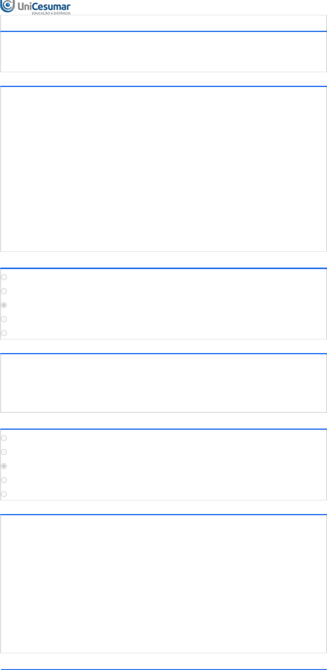 07/12/2022 16:28 Unicesumar - Ensino a Distância about:blank 1/5 ATIVIDADE 2 - ESOFT - PROJETO, IMPLEMENTAÇÃO E TESTE DE SOFTWARE - 53/2021 Período:23/08/2021 08:00 a 06/09/2021 23:59 (Horário de Brasília) Status:ENCERRADO Nota máxima:1,00 Gabarito:Gabarito será liberado no dia 07/09/2021 00:00 (Horário de Brasília) Nota obtida:0,60 1ª QUESTÃO A implementação demanda grande parte do tempo no processo de desenvolvimento de um software, por ser uma das atividades mais trabalhosas e exigir grandes habilidades do profissional da área de informática. VALENTIM, Lucio Gerônimo; DIAS, M. M.; SANTOS, R. C. S. P. Questões importantes na implementação de software. Revista Tecnológica. v. 17. Maringá: 2008, p. 73-80. Com base no enxerto acima, leia as alternativas abaixo sobre a fase da Implementação de Software. I. A implementação de software é o processo de conversão de uma especificação do sistema em um sistema executável. II. A fase de implementação sempre começa quando a fase de testes tiver sido encerrada. III. Na Implementação de Software, serão detalhados os artefatos que foram descritos na manutenção do sistema. IV. Na Implementação, é definida a linguagem de programação, que pode ser Java, C#, PHP, C++ ou qualquer outra. É correto o que se afirma em: ALTERNATIVAS I, apenas. I e III, apenas. I e IV, apenas. I, II e IV, apenas. I, II, III e IV. 2ª QUESTÃO Durante o desenvolvimento de um projeto de software, o arquiteto de software terá que definir cada componente do sistema ao nível de detalhamento que se fizer necessário para a sua implementação. Baseado no conceito de projetos de software, assinale a alternativa que contempla o tipo de projeto que é usado para descrever como um software se comunica com outros sistemas e como as pessoas o utilizam: ALTERNATIVAS Projeto de Teste. Projeto de Dados. Projeto de Interfaces. Projeto de Arquitetura. Projeto de Componentes. 3ª QUESTÃO Quando pensamos em Padrões de Arquitetura do Software, devemos pensar em colocar em foco a representação de arquitetura que irá orientar todos os demais aspectos do projeto. Quando descrevemos a arquitetura de um software precisamos apresentar as características desejadas pelo cliente. Com base nestas informações, analise as afirmações a seguir: I - Os desenvolvedores querem uma orientação clara e precisa sobre o projeto, e os clientes querem garantias de que esta arquitetura atenderá suas necessidades de negócios. II – Os sistemas não são únicos, pois quando o domínio da aplicação é o mesmo, frequentemente possuem arquiteturas semelhantes, pois refletem os mesmos conceitos principais. III - É interessante ao projetar uma arquitetura de sistema, decidir se o seu sistema vai ser uma aplicação com classes mais gerais. IV – Devemos verificar nos sistemas existentes o que tem em comum com o que queremos implementar e quais dessas arquiteturas você pode copiar, para apenas não ter retrabalho. É correto o que se afirma em: ALTERNATIVAS 07/12/2022 16:28 Unicesumar - Ensino a Distância about:blank 2/5 I e III apenas II e III apenas. II e IV apenas. I, II e III apenas. I, II e IV apenas. 4ª QUESTÃO A utilização de um processo de software têm sido apontada como um fator primordial para o sucesso de empresas de desenvolvimento de software. Sucintamente podemos definir o processo de software como um conjunto de atividades uniformizadas a serem aplicadas sistematicamente que se encontram agrupadas em fases, cada uma das quais com os seus intervenientes com responsabilidades, que possui diversas entradas e produz diversas saídas. Isto é, define quem faz o quê, quando e como para atingir um certo objetivo. MARCORATTI, J. C. O processo de software. Macoratti.net, s. d . Disponível em: https://www.macoratti.net/proc_sw1.htm. Acessado em 18.jun.2021. Considerando o texto acima e as fases do processo de desenvolvimento de software, assinale a alternativa correta: ALTERNATIVAS A Implementação é o processo de modelagem dos requisitos como um projeto de software. O Projeto e a Implementação de software são estágios do processo, no qual um sistema de software é testado. O teste mostra o que um programa faz e o que ele foi proposto a fazer e, assim, descobrir as falhas que o sistema tem antes do uso do cliente. O Projeto de software não é uma atividade criativa em que você identifica os componentes de software e seus relacionamentos, com base nos requisitos do cliente. O Projeto e a Implementação não estão intimamente ligados e, ao elaborar um projeto, você não deve levar em consideração os problemas de implementação. 5ª QUESTÃO Conforme Pressman (2011) o projeto de componentes ocorre depois que a primeira iteração do projeto de arquitetura tiver sido completada. Para ele, o conjunto completo de componentes de software é definido durante o projeto de arquitetura. Com base nestas informações, analise as afirmativas a seguir: I - O projeto de componentes detalha as estruturas de dados e define os algoritmos. II - Quem realiza as atividades do projeto de componentes é o Engenheiro de Testes. III - O projeto de componentes é usado para representar o software de uma forma que possamos “ver” os detalhes da interface, como os menus e comandos em geral. IV - A base do projeto de componentes é formada pelas representações de projeto de dados, de arquitetura e de interface. É correto o que se afirma em: ALTERNATIVAS I apenas I e II apenas I e IV apenas I, II, III apenas I, II, III e IV 6ª QUESTÃO 07/12/2022 16:28 Unicesumar - Ensino a Distância about:blank 3/5 Quando definimos padrões e boas práticas, garantimos que todos da equipe conseguirão ter o mínimo de entendimento do código daquele projeto que está na empresa a tempos. Se alguém da equipe adoecer ou precisar ir para o Canadá, outro integrante pode assumir o seu lugar sem precisar se preocupar em aprender novas regras, porque elas devem ser as mesmas do