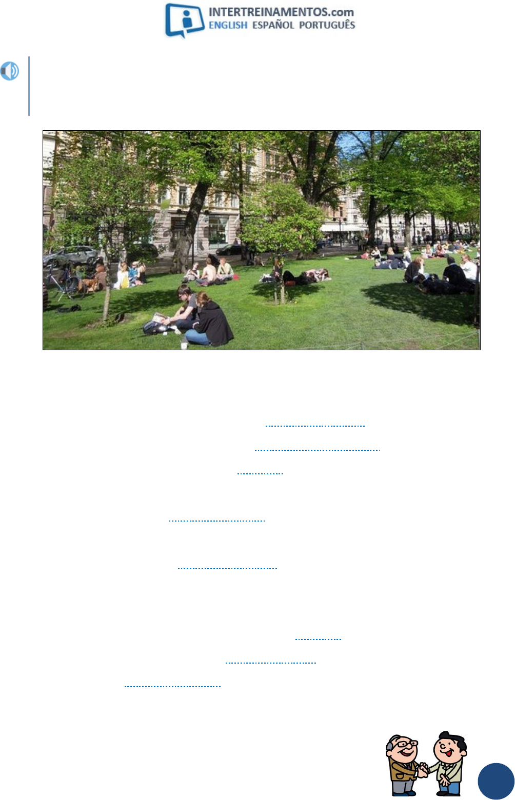 1 A beautiful day at the park. Arthur: Hello, my name is Arthur. What is your name? Brenda: Hi, my name is Brenda. Nice to meet you Arthur. Arthur: Nice to meet you too. Where are you from? Brenda: I am from the U.S. and you? Arthur: I am from Spain, but I live here. Brenda: Great! How old are you, Arthur? Arthur: I am 19 (years old), and you? Brenda: I am 17. What do you do? Arthur: I am a Spanish teacher. And you? Brenda: I am a student. I study Animation drawing. Arthur: Nice. I must go now, Brenda. See you. Brenda: See you, Arthur. Have a nice day. Arthur: The same to you. LESSON ZERO – GREETING PEOPLE https://www.intertreinamentos.com/ https://drive.google.com/open?id=1-05OlFawa02IDelnRmiiqetoIToClqKs 2 Basic Phrases Question Answer Good morning Good morning Good afternoon Good afternoon Good evening Good evening Good night Good night How are you? I am fine / I am ok / I am good Where are you from? I am from __________ (city/ country) How old are you? I am ___________ (age) What do you do? I am a/an __________ (occupation) Exercises 1. Create a small conversation and practice it with your teacher. 2. Answer the questions below according to what you have learned: a. Hello, good morning! __________________________ b. Where are you from? __________________________ c. How old are you? __________________________ d. What do you do? __________________________ e. Bye. Have a good afternoon! __________________________ https://www.intertreinamentos.com/ https://drive.google.com/open?id=1O-BPqphgC1kZ0-CyDBT1jrbgmmlKbcEc 3 Grammar focus – Verb BE The verb BE is the most important verb in the English language. The verb be is used to talk about: names I am James and she is Sarah. My name is Joshua. occupation / job Mary is an architect. My friend is a teacher. nationalities Jim and Steve are from Canada. They are Canadian. My wife is British. age I am 25. He is 36. condition (feelings) She is happy today. I’m fine, thanks. marital status Jane and Mark are married. We are single. I am from London. I am English My favorite sports are tennis and golf https://www.intertreinamentos.com/ 4 Affirmative form Subject + verb to be Jason is an engineer. He is from England. We are Brazilian. She is happy. Brazil is a big country. It is where I live. Subject Pronouns to be Contraction I am ‘m You are ‘re He / She / It is ‘s We are ‘re They are ‘re Negative form Subject + verb to be + not Anna is not from Chicago. My car is not a Honda. Jeremy is not a policeman. He is a teacher. Karen and Mike are not single. They are married. Subject Pronouns to be Contraction I am not ‘m not You are not aren’t He / She / It is not isn’t We are not aren’t They are not aren’t Interrogative form Verb to be + subject Are you from New York? Is John at home? Are they American? Is she late? to be Subject Pronouns Am I? Are you? Is he / she / it? Are we? Are they? https://www.intertreinamentos.com/ 5 How to answer Are you from Brazil? Short answer Long answer + Yes, I am. Yes, I am from Brazil. - No, I’m not. No, I’m not from Brazil. Is Mike happy with his new car? Short answer Long answer + Yes, he is. Yes, he is happy with his new car. - No, he isn’t. No, he isn’t happy with his new car. Are your friends at school? Short answer Long answer + Yes, they are. Yes, they are at school. - No, they aren’t. No, they aren’t at school. They are on vacation. Short or long answer? In casual conversation, short answers are much more common than long answers. Long answers are for more formal conversations. Verb BE Exercises 1. Fill in the blanks with "is", "am" or "are". a. I ____ a student. b. She ____ a nurse. c. He ____ a doctor. d. They ____ books. e. It ____ a chair. f. You ____ a teacher. g. We ____ students. h. He ____ fat. i. John ____ tall. j. The bird ____ small. k. I ____ a student. l. She ____ a girl. m. He ____ a boy. n. I ____ tall. o. The elephant ____ big. https://www.intertreinamentos.com/ 6 2. Complete with the verb to BE negative ('m not / isn't / aren't). a. We _____ friends. b. Catherine _____ from Italy. c. The dogs _____ white. d. The computer _____ new. e. The chairs _____ old. f. I _____ a doctor. g. Susan _____ a good singer. h. You _____ a carpenter. i. Those cats _____ mine. 3. Use the verb to be to complete the questions and to give the proper short answers. a. Are you tall ? No, I am not. b. _____ the dog black? Yes, _________ . c. _____ I strong? Yes, _________. d. _____ the food good? No, _________. e. _____ they dogs? No, _________. f. _____ the doctor in his office? Yes, _________. g. _____ the children in school? No, _________. h. _____ the water cold? No, _________. i. _____ it hot outside? Yes, _________. j. _____ the floor clean? Yes, _________. k. _____ your teacher English? No, _________. l. _____ Peter American? Yes, _________. 4. Write about 4 famous people. 1 2 3 4 name: occupation: nationality: age: marital status: https://www.intertreinamentos.com/ 7 Grammar Focus - Subject Pronouns The subject of a sentence is a person or thing that performs the action of the verb. Subject pronouns are used to replace the subject of a verb to avoid repetition. We don’t normally say: We say: John is tall and John is intelligent. John is tall and he is intelligent. More examples: Brazil is a big country. It’s where I live. John and I are students and we are from California. My parents are travelling. They are in San Francisco. Subject Pronoun Person Singular / Plural Gender I 1st Singular masculine or feminine You 2nd Singular or Plural masculine or feminine He 3rd Singular only masculine She 3rd Singular only feminine It 3rd Singular object / thing / animal We 1st Plural masculine or feminine They 3rd Plural masculine or feminine objects / things / animals https://www.intertreinamentos.com/ 8 Nouns to subject pronouns: Jane she Roger he teacher he/she father he mother she Jane and Roger they Jane and Mary they You and Mark you You and I we Mary and I we sun it pencil it bird