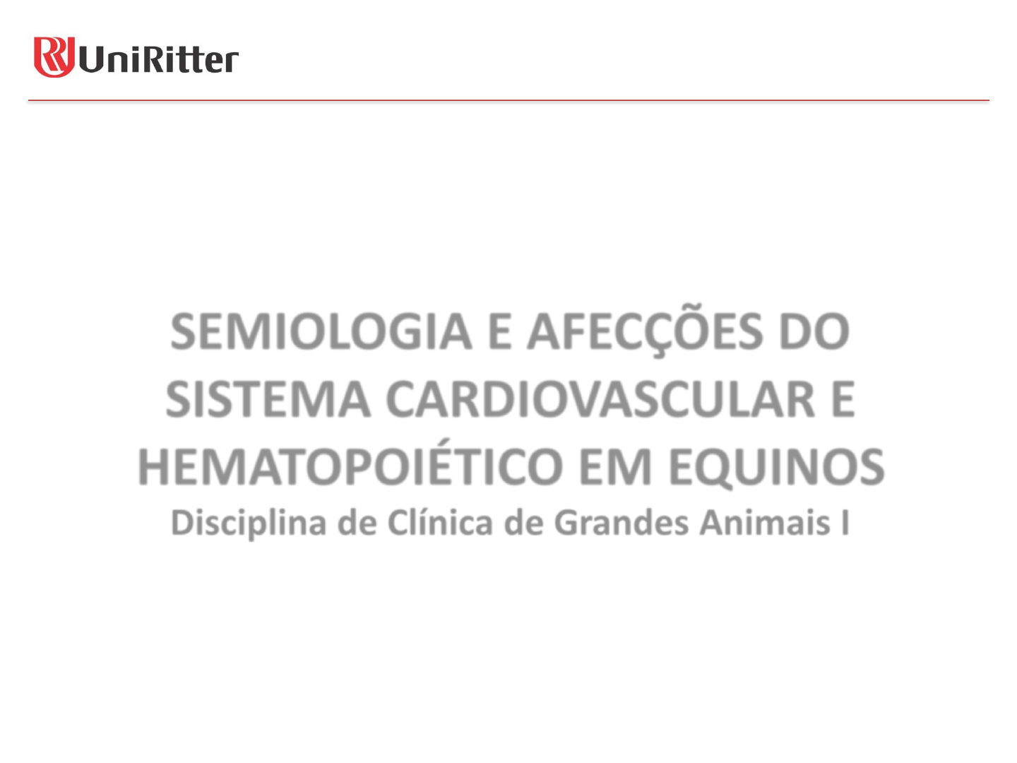 SEMIOLOGIA E AFECÇÕES DO SISTEMA CARDIOVASCULAR E HEMATOPOIÉTICO EM EQUINOS Disciplina de Clínica de Grandes Animais I EXAME ESPECÍFICO DO SISTEMA CARDIOVASCULAR E HEMATOPOIÉTICO Cansaço, fraqueza, colapso, intolerância ao exercício, queda de performance esportiva Problemas de desenvolvimento Tosse improdutiva, taquipnéia, taquicardia Edema: peito, membros, porção ventral do abdômen Decúbito Perda de apetite Abdução de membros torácicos Dilatação/distensão da veia jugular Alterações nas mucosas Morte súbita ANAMNESE EXAME ESPECÍFICO DO SISTEMA CARDIOVASCULAR E HEMATOPOIÉTICO EXAME FÍSICO • Inspeção – Mucosas – TPC: avaliação circulação periférica • Auscultação • Palpação → veias e artérias HIPERÊMICA/CONGESTA 1 BATIMENTO, 2 SONS TUM DUM TUM DUM LADO ESQUERDO EXAME ESPECÍFICO DO SISTEMA CARDIOVASCULAR E HEMATOPOIÉTICO EXAMES COMPLEMENTARES AFECÇÕES DO SISTEMA CARDIOVASCULAR Congênitas • Defeitos de septo ventricular e atrial • Ducto arterioso patente • Tetralogia de Fallot Trombose aortoilíaca Tromboflebite Arterite verminótica Intoxicação por ionóforos AFECÇÕES DO SISTEMA CARDIOVASCULAR • Congênitas AFECÇÕES DO SISTEMA CARDIOVASCULAR • Congênitas AFECÇÕES DO SISTEMA CARDIOVASCULAR Trombose aortoilíaca • Incomum, mas grave • Final da aorta e proximal das artérias ilíacas • Oclusão parcial ou total • Tecido fibroso, trombo • Strongylus vulgaris, infecção sistêmica, vasculite, embolia • Claudicação unilateral de MP, ataxia ou colapso • Ultrassonografia • Prognóstico reservado • Anticoagulantes, trombectomia AFECÇÕES DO SISTEMA CARDIOVASCULAR AFECÇÕES DO SISTEMA CARDIOVASCULAR • Tromboflebite – Muitas vezes iatrogênica – Veia jugular – Edema, calor enrijecida, sem fluxo – Edema de cabeça e vasodilatação – Inspeção, palpação, US – AINE, massagem, pomada com heparina AFECÇÕES DO SISTEMA CARDIOVASCULAR AFECÇÕES DO SISTEMA CARDIOVASCULAR • Strongylus vulgaris • L4 •Artéria aorta e mesentérica cranial •Ultrassonografia •Vermífugo Arterite verminótica MÁ FORMAÇÃO DE PROTOCOLO DE VERMÍFUGOS AFECÇÕES DO SISTEMA CARDIOVASCULAR • Intoxicação por ionóforos – Coccidiostáticos: monensina, salinomicina – Equinos muito sensíveis – Acidental – ração de aves e ruminantes – Sinais variáveis e dose-dependentes – Morte súbita em 12-36h – Arritmia, necrose de miocárdio E X E R C I C I O I A T R O G E N I O V E I A J U G U L A R S E N S I V E Í S U L T R A S S O M Highlight Highlight Highlight Highlight Highlight Highlight Highlight Highlight Highlight P L M O A R N AFECÇÕES DO SISTEMA HEMATOPOIÉTICO Anemia Infecciosa Equina Babesiose - Piroplasmose Erliquiose Granulocítica Equina Linfangite *Transfusão de sangue total AFECÇÕES DO SISTEMA HEMATOPOIÉTICO • Anemia Infecciosa Equina – AIE Vírus (gen. Lentivirus família Retroviridae) Transmissão por mosquitos, moscas, mutucas, instrumental, transplacentária, leite, sêmen Aguda Crônica Inaparente Febre até 40,5°C, inapetente ou anoréxico, letárgico. (1 a 7 dias) Muitos equídeos não mostram sinais clínicos Sem tratamento → notificação obrigatória → eutanásia IMUNIDADE BAIXA AFECÇÕES DO SISTEMA HEMATOPOIÉTICO • Anemia Infecciosa Equina – AIE CONTROLE E PREVENÇÃO Exame obrigatório para trânsito: AGID ou ELISA - Validade: 180 dias RS 60 dias fora do RS 6 MESES 2 MESES Babesiose, Nutaliose, Piroplasmose Protozoário que parasita a hemácia Anemia hemolítica Theileria equi = Babesia equi Babesia caballi Theileria equi→ fase do ciclo em linfócitos/monócitos AFECÇÕES DO SISTEMA HEMATOPOIÉTICO AFECÇÕES DO SISTEMA HEMATOPOIÉTICO A infecção aguda inicialmente apresenta sinais inespecíficos de febre alta, letargia, anorexia, edema periférico e petéquias nas mucosas. À medida que a infecção progride, o cavalo pode apresentar sinais de hemólise, incluindo membranas mucosas ictéricas ou pálidas, taquicardia, taquipneia, fraqueza e pigmentúria AFECÇÕES DO SISTEMA HEMATOPOIÉTICO AFECÇÕES DO SISTEMA HEMATOPOIÉTICO AFECÇÕES DO SISTEMA HEMATOPOIÉTICO Babesiose IMIDOCARB Theileria equi – 4 DOSES a cada 72h (4mg/kg IM) Babesia caballi – 2-3 DIAS SEGUIDOS (2mg/kg IM) Dimenazene Erliquiose Granulocítica Equina Anaplasmose Granulocítica Equina Anaplasma phagocytophilum AFECÇÕES DO SISTEMA HEMATOPOIÉTICO • Bactéria Gram negativa • Intracelular obrigatório • Zoonose • Sazonal • Vetor carrapatos Ixodes • Roedores são reservatórios • 1969- 1° caso descrito, EUA AFECÇÕES DO SISTEMA HEMATOPOIÉTICO ERLIQUIOSE EQUINA SINAIS CLÍNICOS Febre alta Depressão Anorexia parcial Edema de membros Petéquias Icterícia Ataxia Relutância ao movimento AFECÇÕES DO SISTEMA HEMATOPOIÉTICO Sinais clínicos: • Trombocitopenia, leucopenia e anemia leve • 3 a 16 dias •Autolimitante • Sinais mais severos em > 4 anos • Potros até 1 ano → febre AFECÇÕES DO SISTEMA HEMATOPOIÉTICO • Diagnóstico: – Esfregaços corados com Giemsa ou Wright → corpúsculos de inclusão em neutrófilos e eosinófilos – IFI→ 50% positivos em áreas endêmicas – PCR – Mortalidade é rara – Necropsia → hemorragias petequiais e equimóticas com presença de edema – Histopatologia → inlamação em pequenas artérias e veias, inflamação leve vascular e intersticial nos rins, coração, cérebro e pulmões AFECÇÕES DO SISTEMA HEMATOPOIÉTICO •Oxitetraciclina 7mg/Kg, SID ou BID, por 7 dias. •Tratamento suporte Tratamento: AFECÇÕES DO SISTEMA HEMATOPOIÉTICO ENROFLOXACINA FLUIDO COM B12 Linfangite Linfangite ulcerativa evolui para abscessos, Corynebacterium sp. AFECÇÕES DO SISTEMA HEMATOPOIÉTICO Mais comum no membro posterior EDEMA, DOR ... Evolui para fibrose rapidamente ...7 dias AFECÇÕES DO SISTEMA HEMATOPOIÉTICO Hidroterapia, massagem, bandagem, movimentar, AINE, corticoide, DMSO. Ulcerativa → ATB AFECÇ