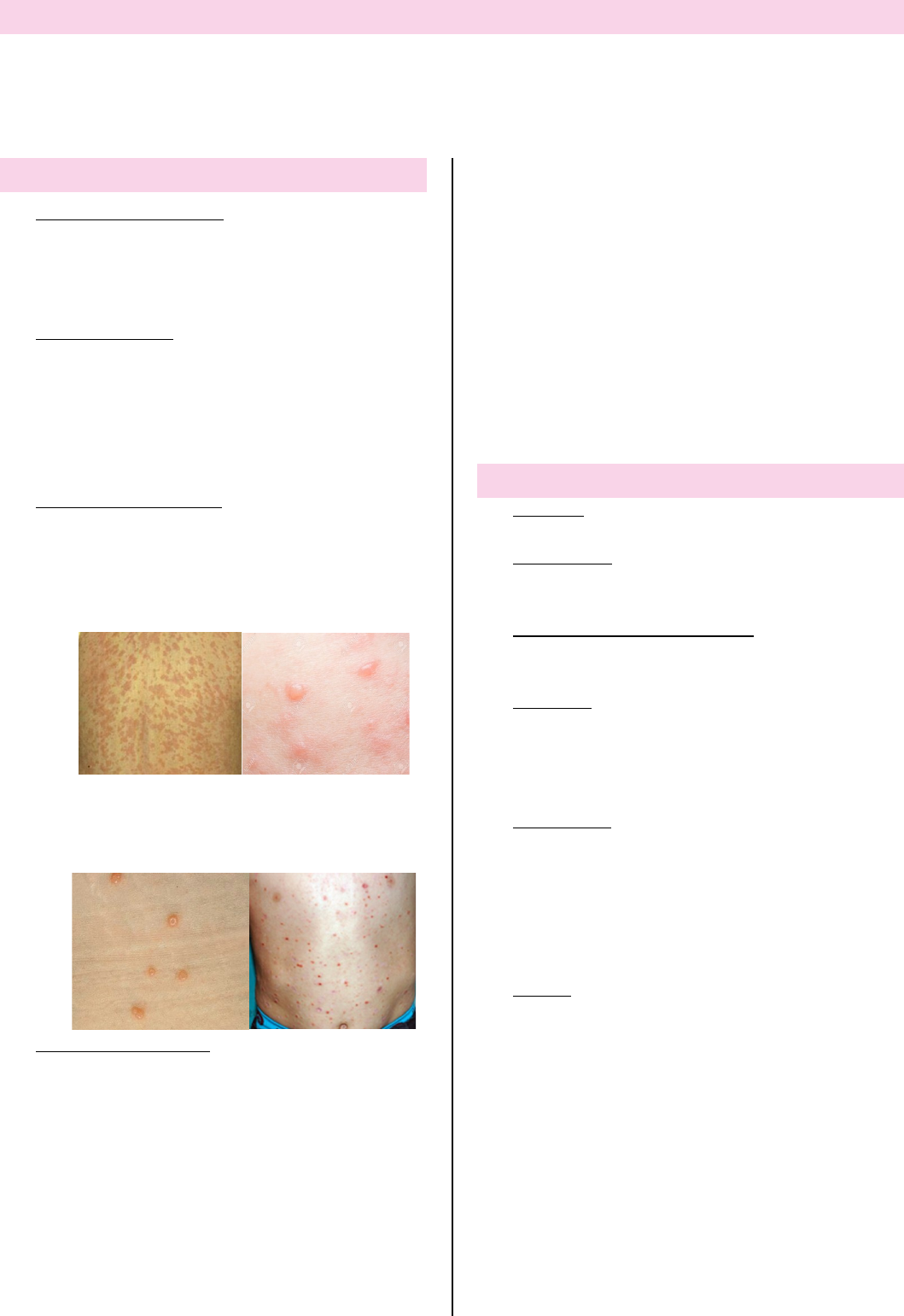 pediatria síndromes exantemáticas introdução · Doença exantemática: são desordens, de causa infecciosa (viral, bacteriana ou fúngica), medicamentosa ou reumatológica, caracterizada pelo surgimento agudo de lesões cutâneas disseminadas pelo corpo. · Evolução clínica: · Fase de incubação – sem manifestações · Fase prodrômica – sintomas inespecíficos · Fase exantemática – surgimento de lesões cutâneas · Fase de convalescença – desaparecimento dos sinais e sintomas · Aspecto do exantema: · Máculo-papular – área vermelha e plana na pele com pápulas pequenas e confluentes. · Vesicular – formações arredondadas com liquido no interior. · Papular – formações solidas elevadas de cor variável, geralmente umbilicadas. · Purpúrico – manchas de extravasamento sanguíneo. · Perfil de acordo com: · Faixa etária · Lactente – exantema súbito · Pré-escolares e escolares – Kawasaki, eritema infeccioso. · Adolescentes – rubéola e síndrome da mononucleose. · Sinais clínicos patognomônicos · Manchas de Koplik (manchas esbranquiçadas na mucosa jugal) – sarampo · Manchas de Forscheimer e sinal de Theodor – rubéola · Sinal de Pastia e sinal de Filatov: escarlatina. · Sinais clínicos associados · Conjuntivite – sarampo e Kawasaki · Faringoamigdalite exsudativa – síndrome da mononucleose, escarlatina · Hepatoesplenomegalia – rubéola, síndrome da mononucleose, Kawasaki. sarampo · Etiologia: vírus do sarampo (RNA), família Paramyxoviridae, gênero: Morbivírus. · Transmissão: gotículas de secreção respiratória que entram p/ mucosa respiratória e conjuntival. · Caso suspeito é considerado: febre + exantema + 1 dos seguintes sintomas: tosse, coriza ou conjuntivite. · Patologia: · Necrose tecidual do epitélio respiratório · Infiltrado linfocítico inflamatório · Patognomônico – células gigantes de Warthin Finkeldey. · Patogênese: · Incubação – 8 a 12 dias · Prodrômica – 2 a 4 dias (necrose do epitélio). · Exantemática – início da produção de anticorpos. · Convalescença – recuperação. · Clinica: · Prodrômica · Febre, conjuntivite, fotofobia, tosse proeminente e enantema. · Manchas de Koplik · Exantemática · Lesões máculo-papulares eritematosas e avermelhadas que iniciam no couro cabeludo e chegam ao dorso, extremidades, solas e palmas. · Regressão dos sintomas inespecíficos. · Convalescença · Rash some em 7 dias, persistindo descamação furfurácea na pele. · Tosse é o último sintoma a aparecer. · Complicações: otite média aguda, pneumonia, panencefalite esclerosante subaguda. A mortalidade está ligada aos extremos de idade. · Diagnóstico: clinico + laboratorial (hemograma, IgM e IgG, isolamento e cultura viral). · Tratamento: suporte (hidratação, antipiréticos, O2, suporte ventilatório) + vitamina A (< 1 ano = 100 mil UI/ > 1 ano = 200 mil UI). · Profilaxia: primária (vacina tríplice viral/ SCR - 12 meses e 15 meses - tetra viral) e pós exposição (vacina em até 72 hrs após a exposição). rubéola · Etiologia: vírus da rubéola (RNA), família Togaviridae, gênero Rubivírus. · Transmissão: gotículas de saliva ou secreção respiratória. · Infectividade: 5 dias antes e 6 dias após o rash. · Clinica: · Doença febril, leve e breve (1 a 4 dias) · Bom prognóstico · Problema: infecção em gravidas até 14 a 16 semanas de gestação · Prodrômica · Febre baixa, odinofagia, conjuntivite, cefaleia, mal estar e linfonodomegalia. · Sinal de Theodor – gânglio aumentado posteriormente. · Exantemática · Rash máculo-papular róseo de distribuição craniocaudal e centrífuga. · Manchas de Forcheimer – transição entre palato duro e palato mole. · Complicações: trombocitopenia, artrite, encefalite. · Diagnóstico: clinica sugestiva + hemograma (leucopenia com neutropenia) + sorologia IgM. · Tratamento: suporte (hidratação, analgésicos, antipiréticos). · Profilaxia: tríplice viral (SRC – 12 meses), após exposição (vacina até 72 hrs após). eritema infeccioso · Etiologia: Parvovírus B19 (RNA), família Parvoviridae, gênero Erythrovírus. · Epidemiologia: predomina em indivíduos de 5 a 15 anos. · Transmissão: gotículas da orofaringe. Infectividade 15 a 30%. · Patogênese: · Principal alvo – linhagem eritrocitária (ataca os pronormoblastos, que são os precursores dos eritrócitos). Cursa com anemia. · 1º fase da doença (7 a 11 dias após contato - vírus na nasofaringe) - queda da contagem de reticulócitos e Hb + surgimento de anticorpos e regressão dos sintomas respiratórios. · 2º fase (17 a 18 dias após contato) – rash e artralgia. · Clinica · Prodrômica – febre baixa, cefaleia, sintomas de IVAS, linfadenopatia. · Exantemática (3 estágios) · Exantema em face (bochechas vermelhas) · Disseminação para tronco e extremidades em aspecto rendilhado · Recidiva em 1 a 3 semanas por até 2 meses – calor, exercício, sol e estresse. · Diagnóstico: clinica (bochecha esbofeteada) + hemograma com pancitopenia + sorologia IgM. · Tratamento: suporte (hidratar, analgésicos, antipiréticos), imunodeprimidos (imunoglobulina EV). · Profilaxia: sem vacina disponível. exantema súbito (roséola) · Etiologia: vírus herpes 6 ou 7 (DNA), família herpesviridae. · Epidemiologia: · Pico de incidência – 6 a 18 meses. · < ou = a 6 meses – proteção via anticorpos maternos transplacentários. · > ou = a 2 anos - 80% das crianças já foram expostas ao vírus. · Transmissão: adultos saudáveis com o vírus latente e partículas virais de saliva do adulto indo para a mucosa respiratória ou conjuntival do lactente. · Clinica: · Prodrômica - rinorreia, inflamação faríngea, irritação conjuntival leve. · Pré-exantemática – febre alta (39 a 40 ºC durante 48 a 72 hrs), irritabilidade, anorexia, ulceras de Nagayama (aftas). · Complicação – convulsão febril. · Ex